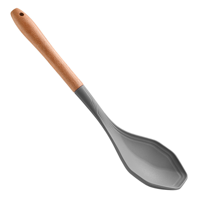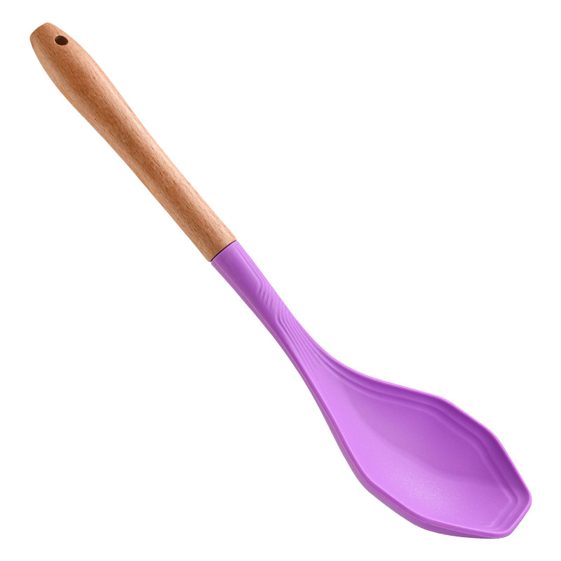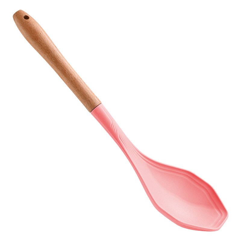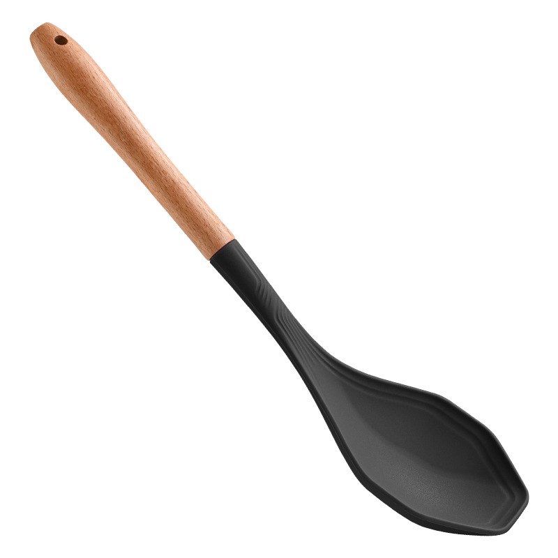 식품 학년 실리콘 비 스틱 팬 치밀한 누설 더 높은 온도 저항하는 가정용 나무 손잡이 치밀한 숟가락 소쿠리 주방 요리 도구