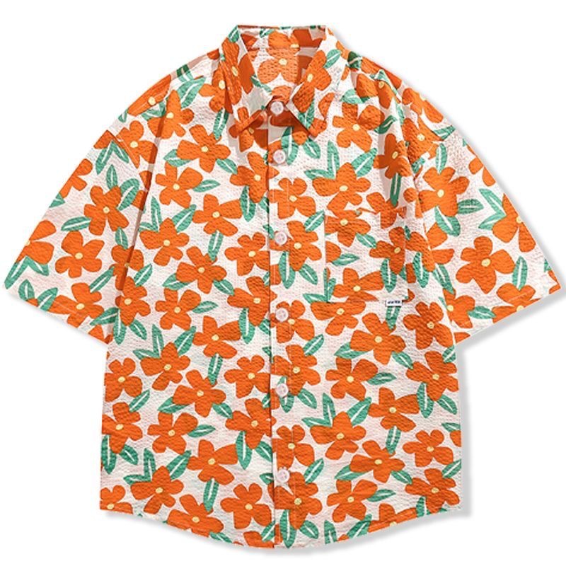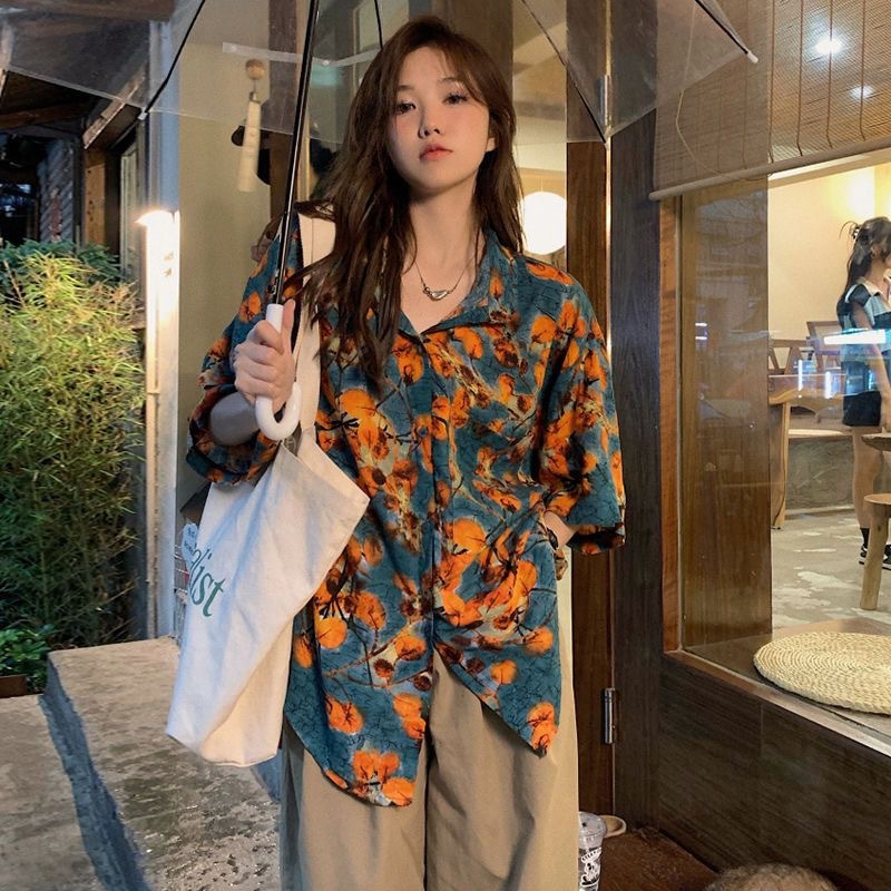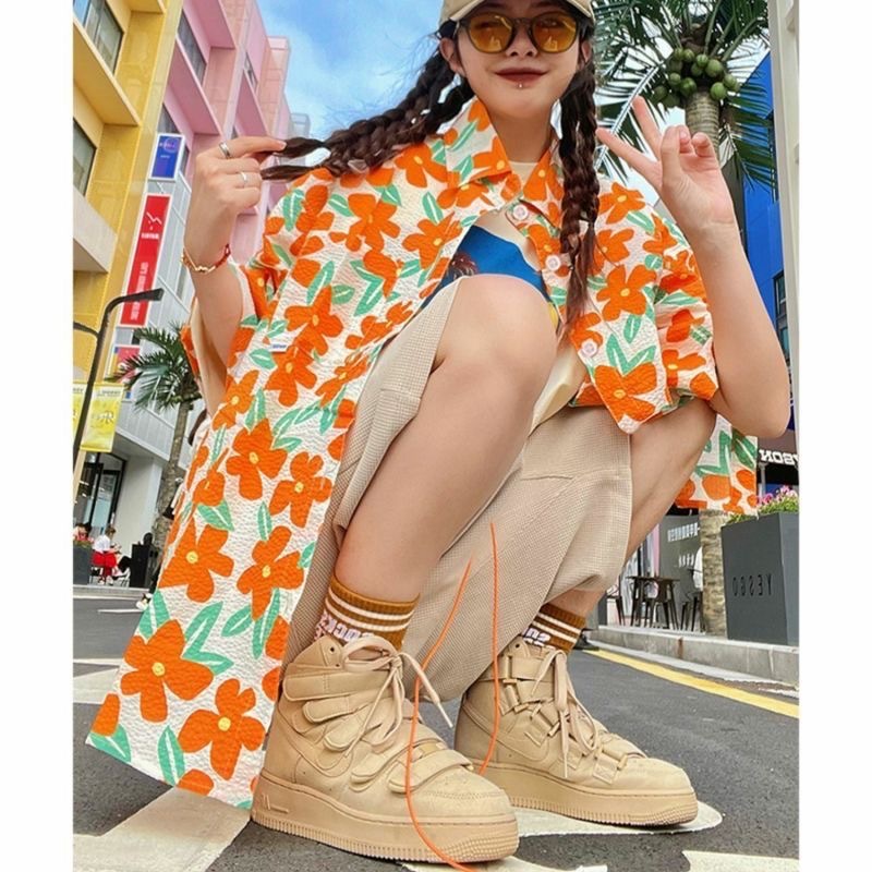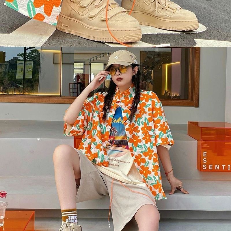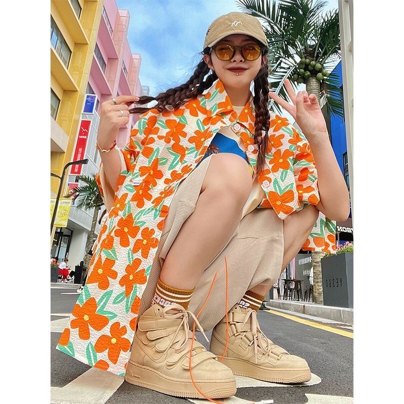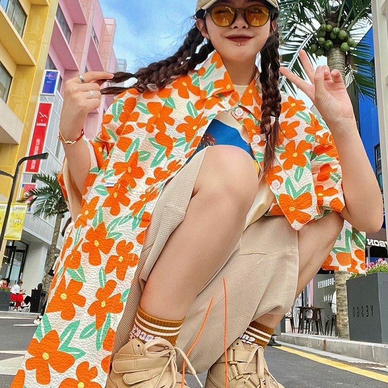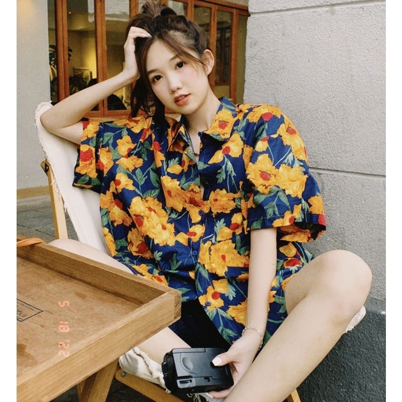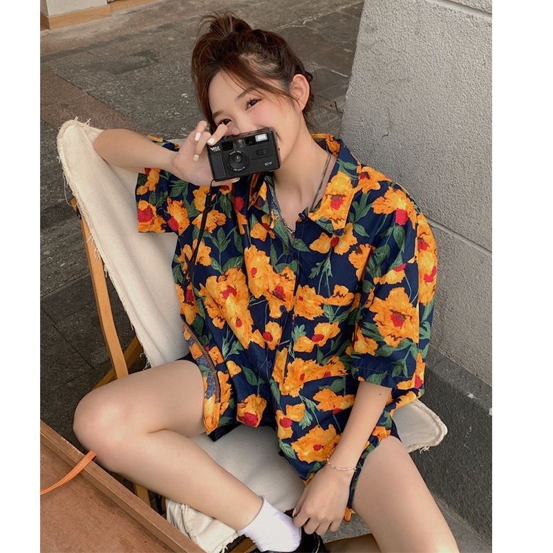 하와이안 포트 스타일 빈티지 꽃 셔츠 탑 여름 세련된 작은 셔츠 프랑스 느슨한 반팔 셔츠스토어 가기