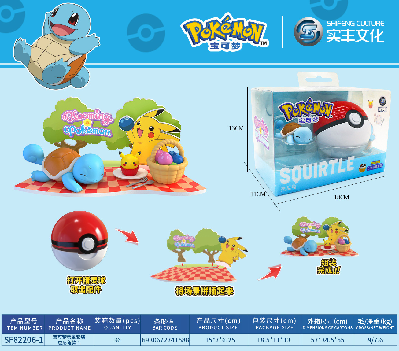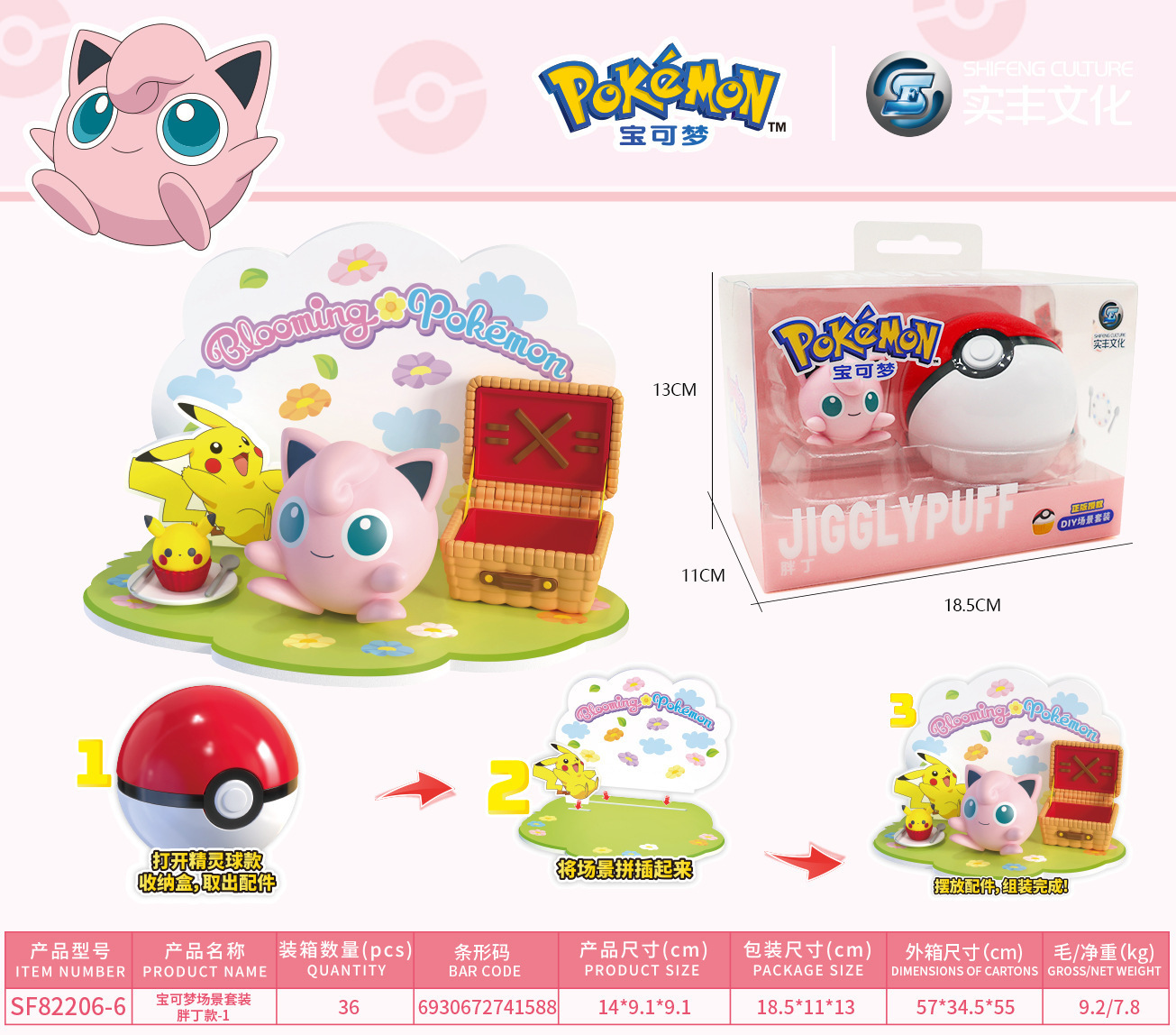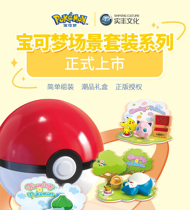 Shifeng 정품 Baokemeng 포켓몬 장면 세트 피카추 엘프 볼 핸드 헬드 타이드 플레이 장난감스토어 가기