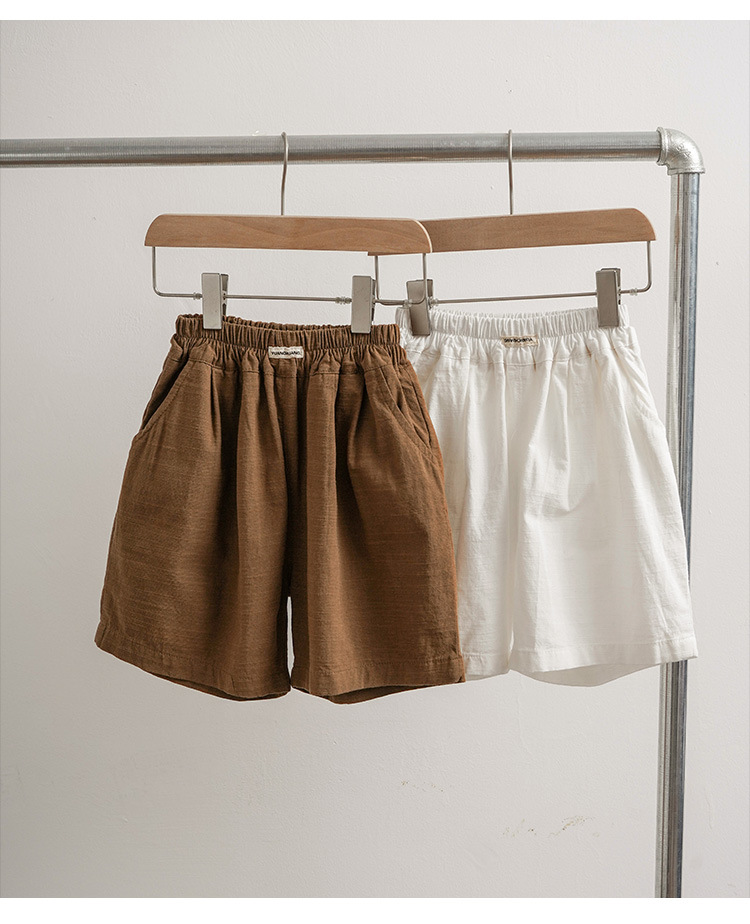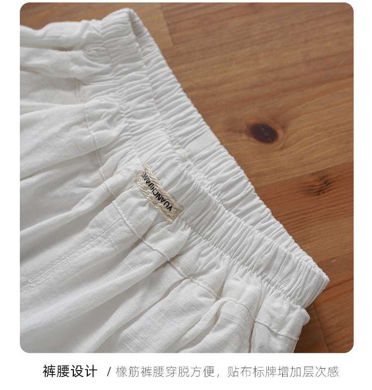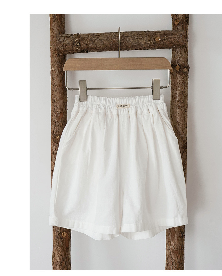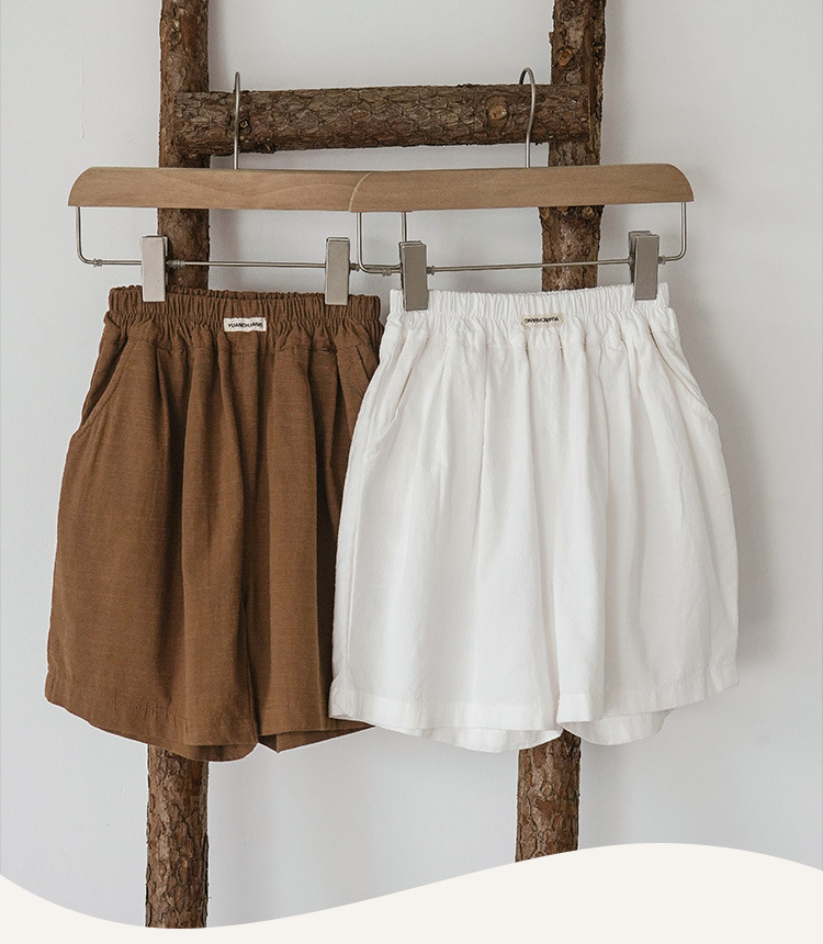 【재고정리】면마 캐주얼 루즈핏 반바지 유니섹스 신축성 허리밴드 남녀공용 면마 코튼 스타일리쉬 와이드 팬츠