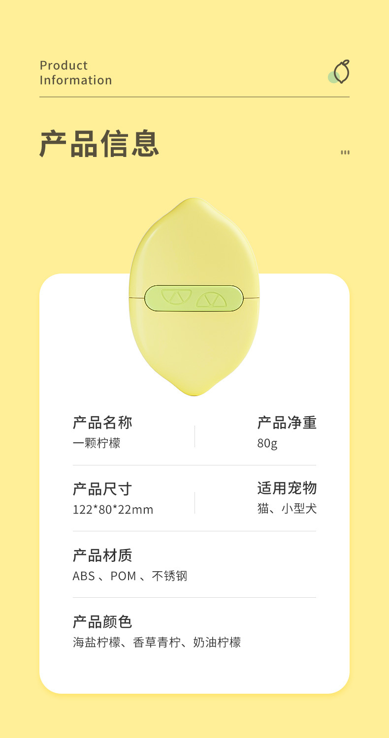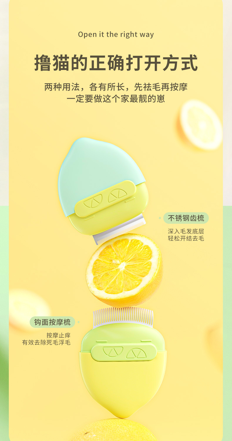 떠 다니는 머리카락을 제거하는 유체 동물 애완 동물 빗 빗 브러쉬 마사지 레몬 두 머리 빗 애완 동물 강아지 청소스토어 가기