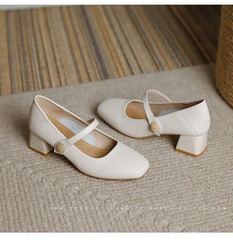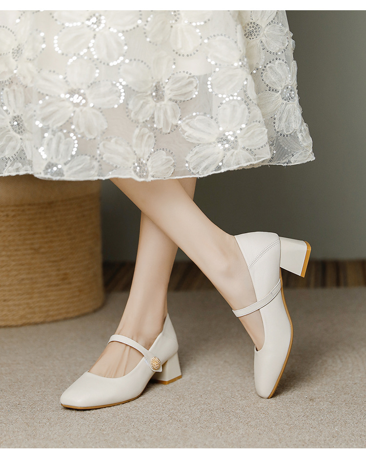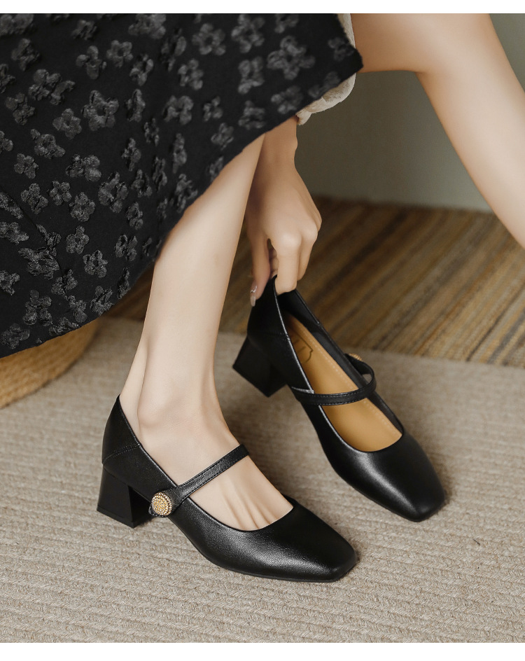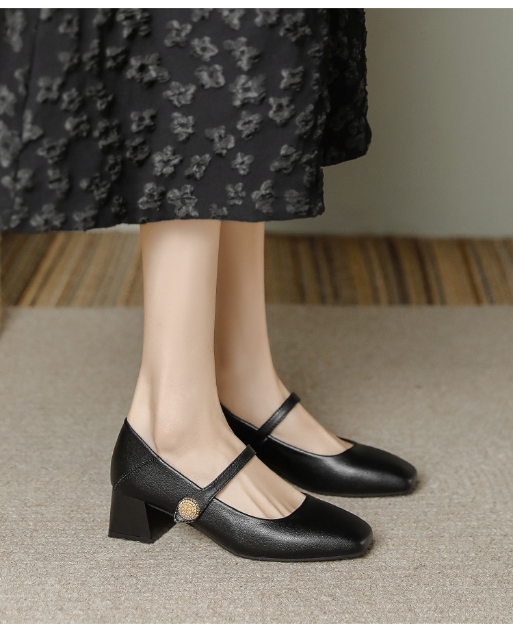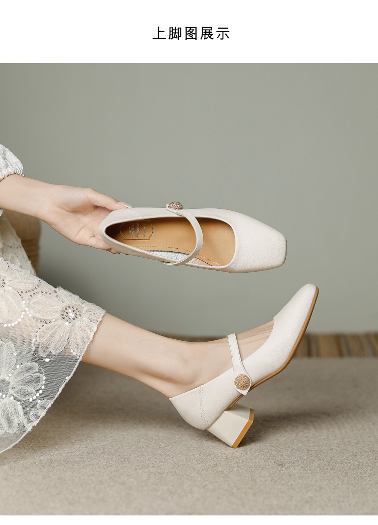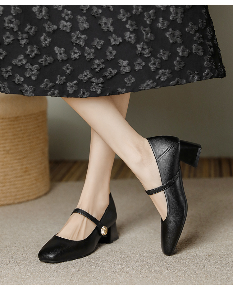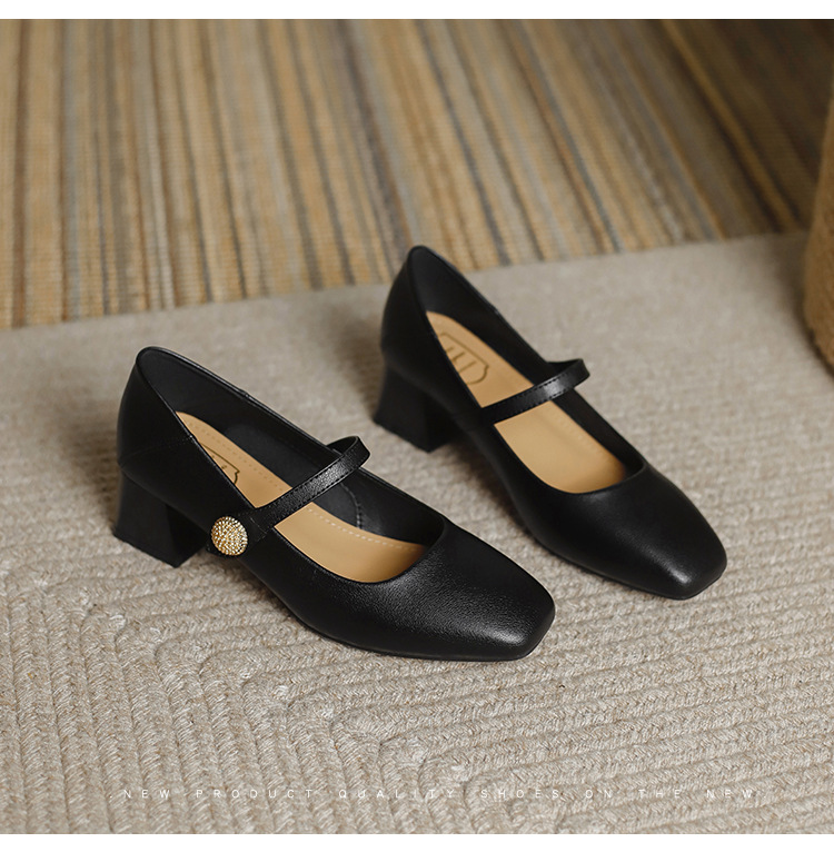 메리제인 여성화 2025년 신상 여름 두꺼운 굽 하이힐 스커트와 함께 신는 가죽 구두, 요정같은 부드러운 스타일의 싱글 슈즈스토어 가기