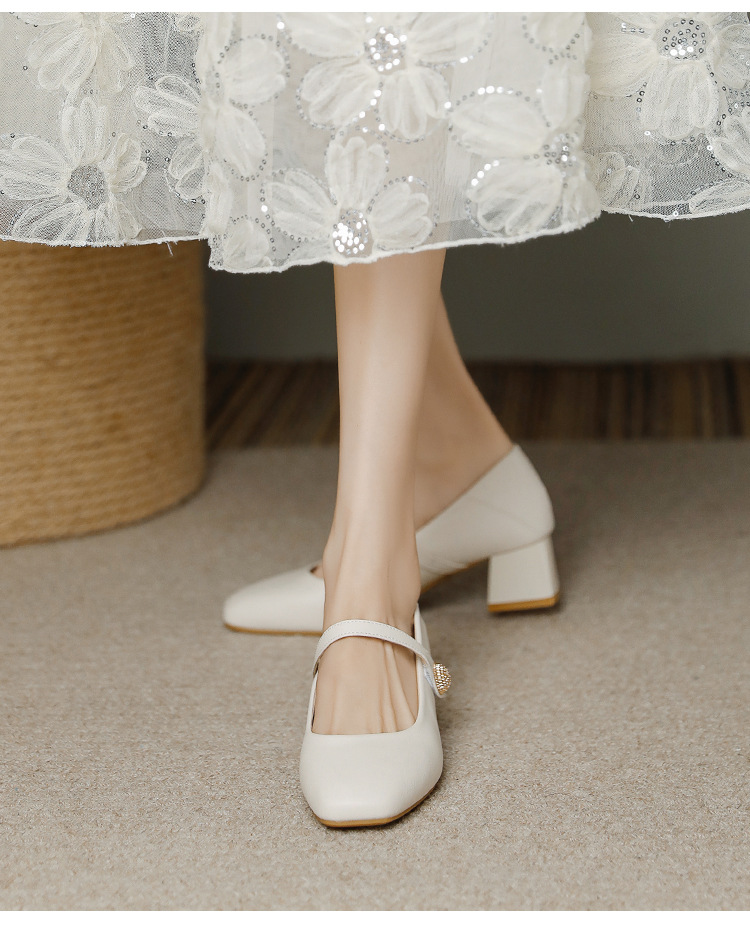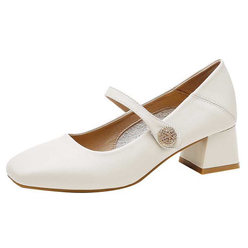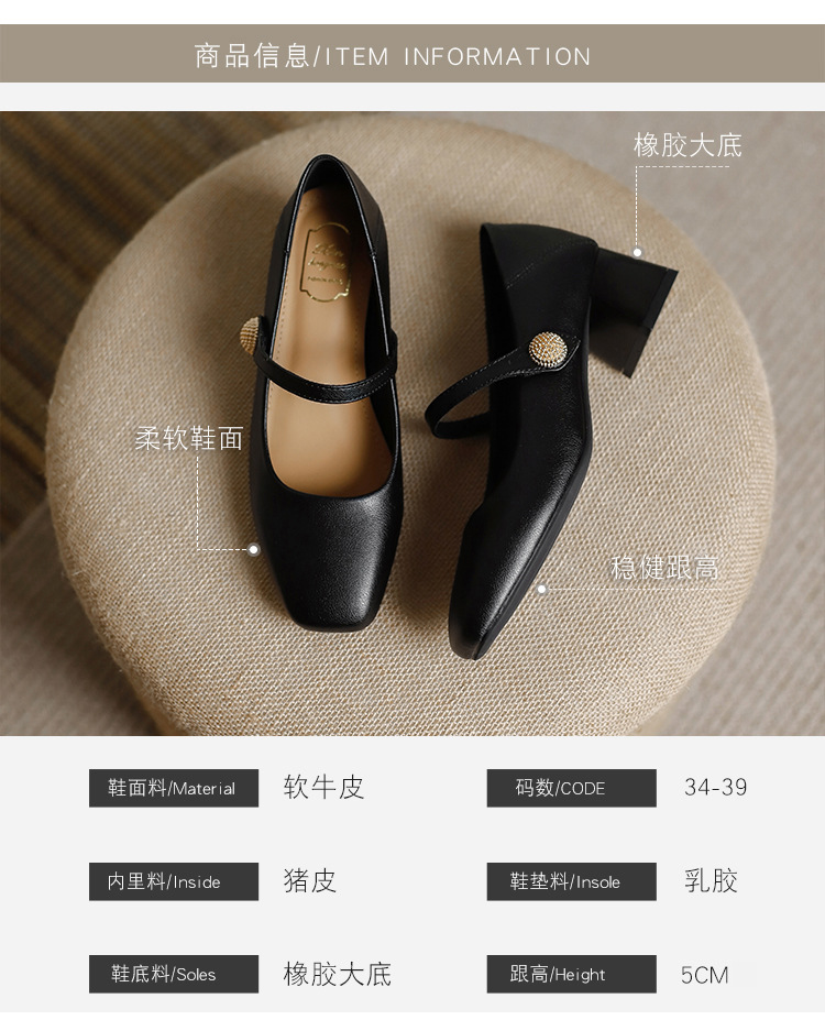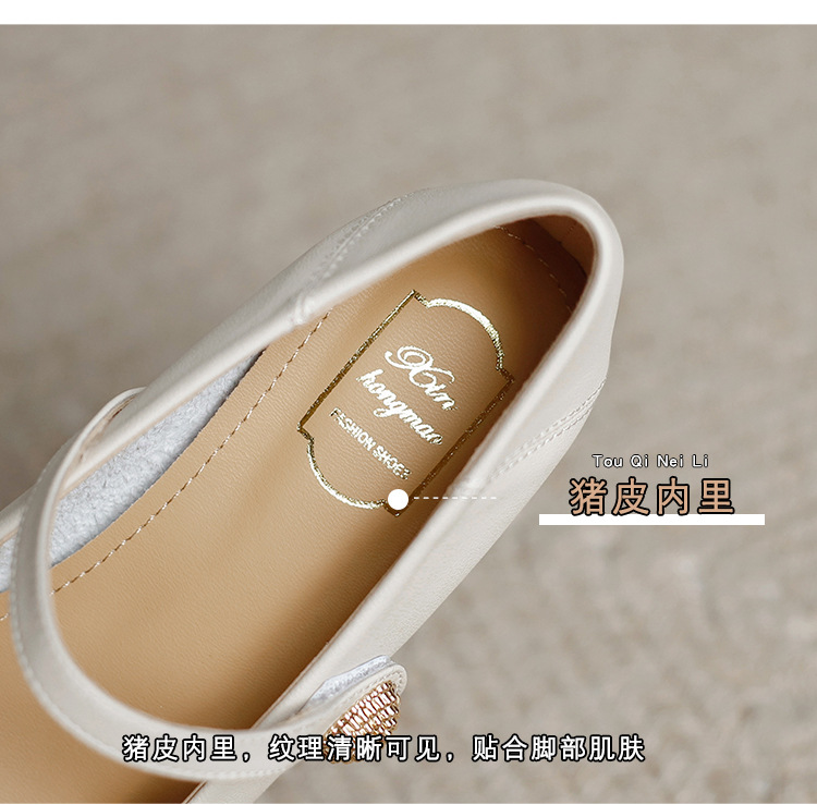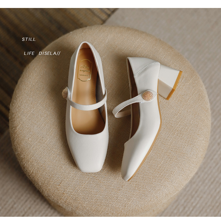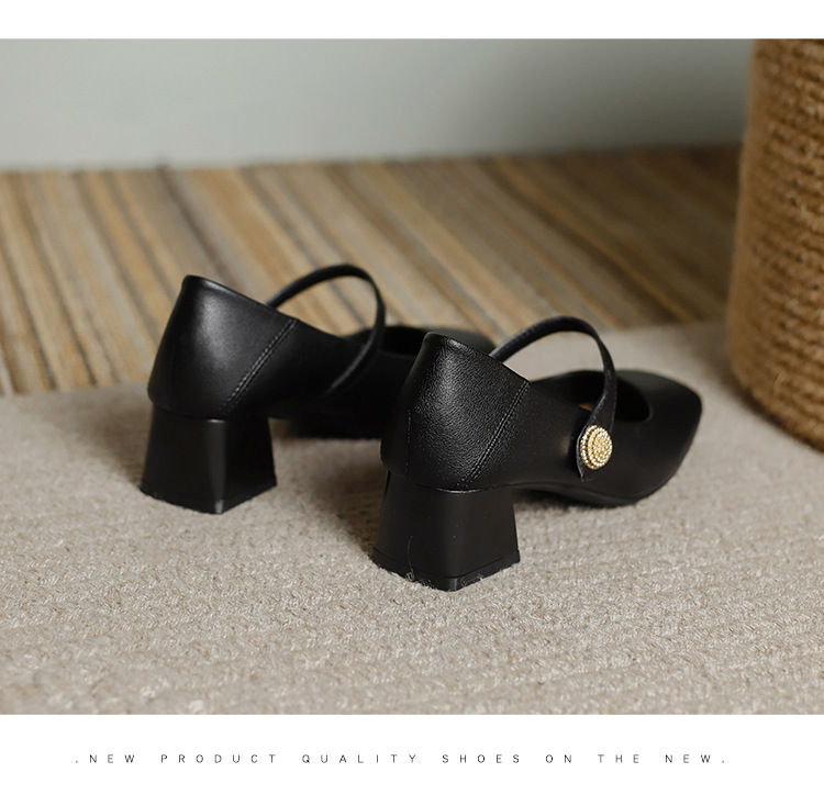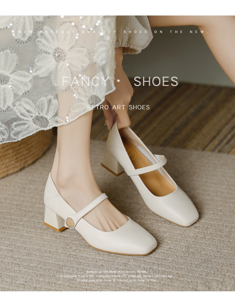 메리제인 여성화 2025년 신상 여름 두꺼운 굽 하이힐 스커트와 함께 신는 가죽 구두, 요정같은 부드러운 스타일의 싱글 슈즈스토어 가기