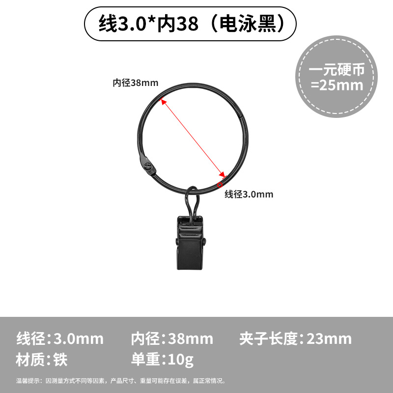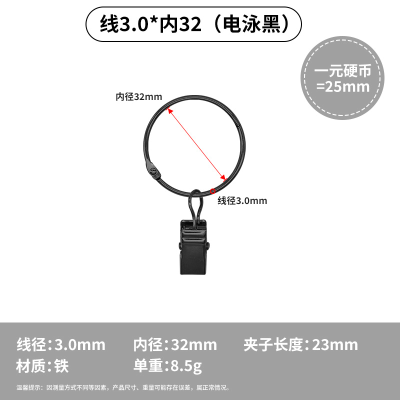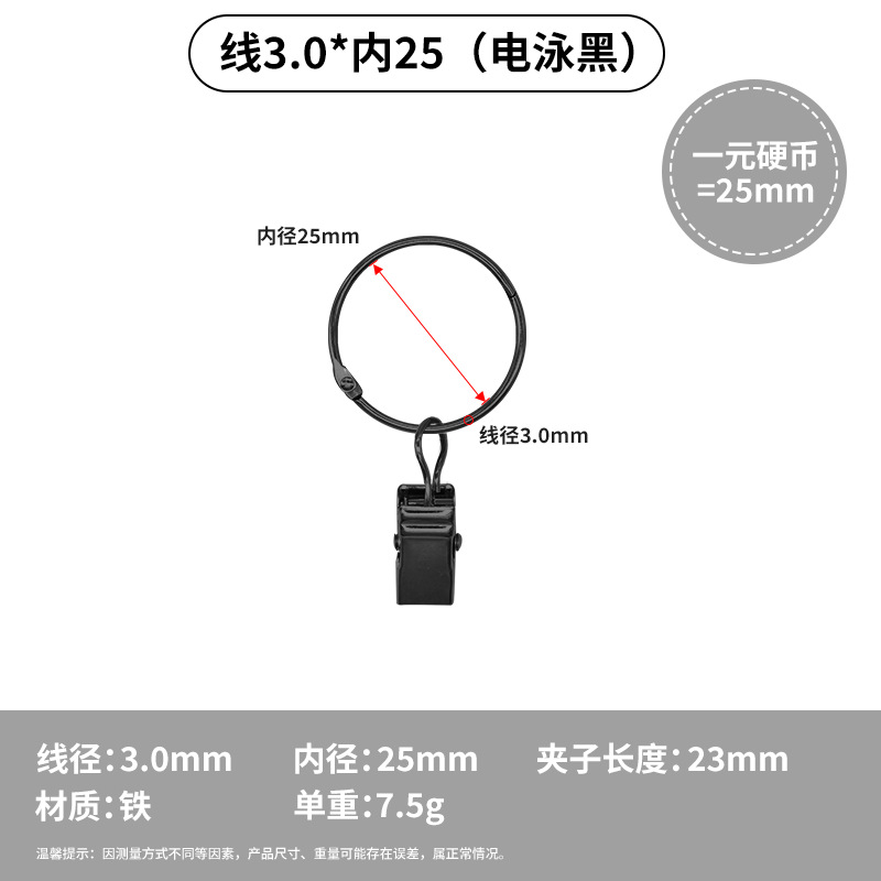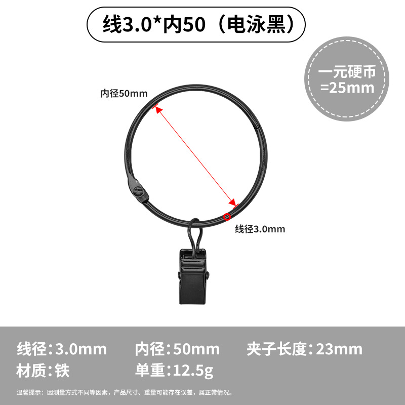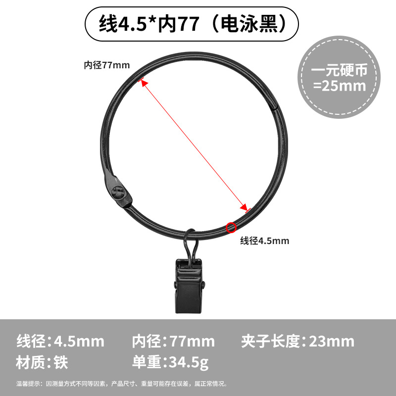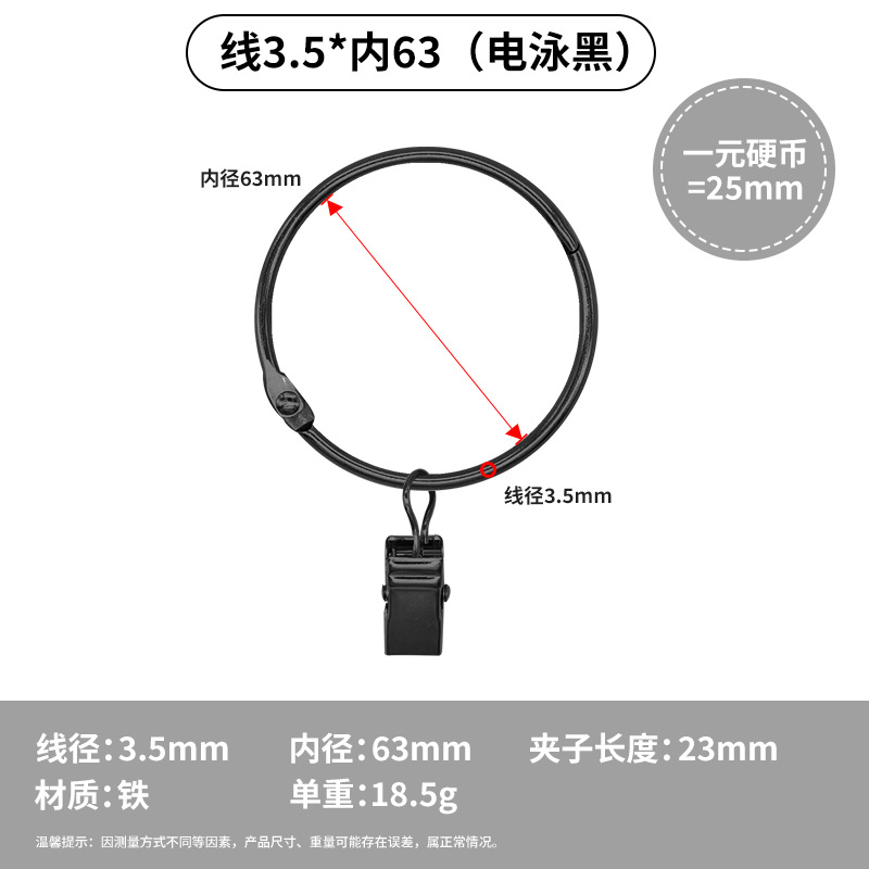定固五金简约黑色轨道窗帘夹浴室罗马圈环定制窗帘挂钩