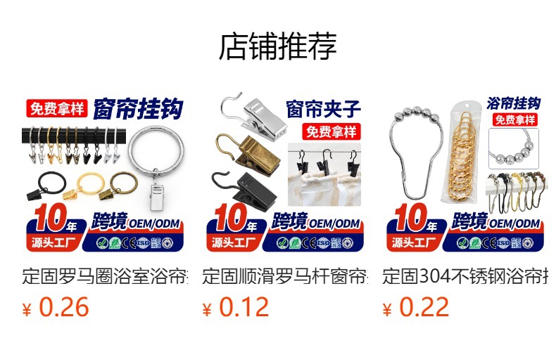 철제 욕실 커튼 걸이 탈부착 가능한 금속 커튼 클립 개방형 걸이형 커튼 걸이스토어 가기