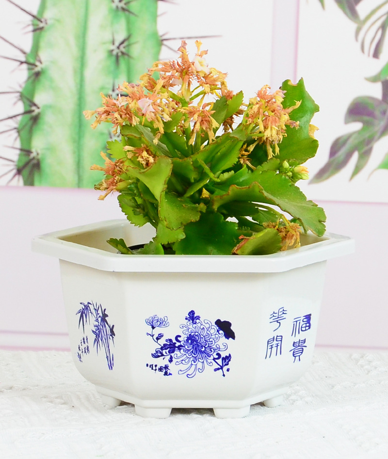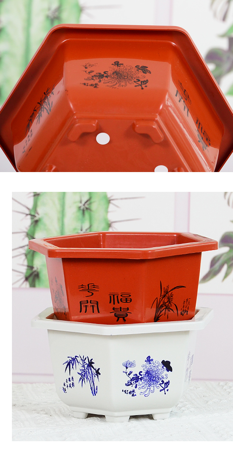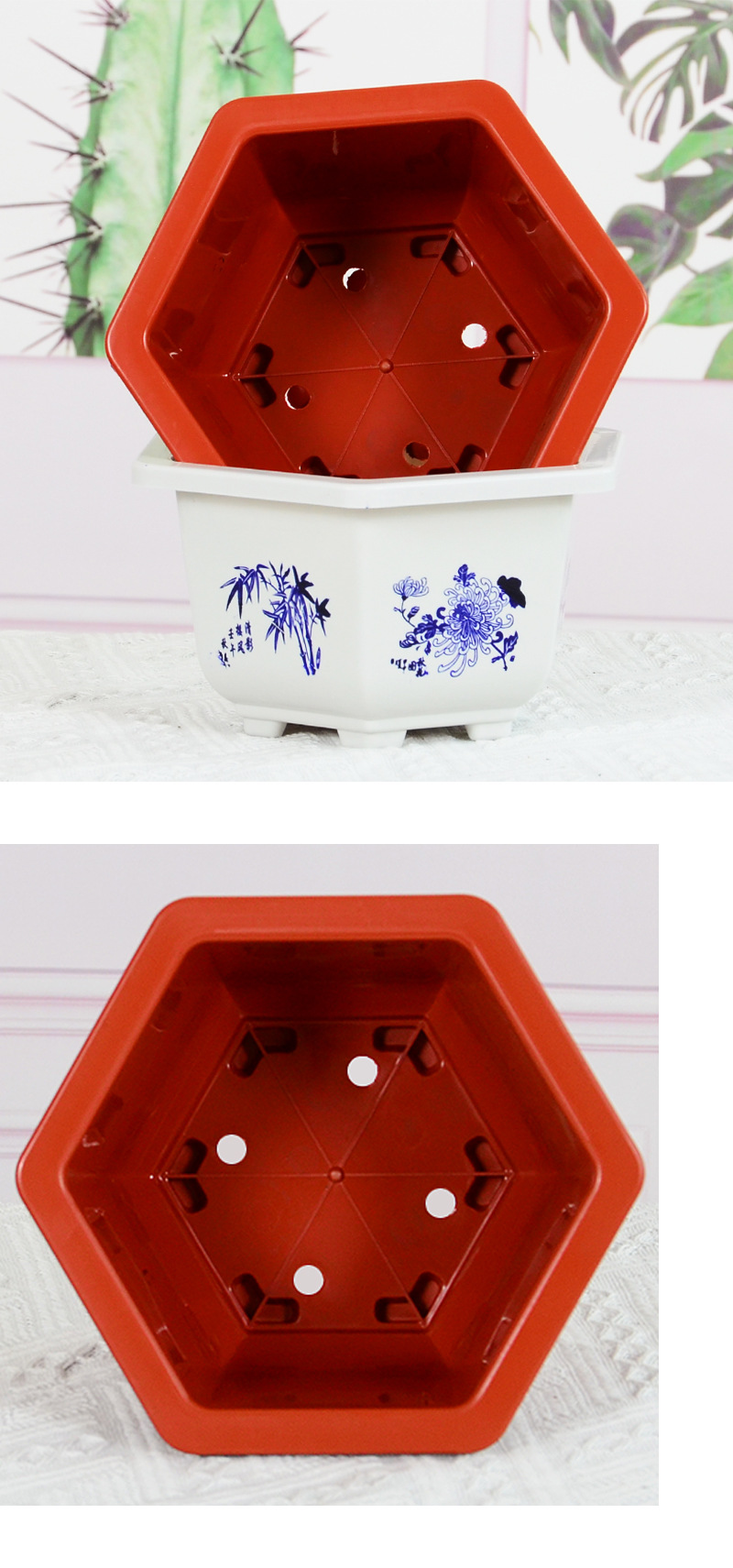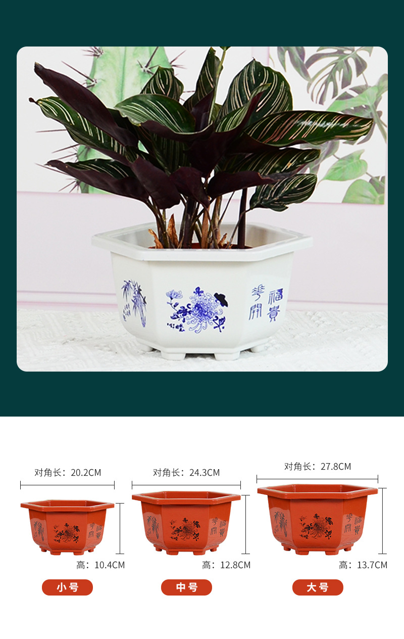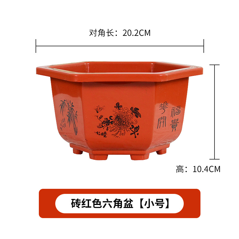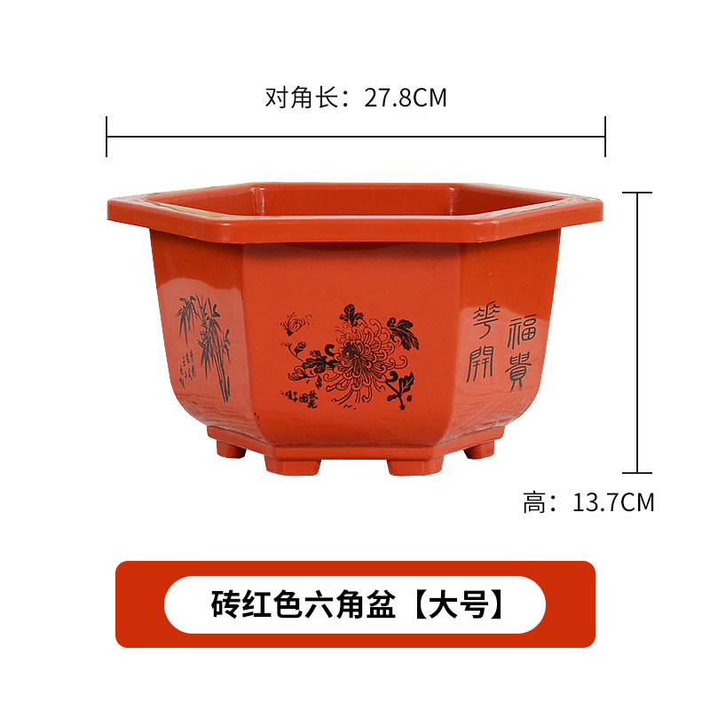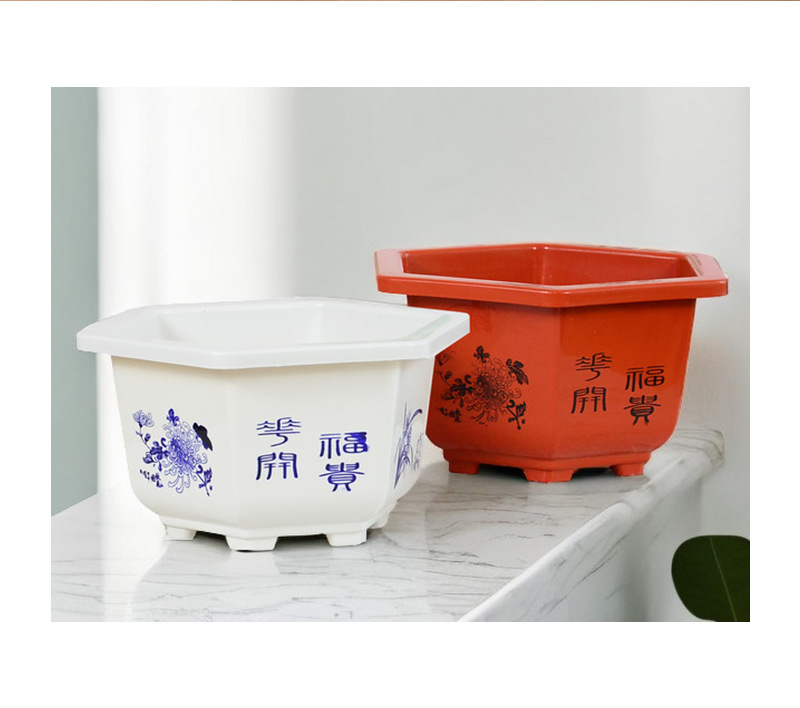 육각 냄비 플라스틱 화분 분재 냄비 바탕 화면 빨간색과 흰색 발코니 꽃베이스 특수 내구성 도매