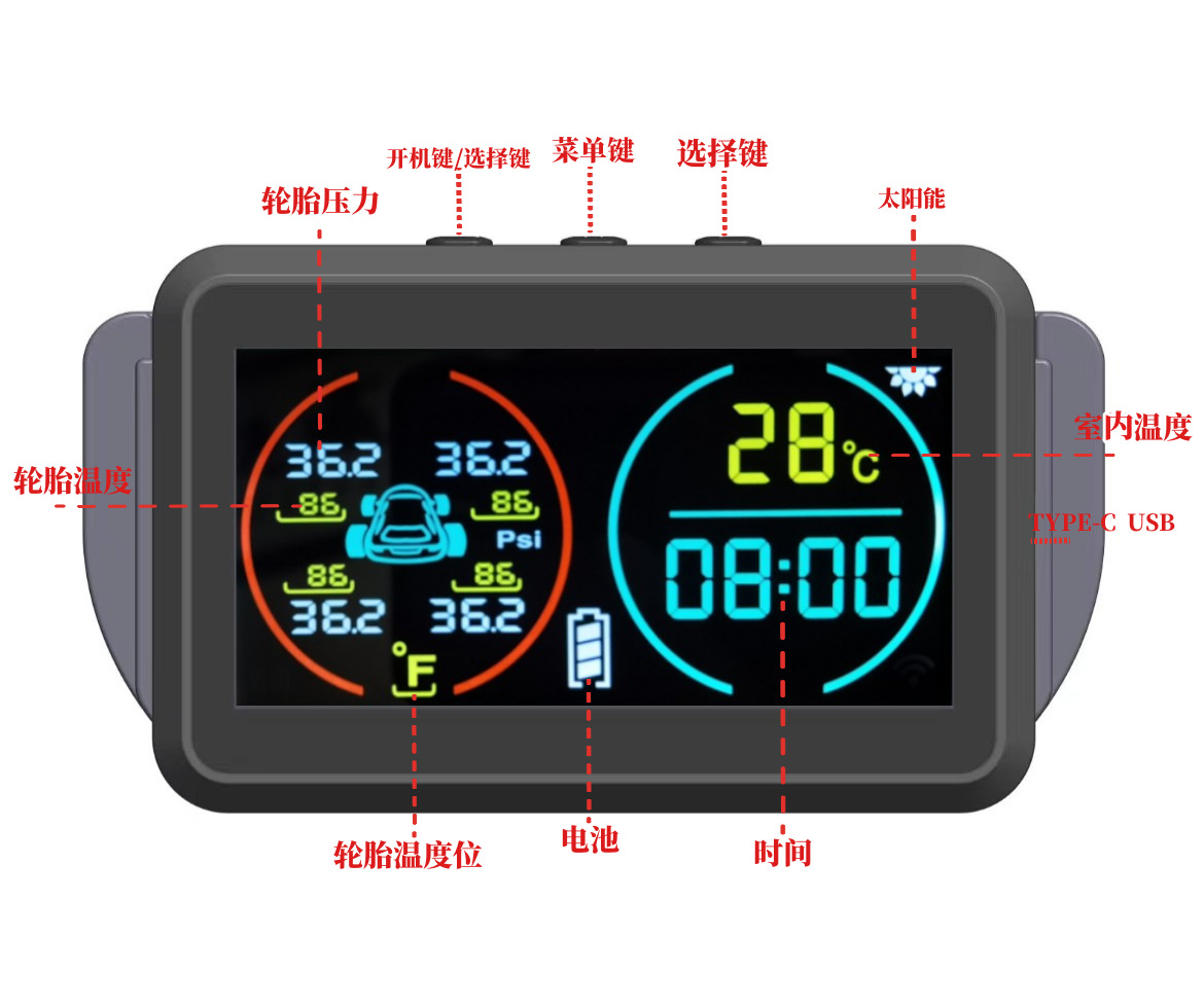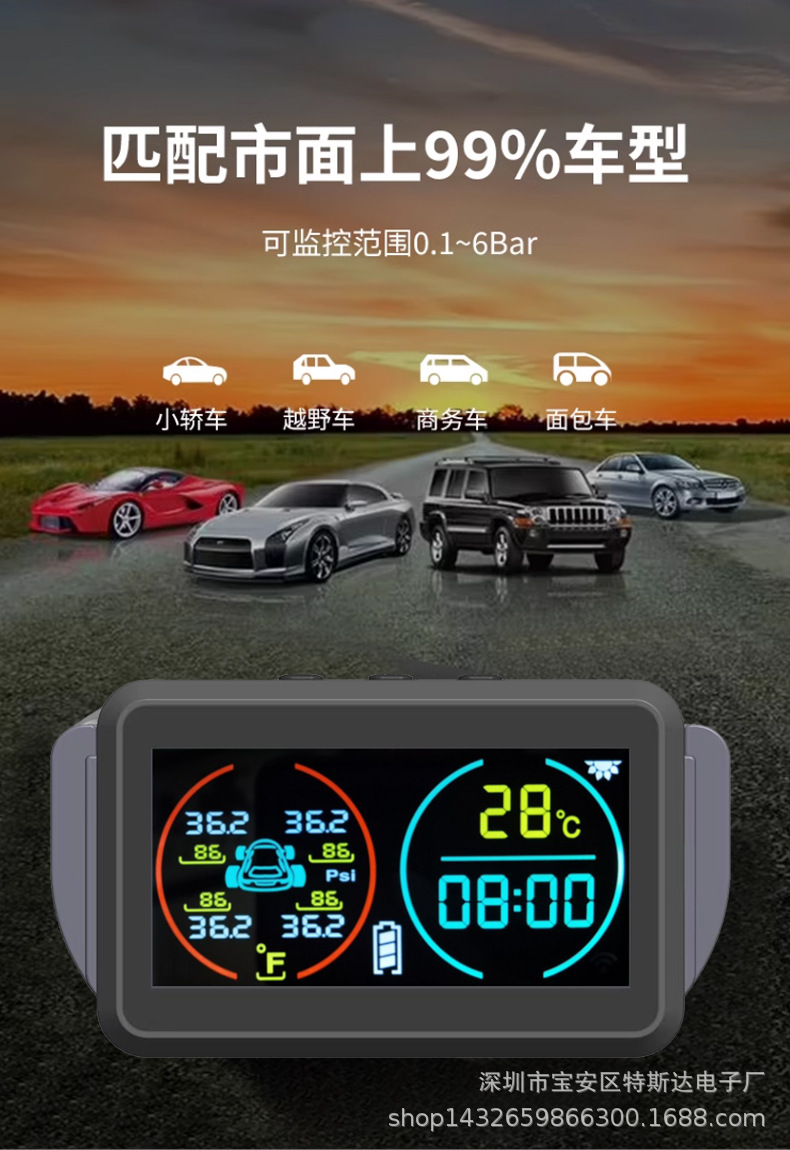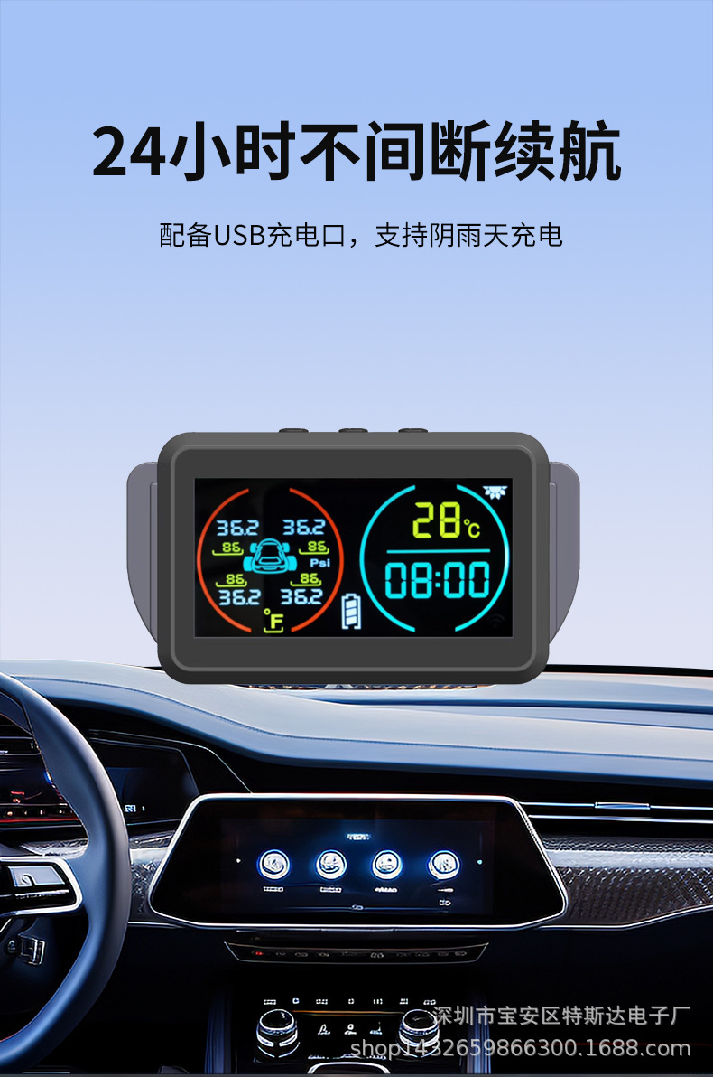 2024新款3位数时间温度显示胎压监测时间温度显示胎压