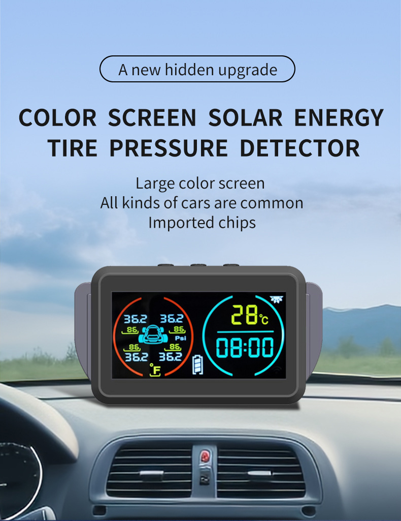 신형 TPMS 시간 및 온도 표시 타이어 압력 모니터 내장형 외장형 자동차 범용 무선 태양광