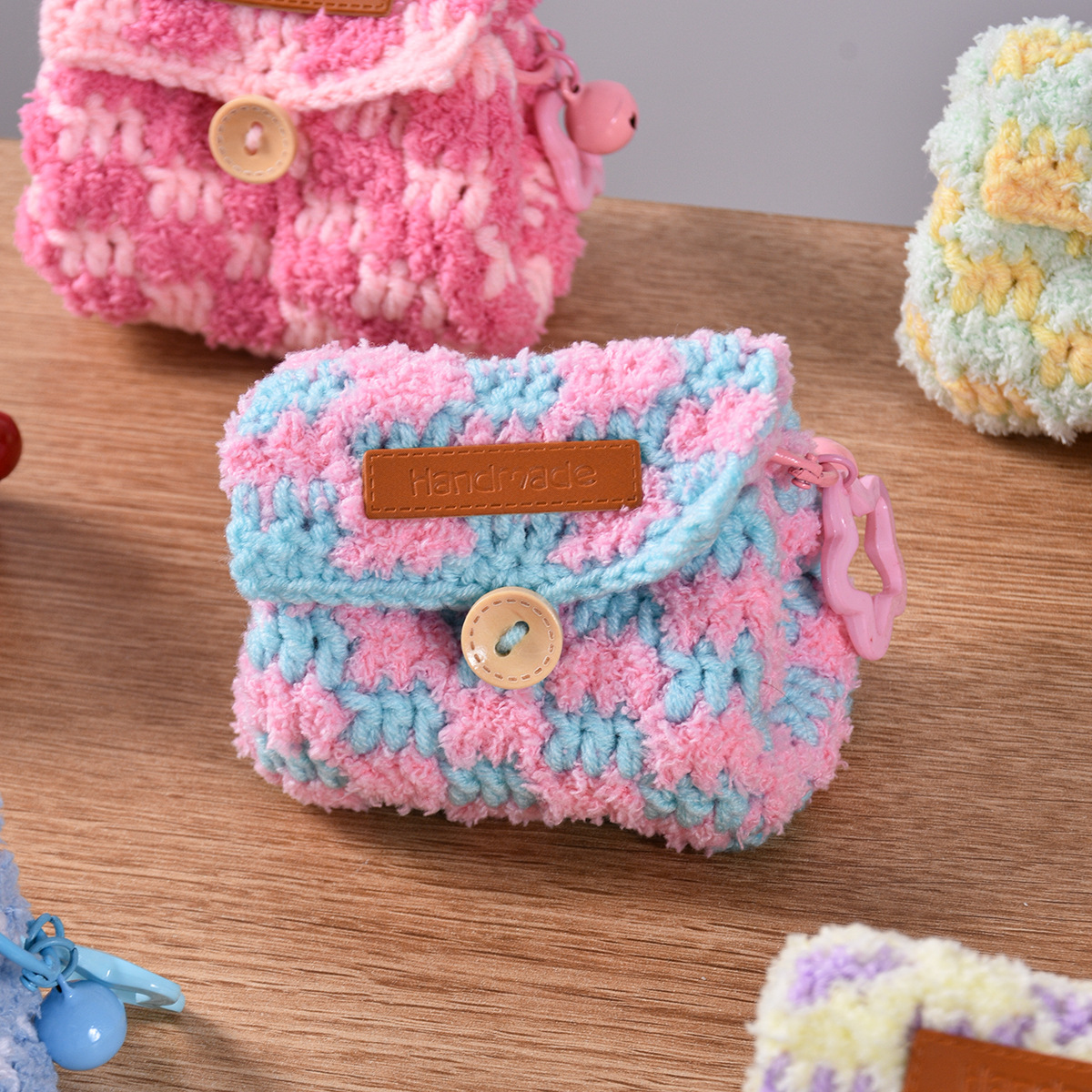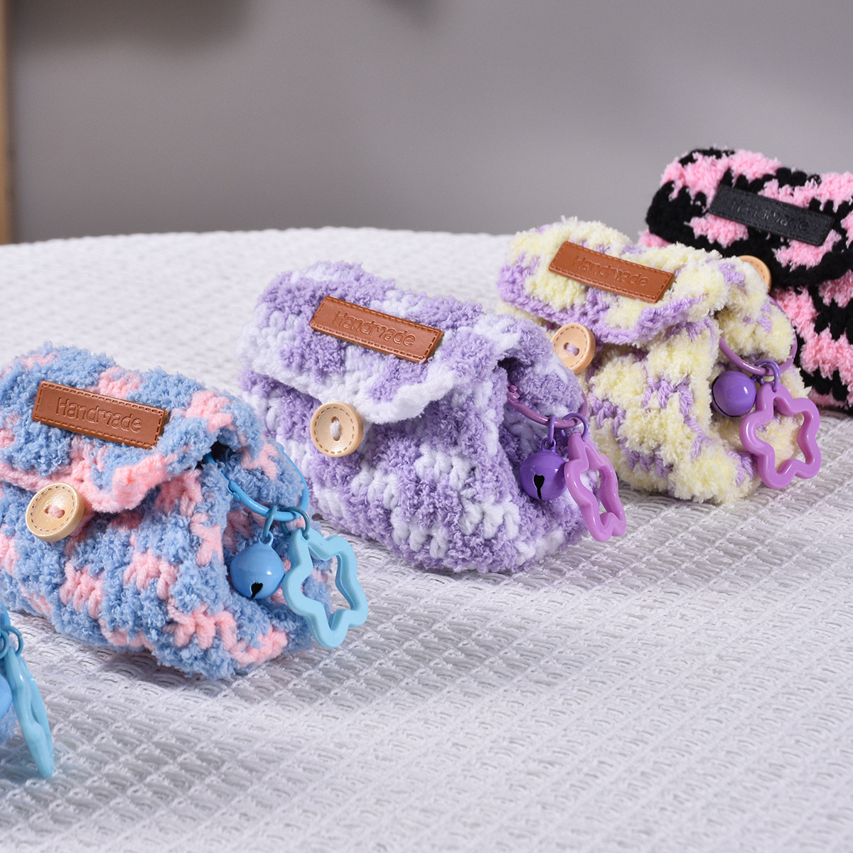 완성 된 양모 짠 바둑판 동전 지갑 블루투스 이어폰 가방 도파민 유니버설 보관 가방 여자 친구 선물스토어 가기