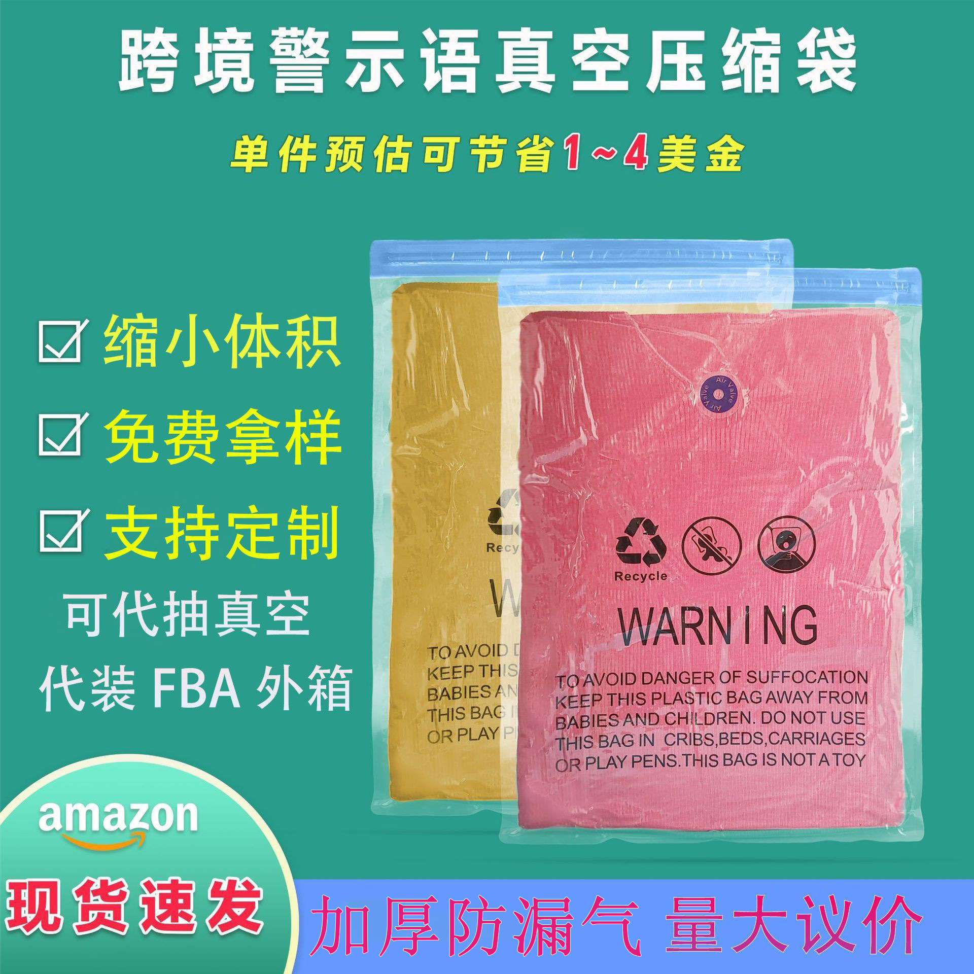 现货警示语拉链袋亚马逊服装真空包装塑料袋透明PE服饰外套压缩袋