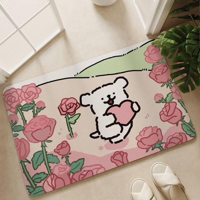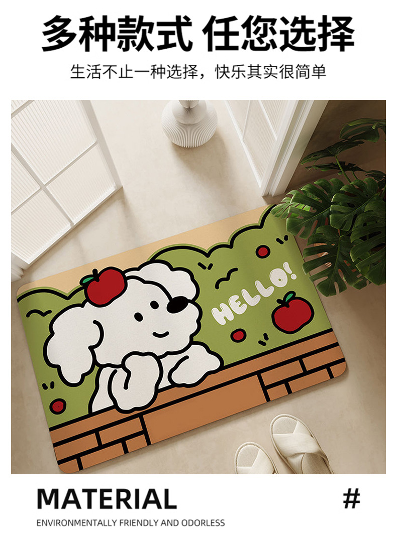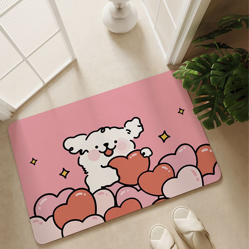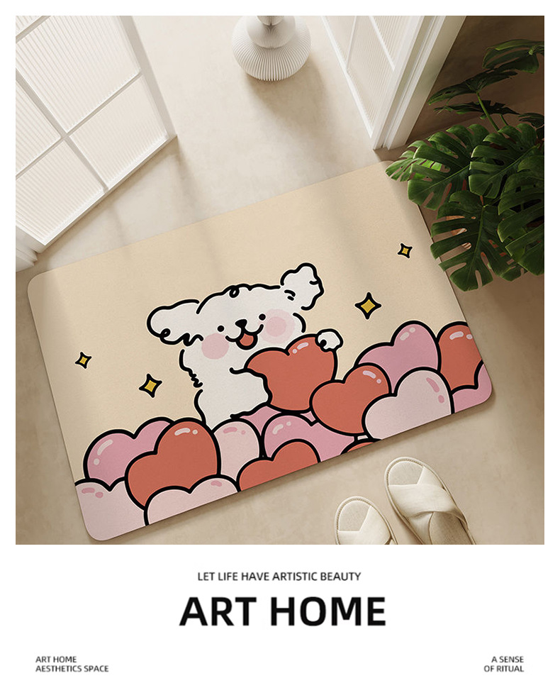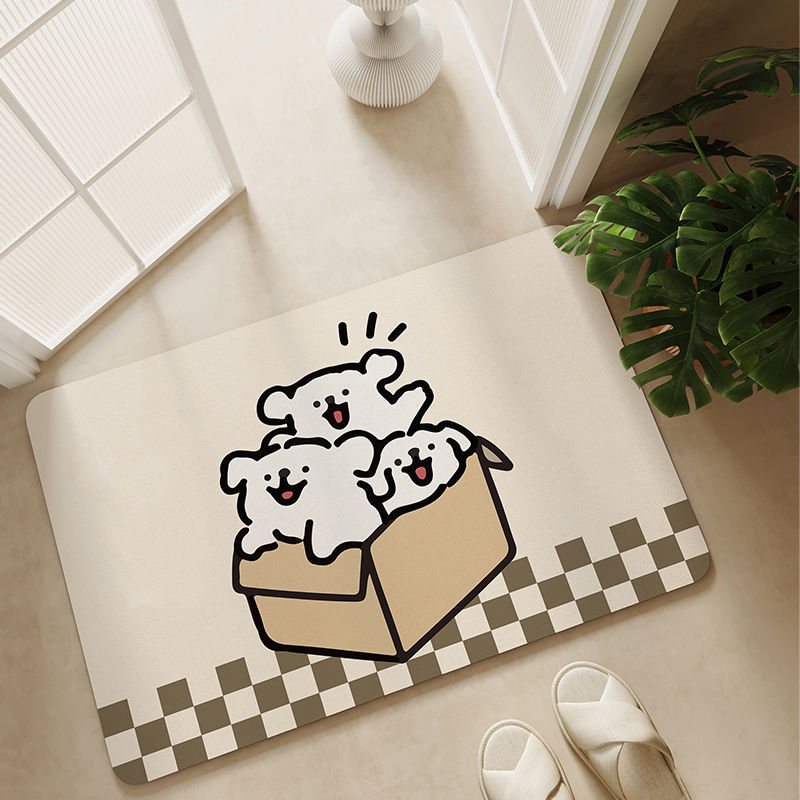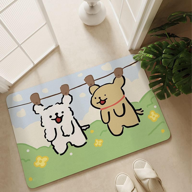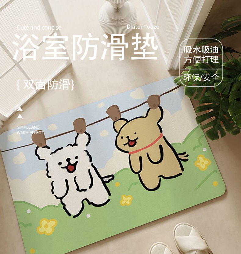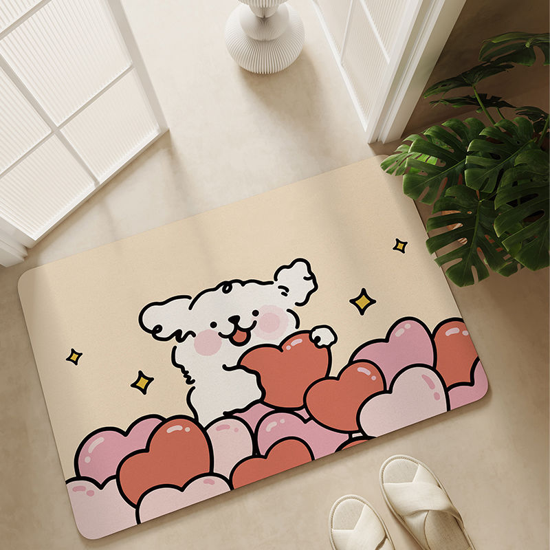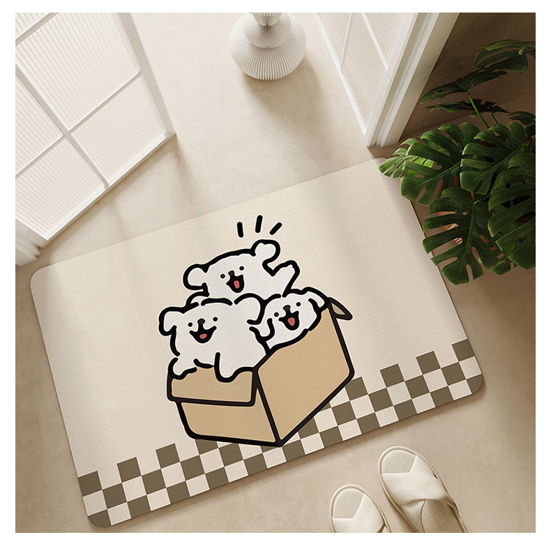 만화 강아지 모양 규조토 욕실 매트, 변기용 오염 방지 발 매트, 가정용 흡수성 속건성 화장실 미끄럼 방지 매트스토어 가기