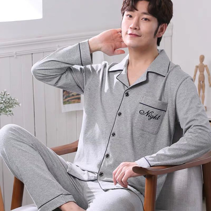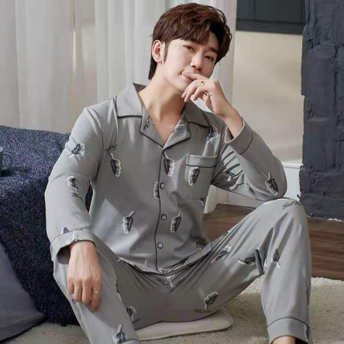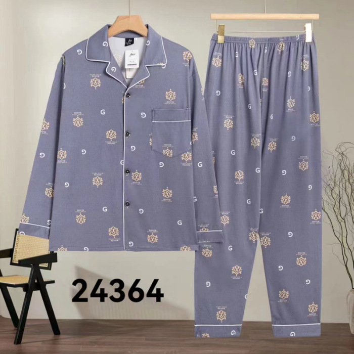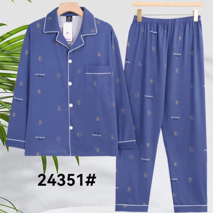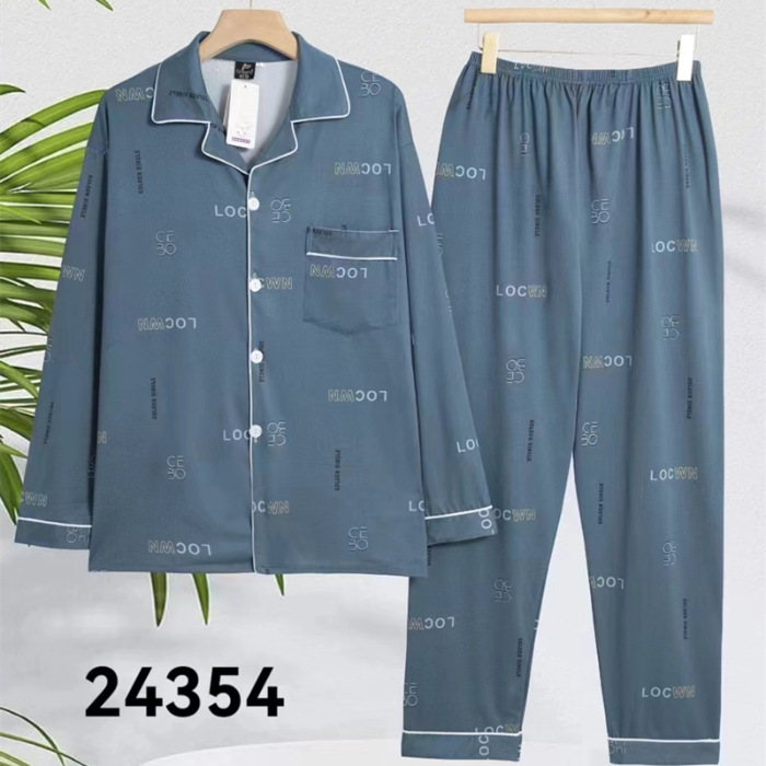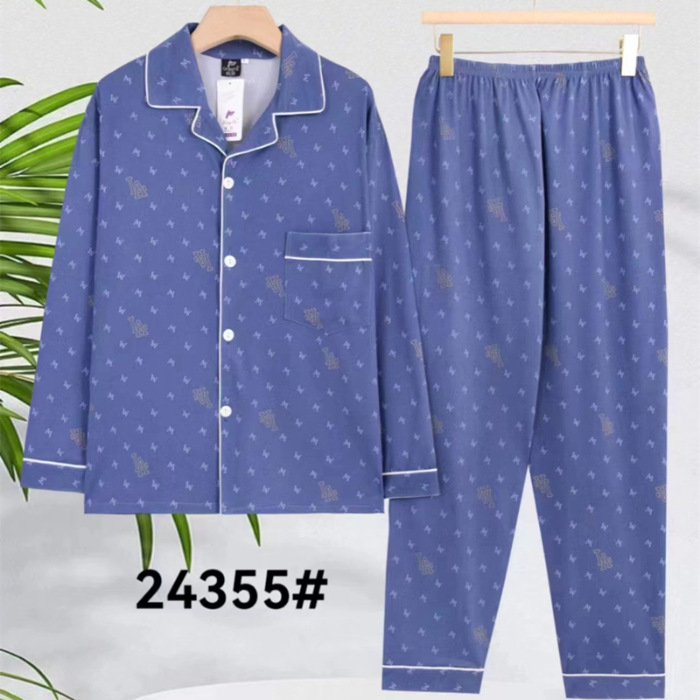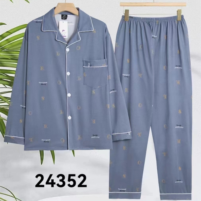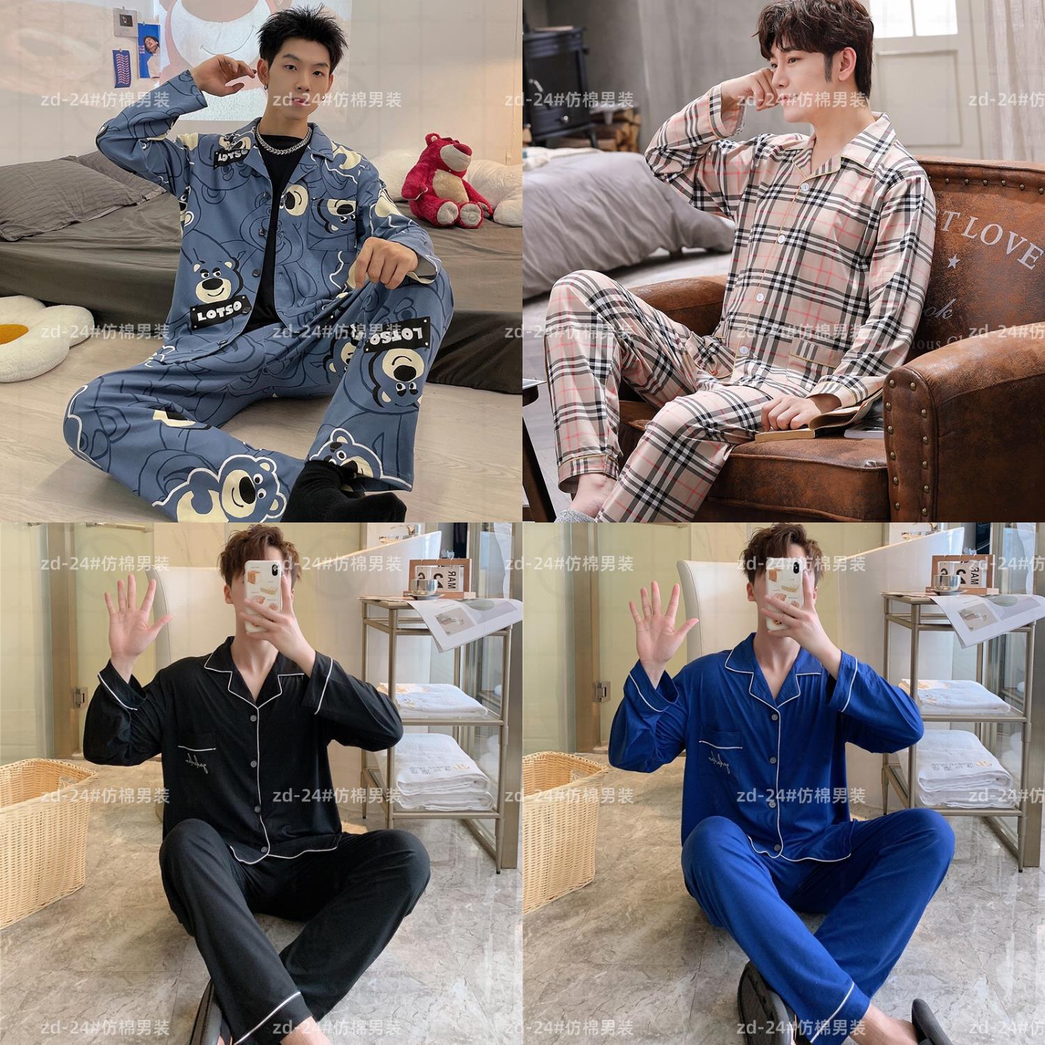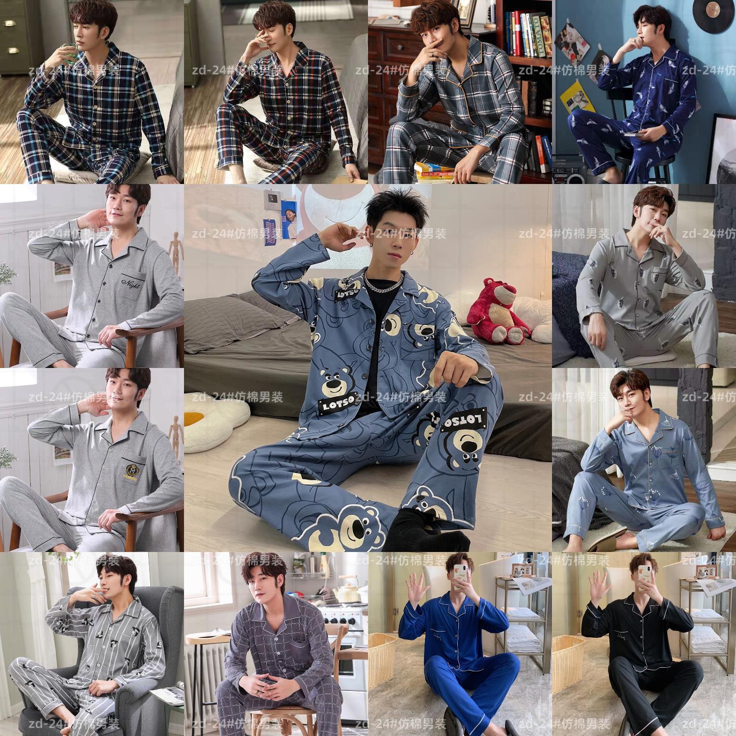 2024 년 새로운 격자 무늬 잠옷 남자의 봄과 가을 긴 소매 면화 플러스 사이즈 가을과 겨울 남자 겉옷 홈 옷스토어 가기