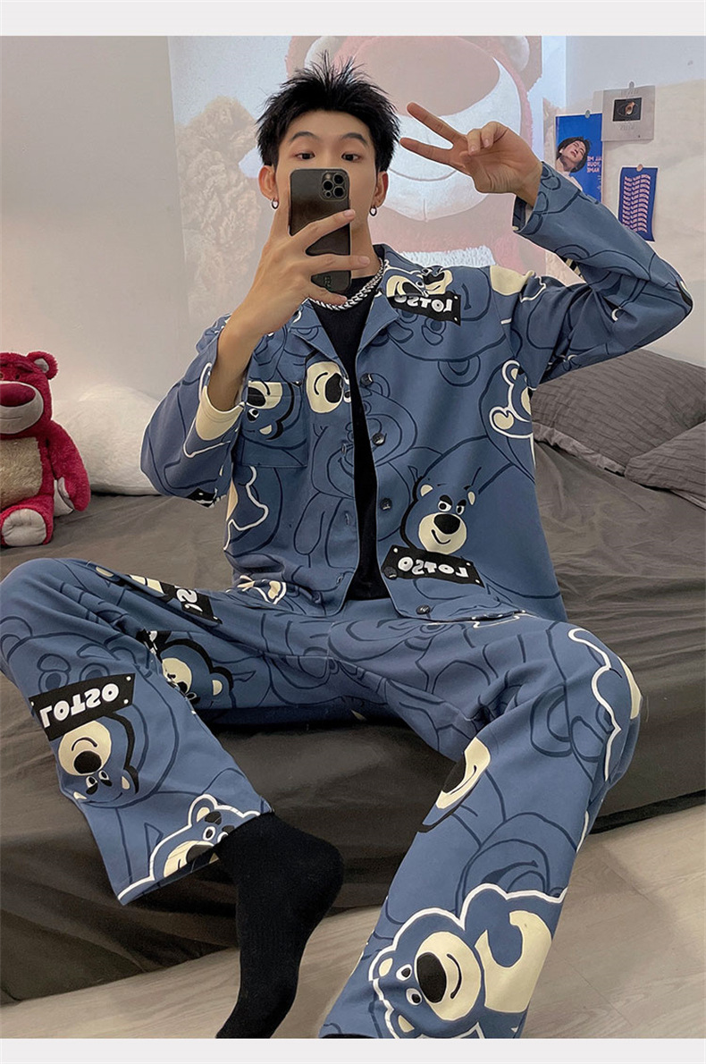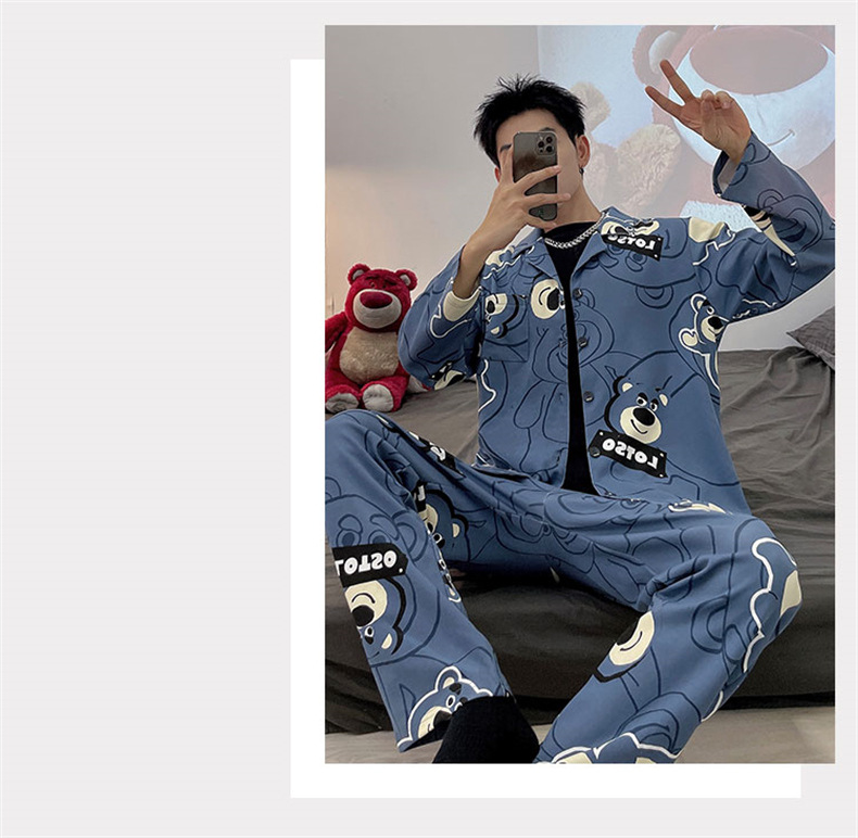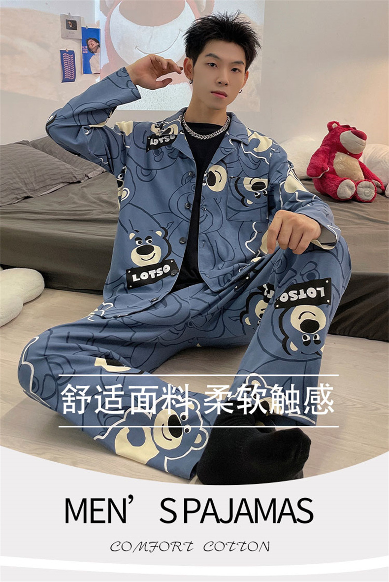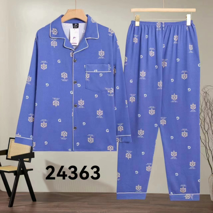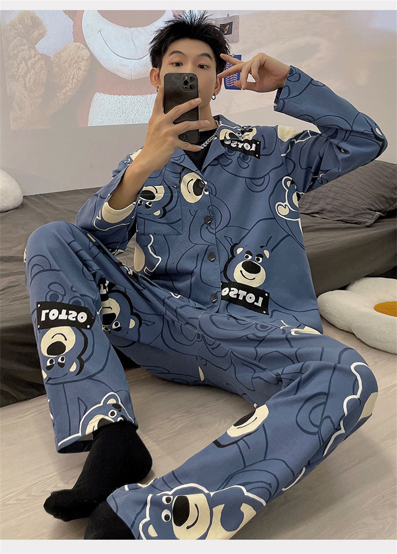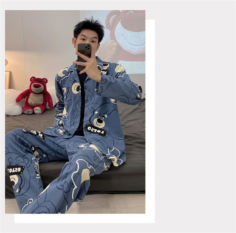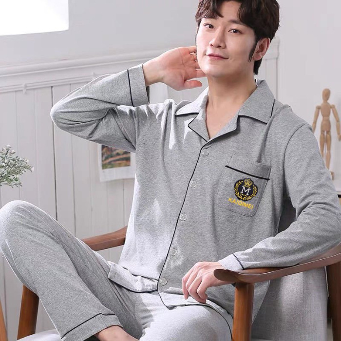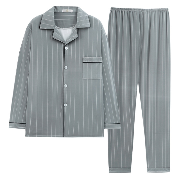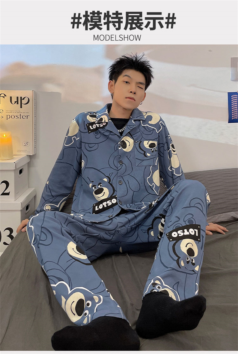 2024 년 새로운 격자 무늬 잠옷 남자의 봄과 가을 긴 소매 면화 플러스 사이즈 가을과 겨울 남자 겉옷 홈 옷스토어 가기