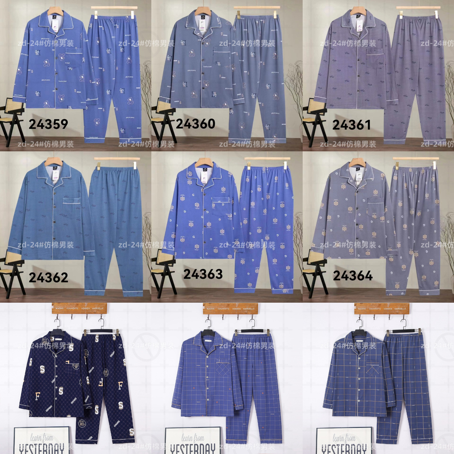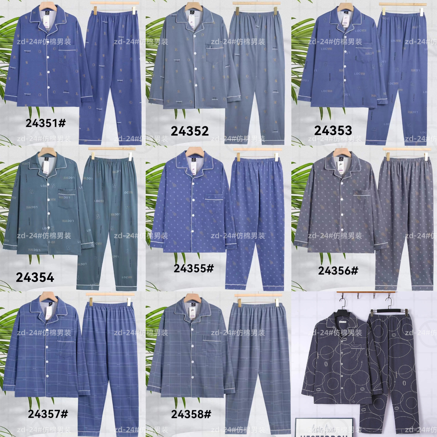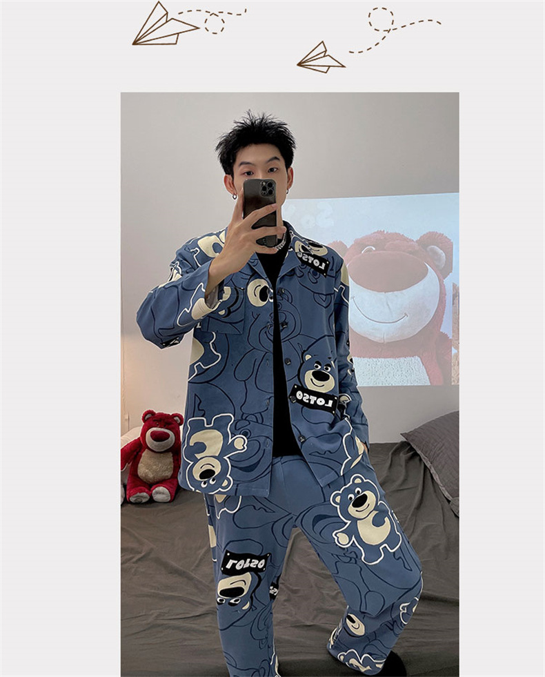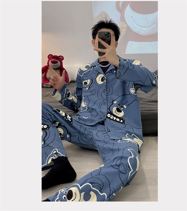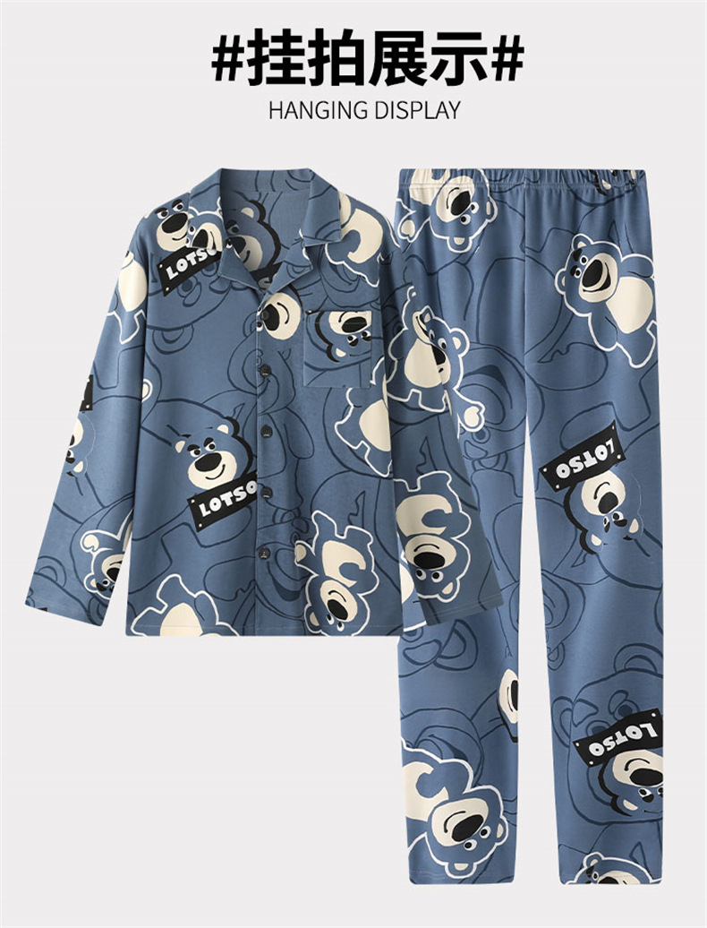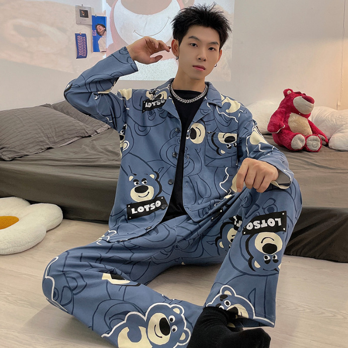 2024 년 새로운 격자 무늬 잠옷 남자의 봄과 가을 긴 소매 면화 플러스 사이즈 가을과 겨울 남자 겉옷 홈 옷스토어 가기
