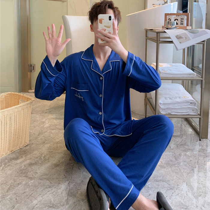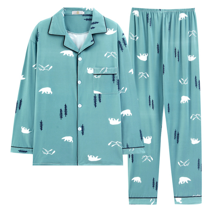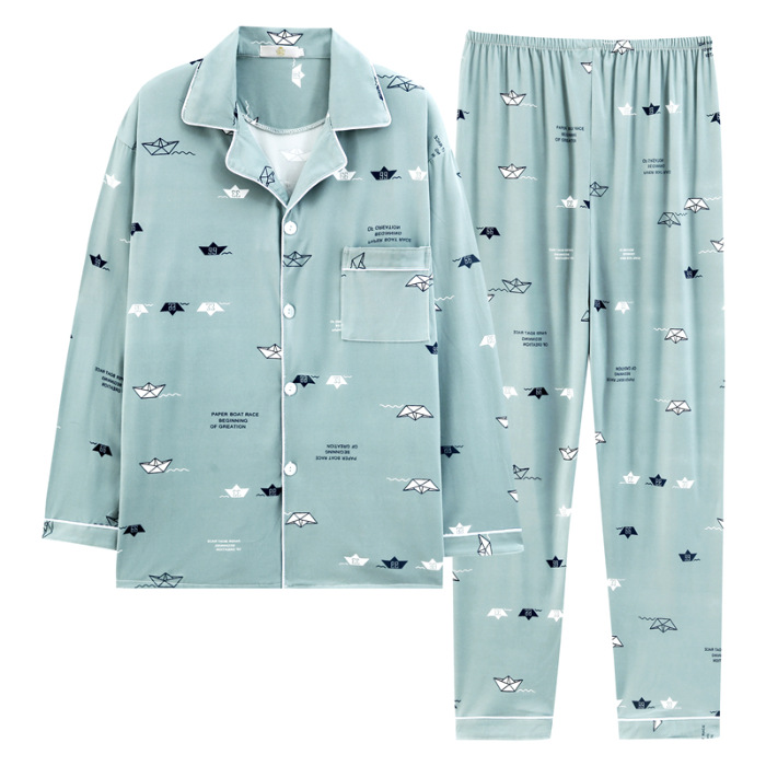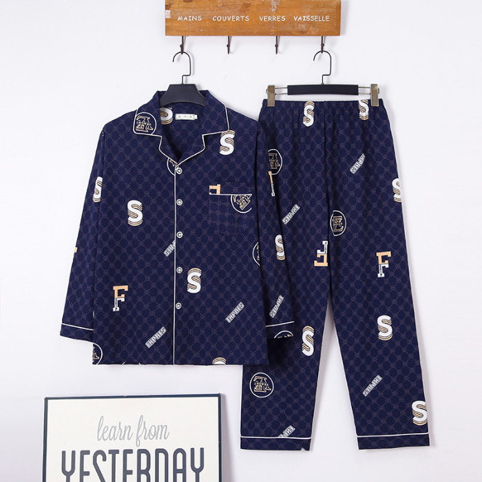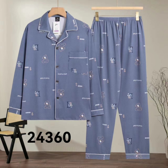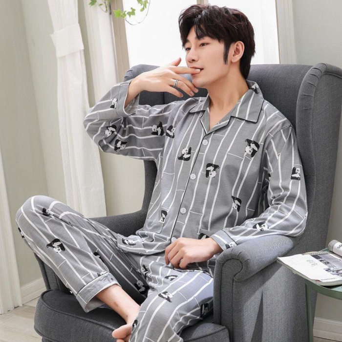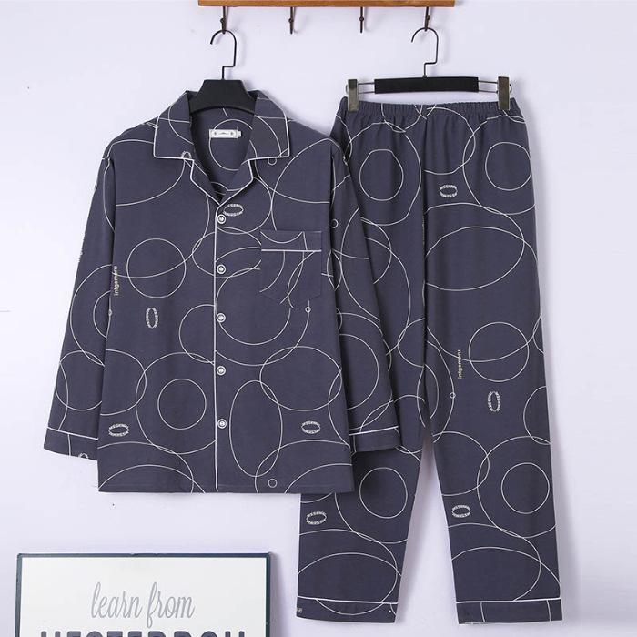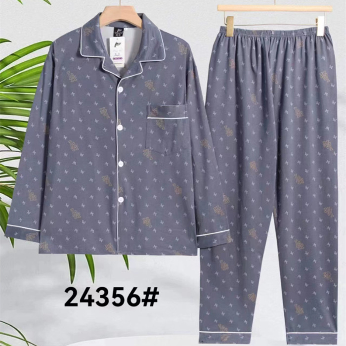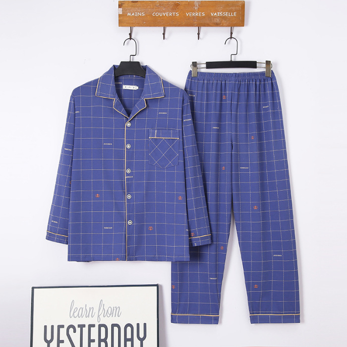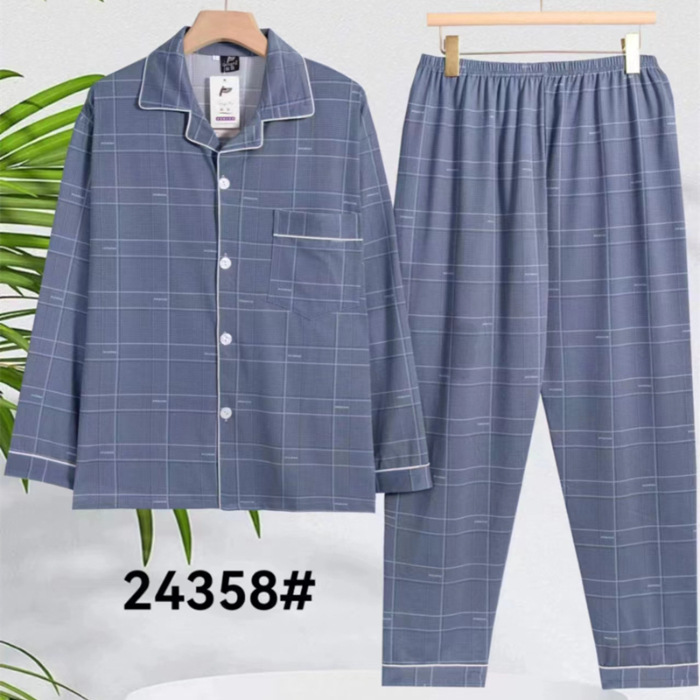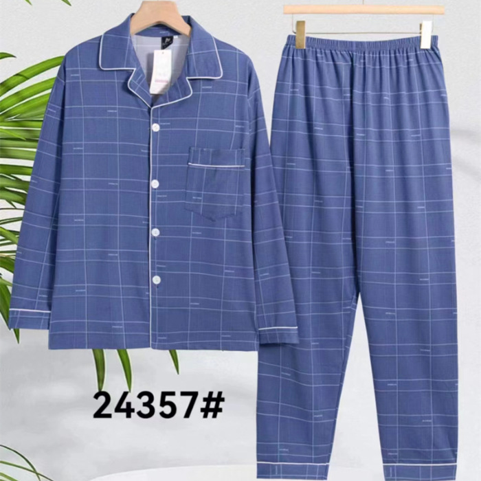 2024 년 새로운 격자 무늬 잠옷 남자의 봄과 가을 긴 소매 면화 플러스 사이즈 가을과 겨울 남자 겉옷 홈 옷