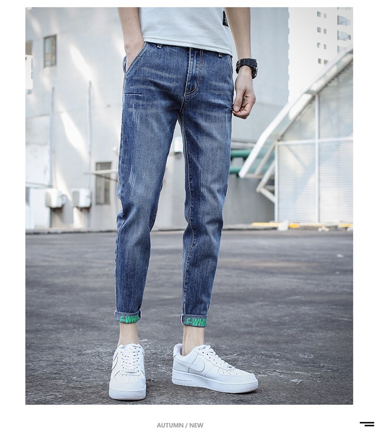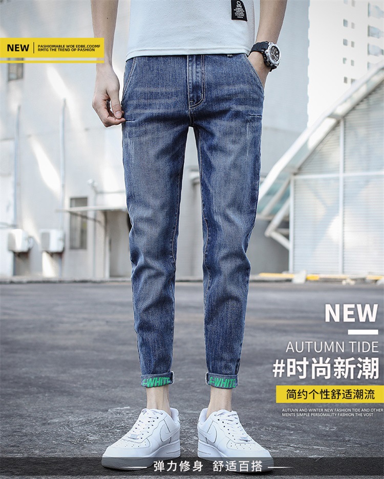 남성용 청바지 2024 새로운 도착 패션 브랜드 여름 얇은 슬림 핏 스키니 봄과 가을 스트레치 9 포인트 캐주얼 바지