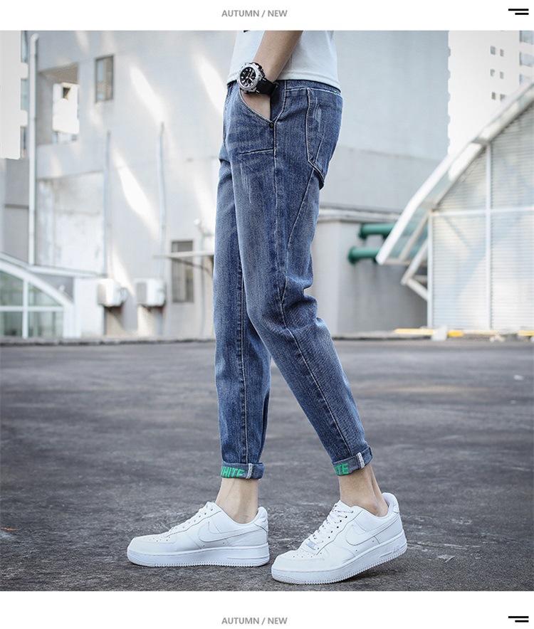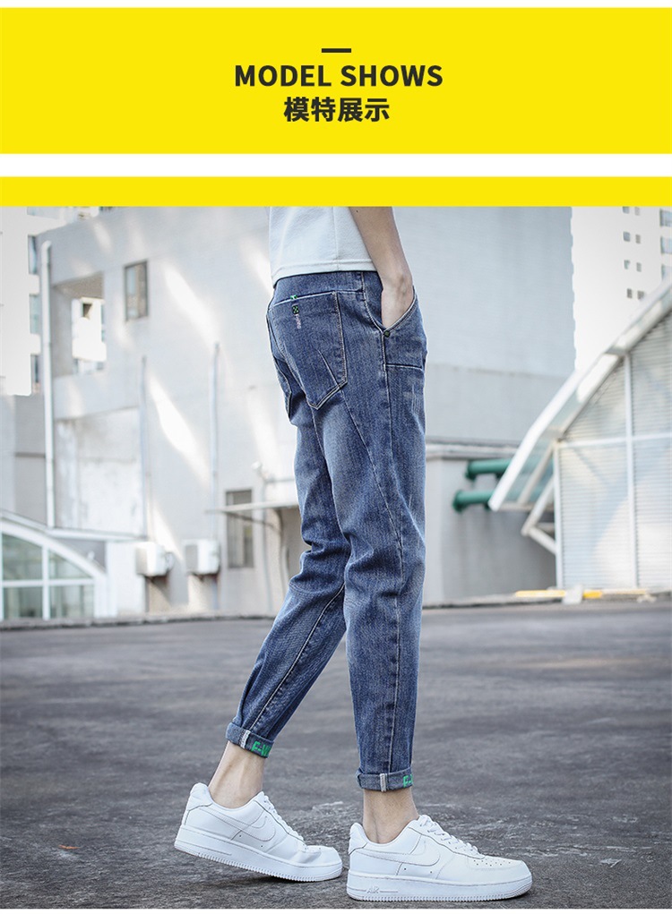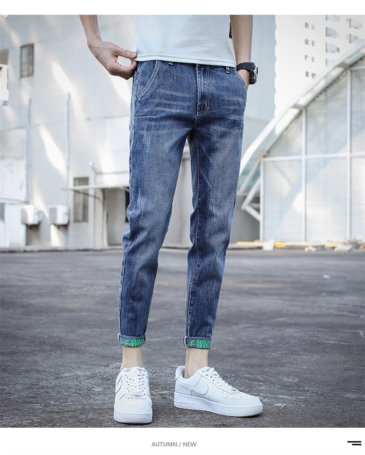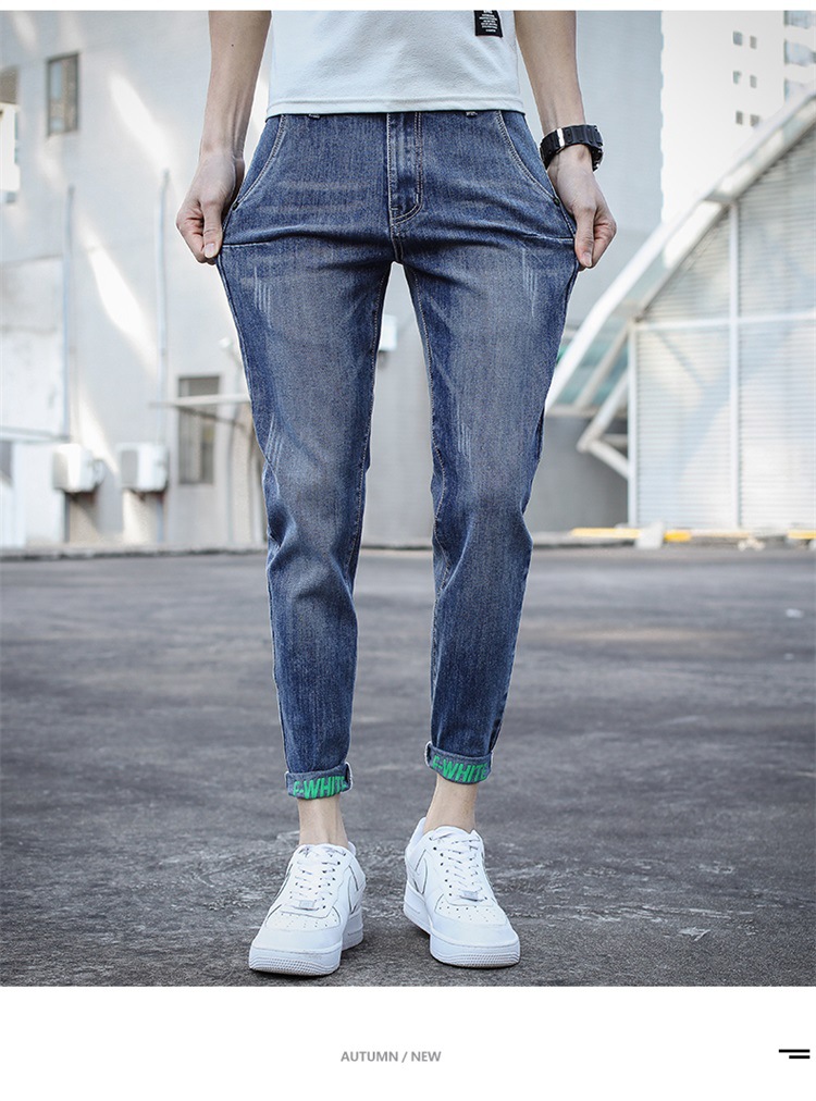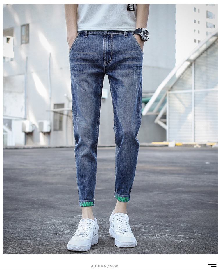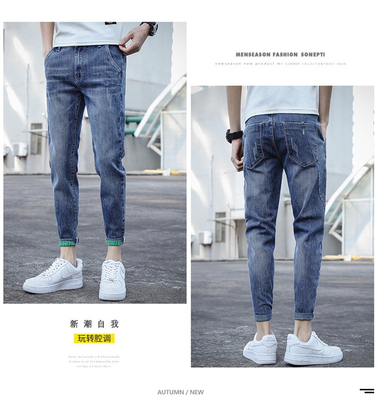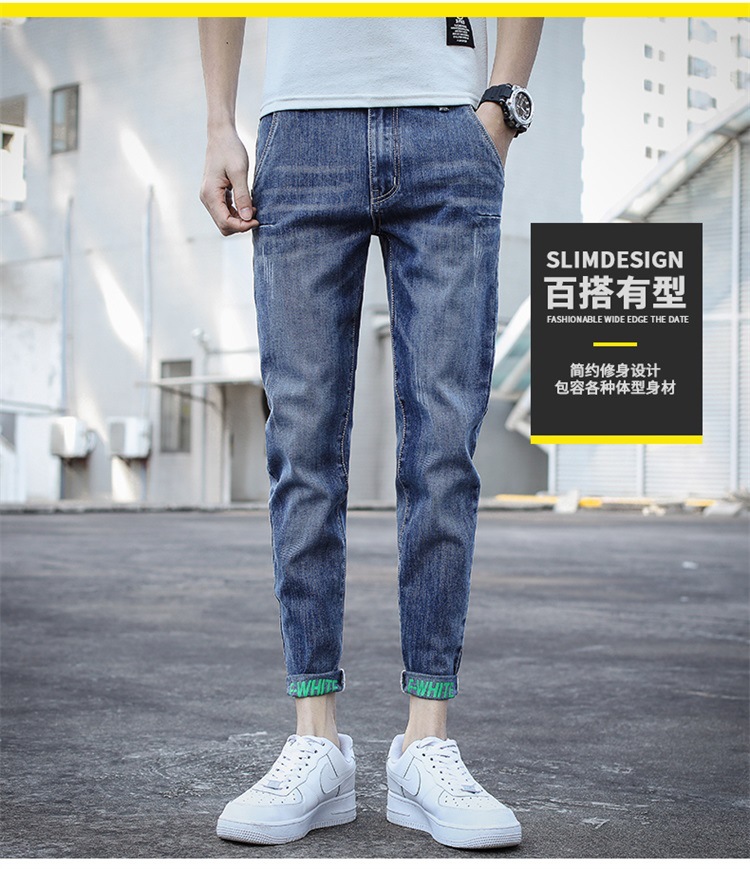 남성용 청바지 2024 새로운 도착 패션 브랜드 여름 얇은 슬림 핏 스키니 봄과 가을 스트레치 9 포인트 캐주얼 바지스토어 가기