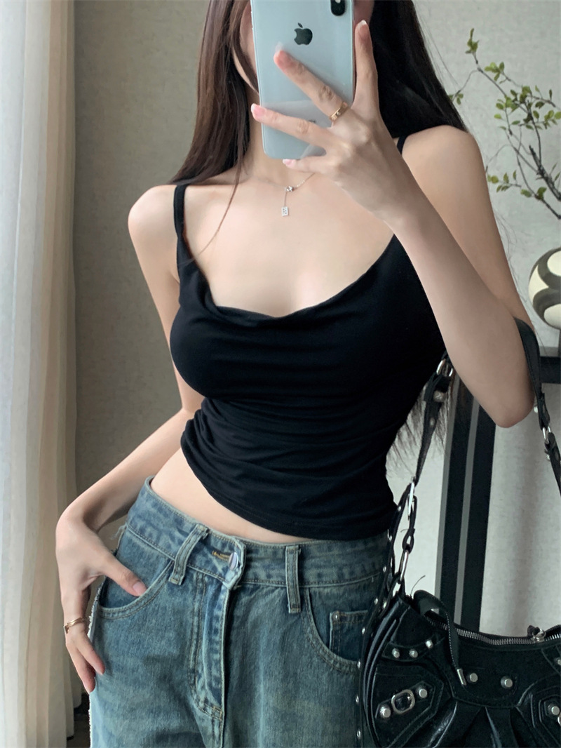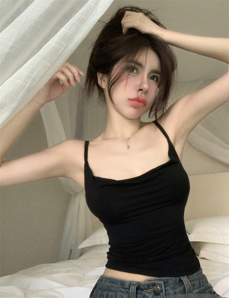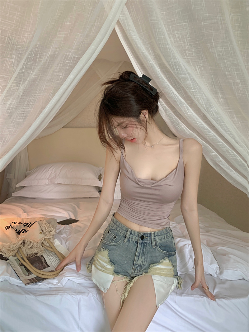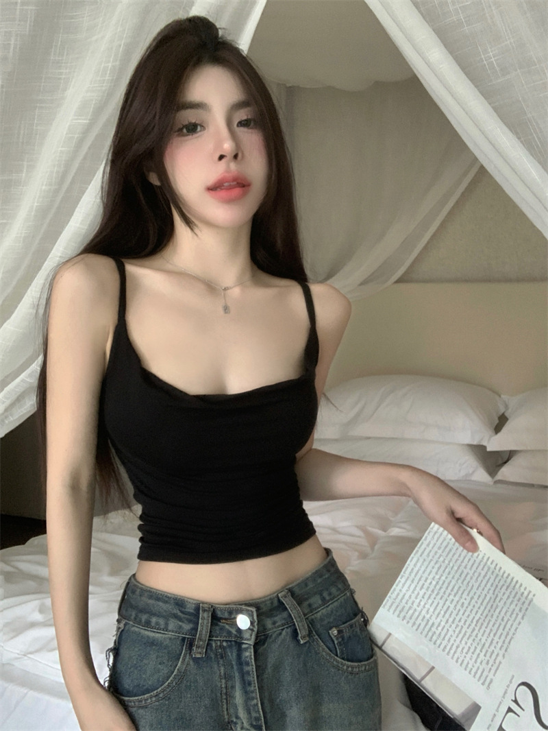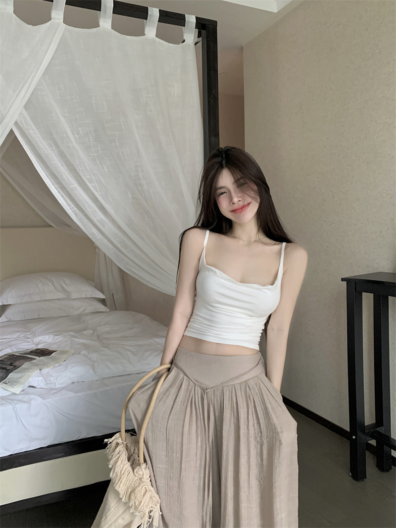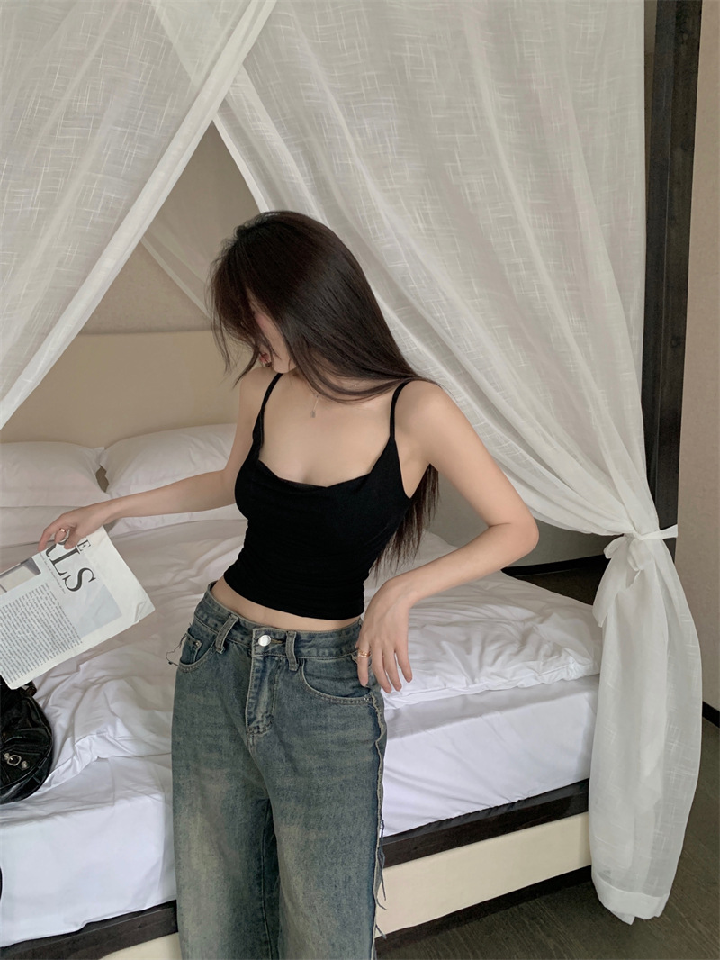 순수한 욕망 스타일 Pleated Camisole 여성의 여름 달콤한 스파이스 소녀 섹시한 프랑스 스타일 민소매 짧은 웨이스트 탑스토어 가기