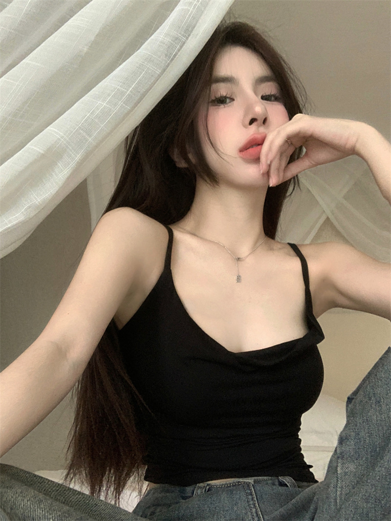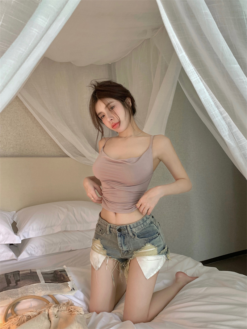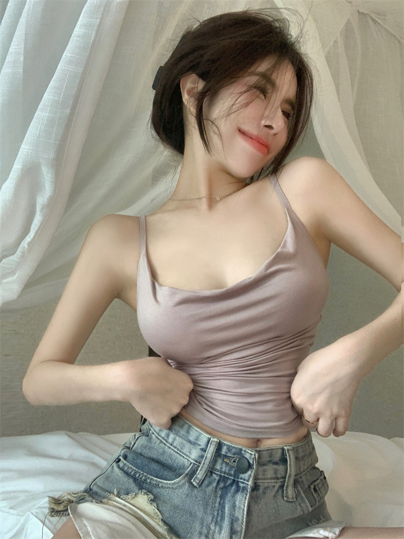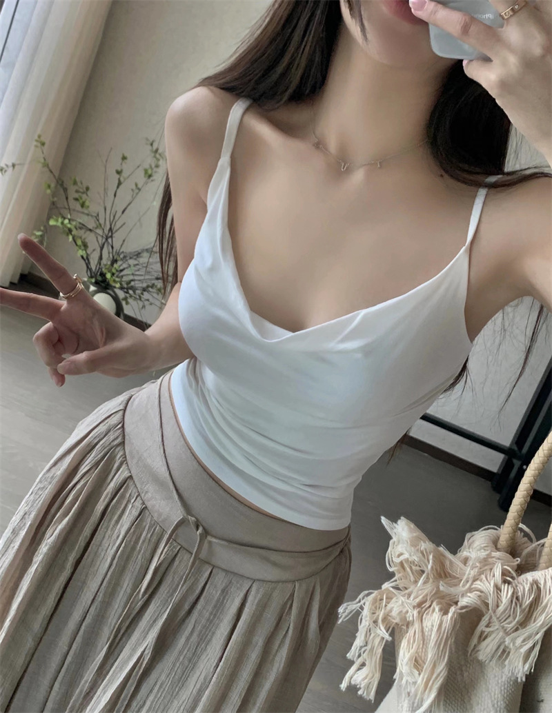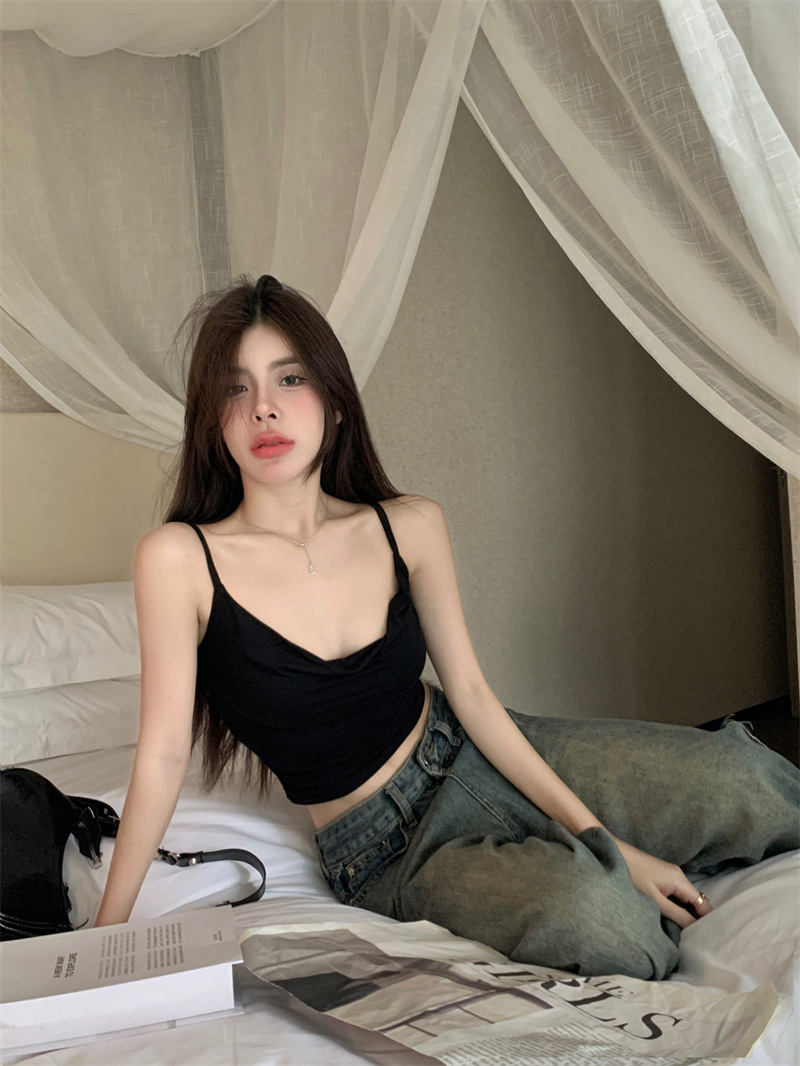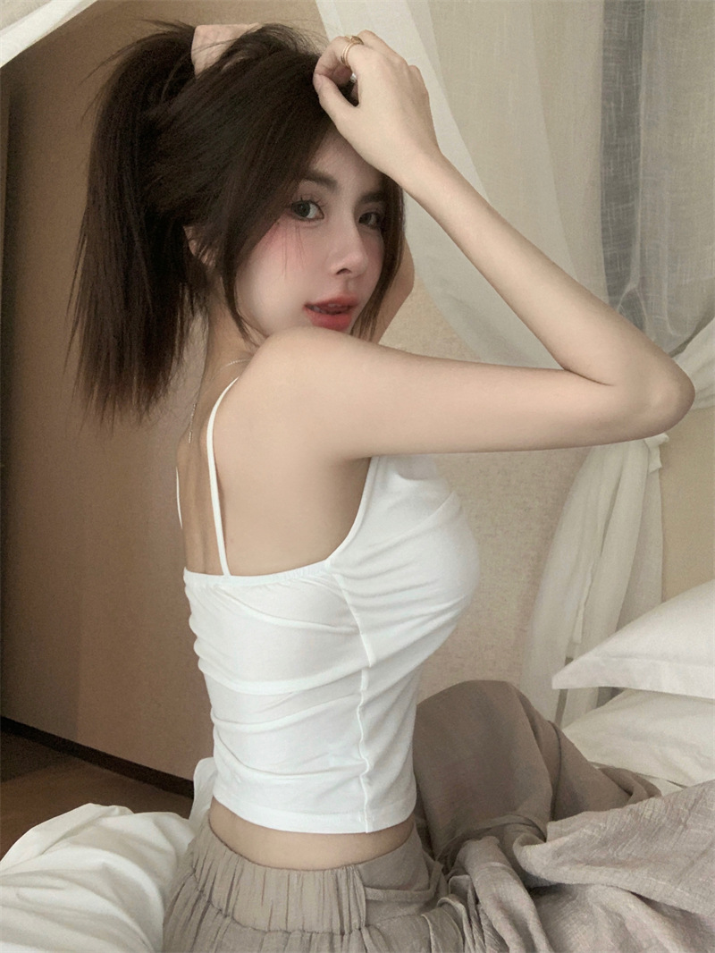 순수한 욕망 스타일 Pleated Camisole 여성의 여름 달콤한 스파이스 소녀 섹시한 프랑스 스타일 민소매 짧은 웨이스트 탑스토어 가기
