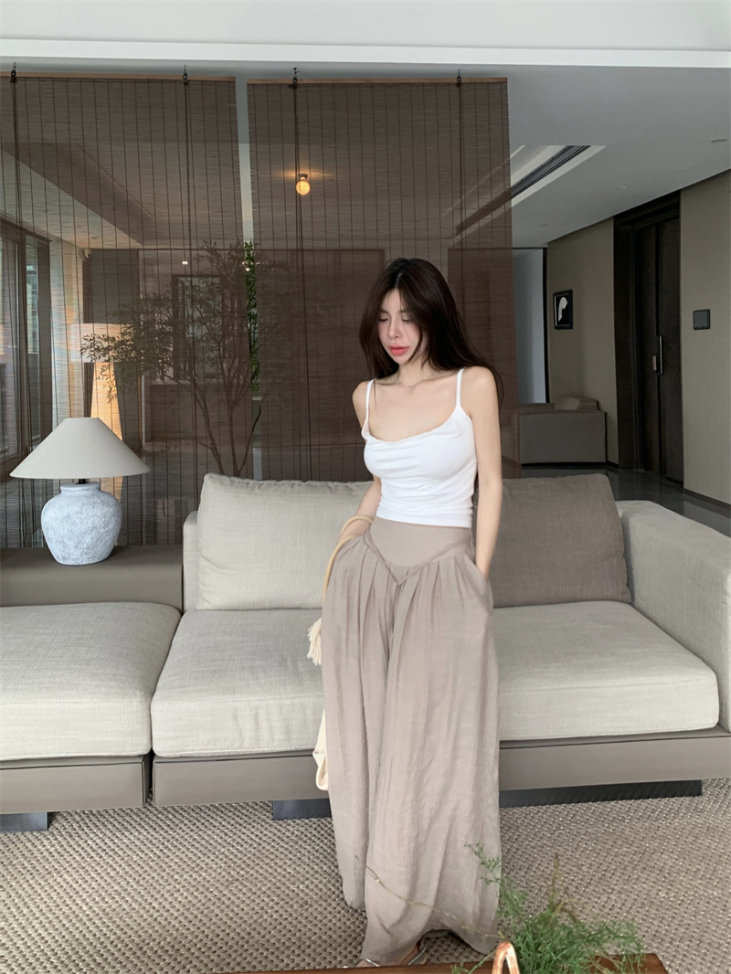 순수한 욕망 스타일 Pleated Camisole 여성의 여름 달콤한 스파이스 소녀 섹시한 프랑스 스타일 민소매 짧은 웨이스트 탑