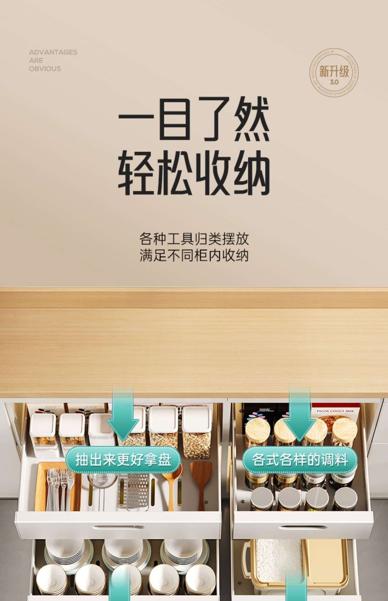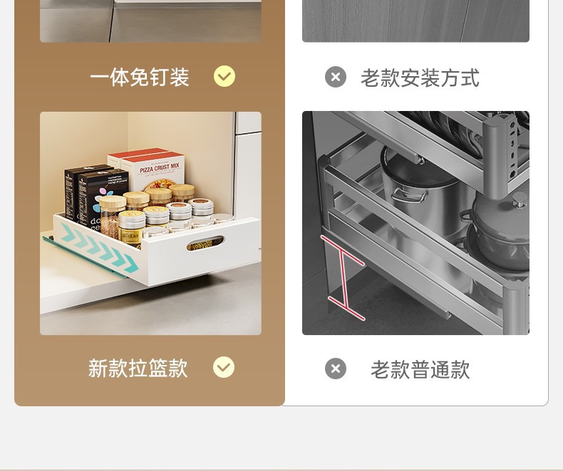 캐비닛 슬라이드 레일 통합 스토리지 박스 싱크 접시 향신료 랙의 도매 캐비닛 풀 아웃 바구니 주방 서랍 스토리지 랙스토어 가기