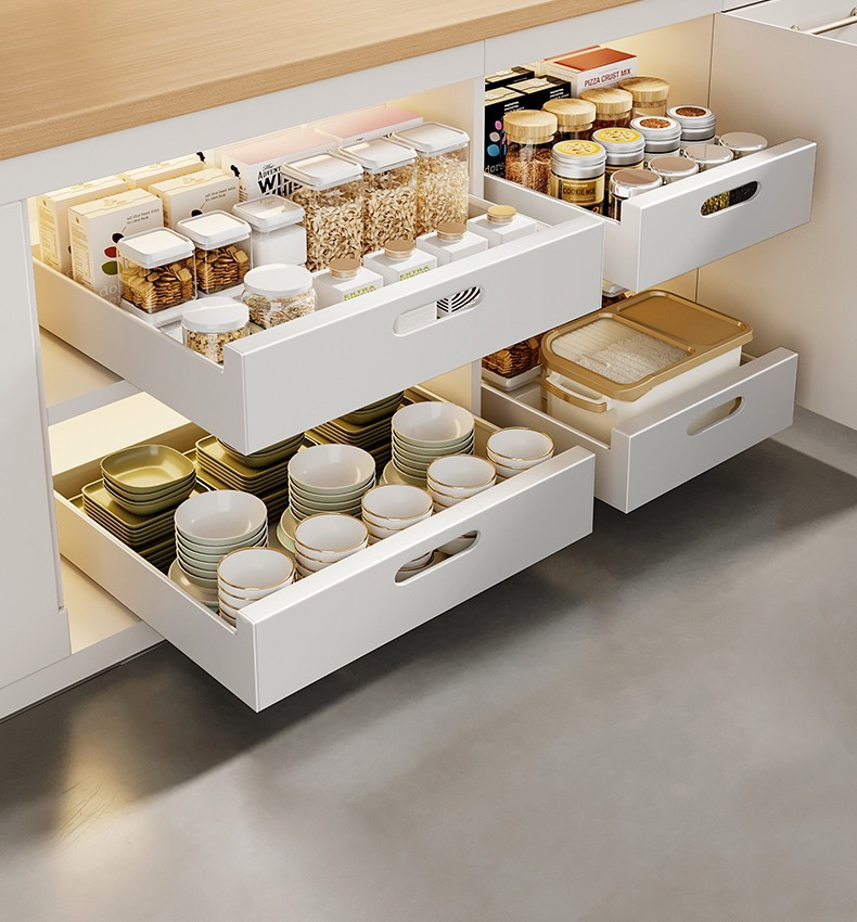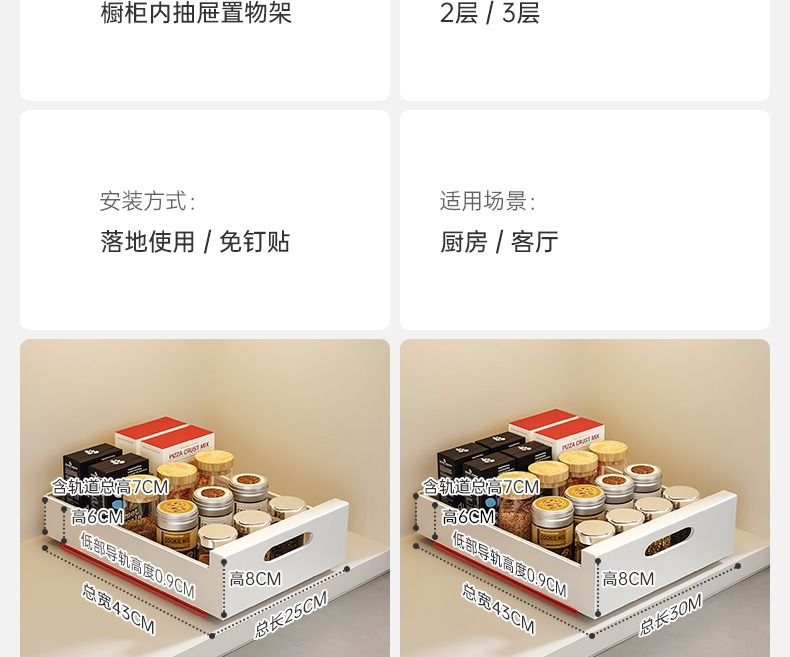 캐비닛 슬라이드 레일 통합 스토리지 박스 싱크 접시 향신료 랙의 도매 캐비닛 풀 아웃 바구니 주방 서랍 스토리지 랙
