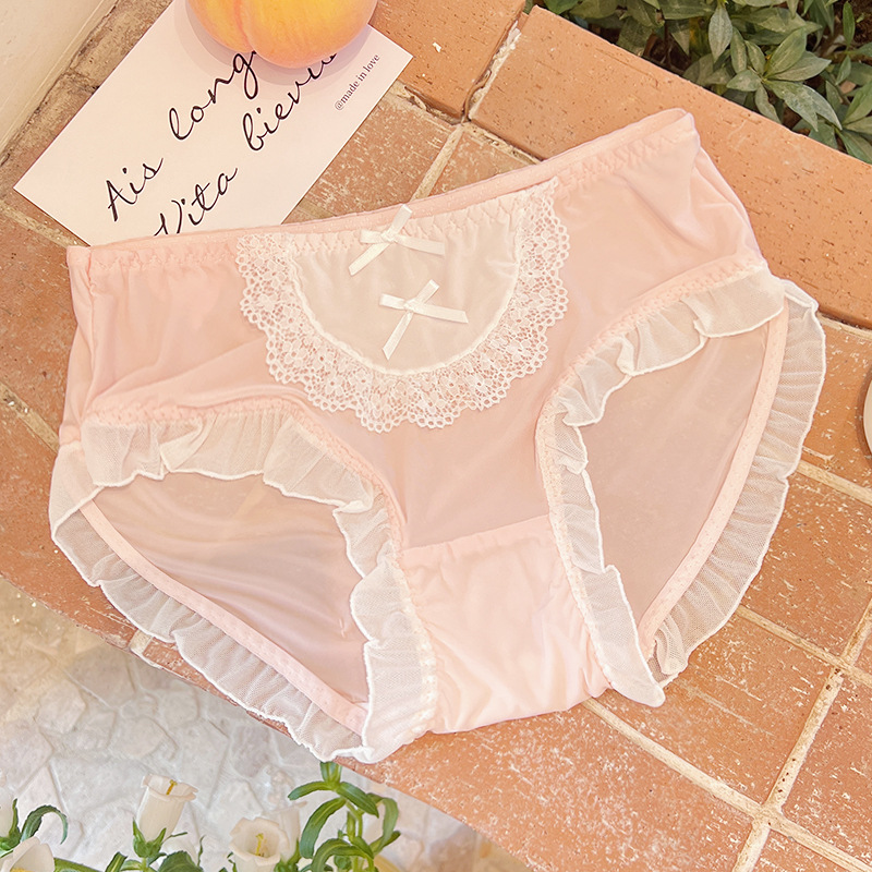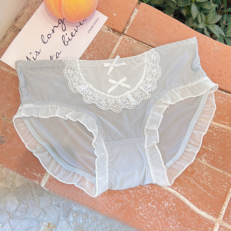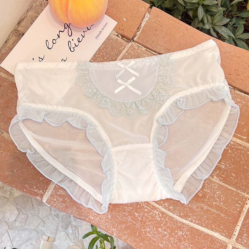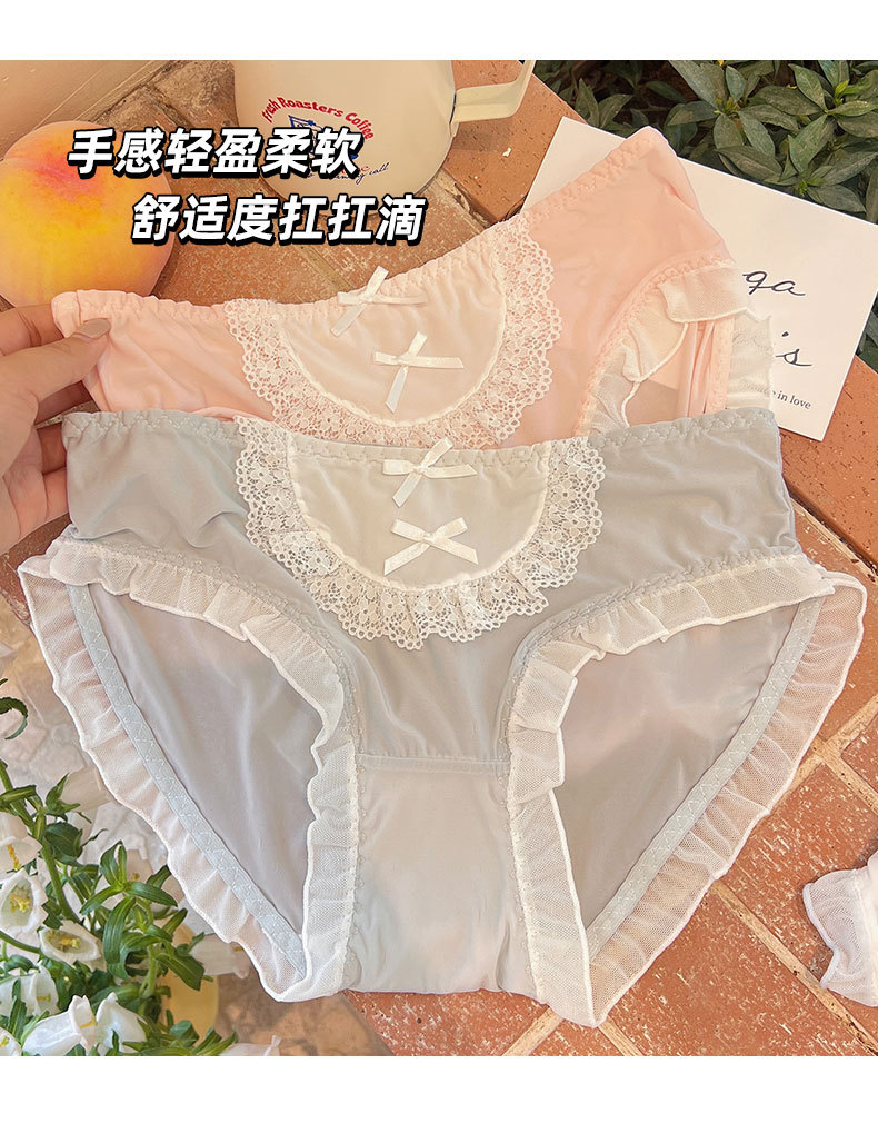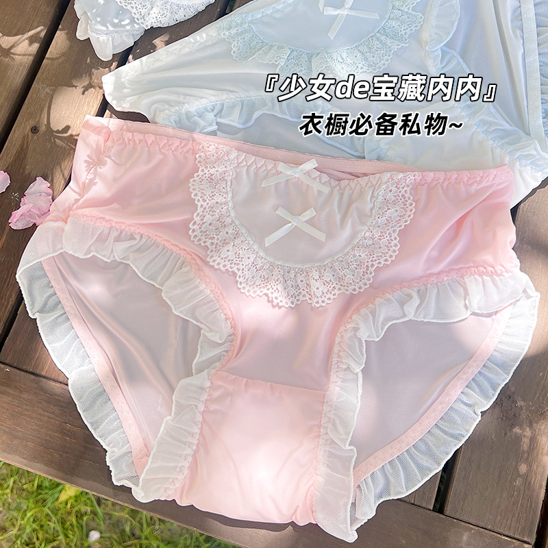 아이스 실크 트레이스 소녀의 속옷 퓨어 코튼 크로트 피부 친화적 인 통기성 섹시 달콤한 귀여운 일본 로리타 속옷 여성 여름