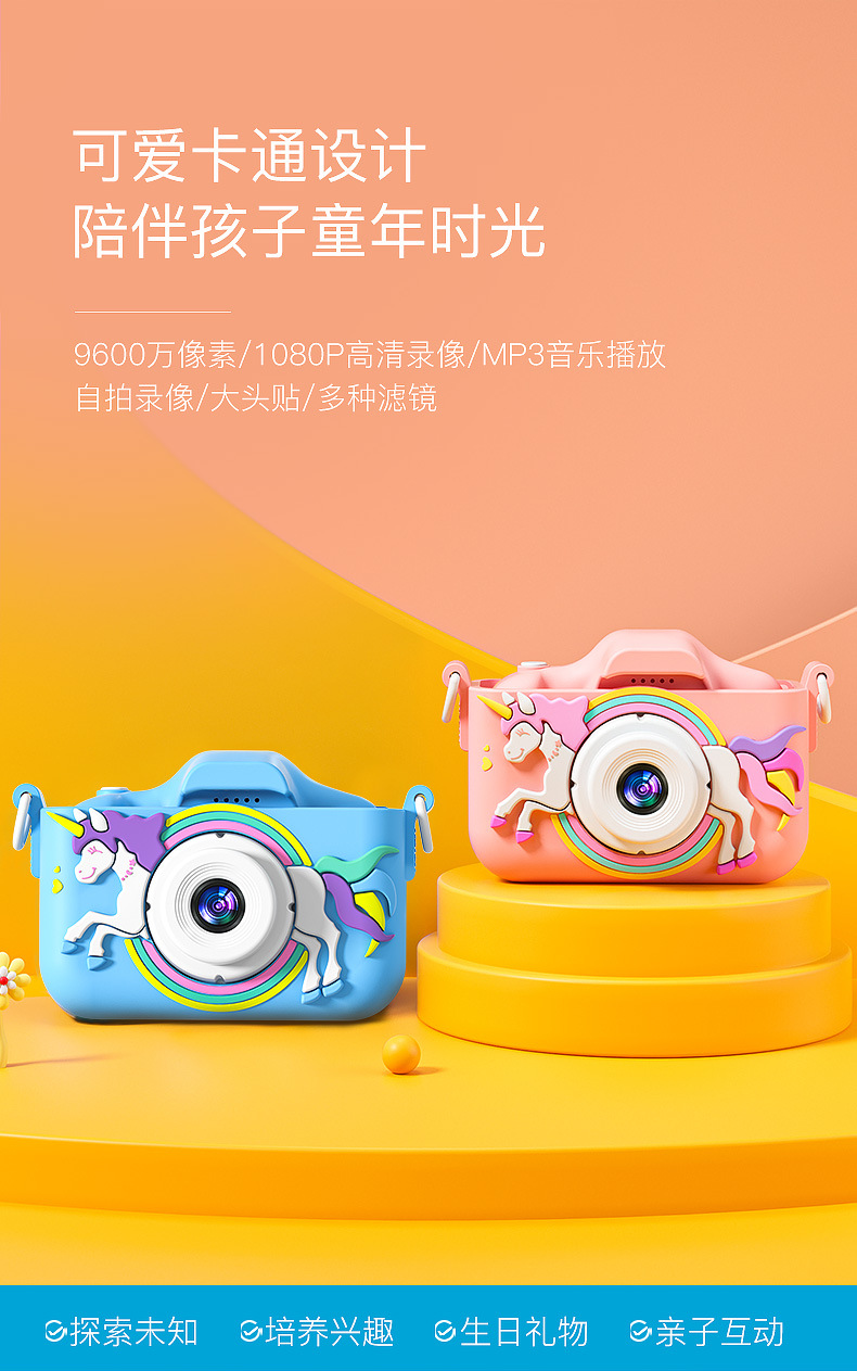 儿童相机专属卡:8G/16G/32G/64G/128G,套餐购买更优惠.不配卡可以拍100张照片,相机标配没有内存卡,需要的话联系客服加购.