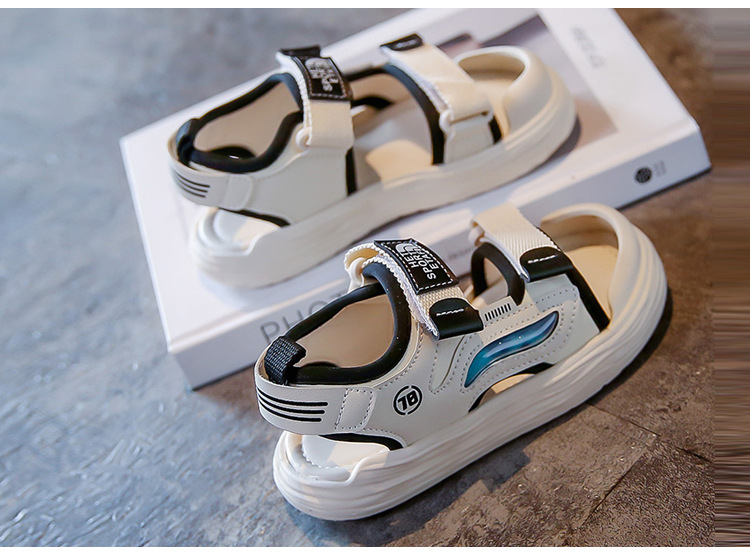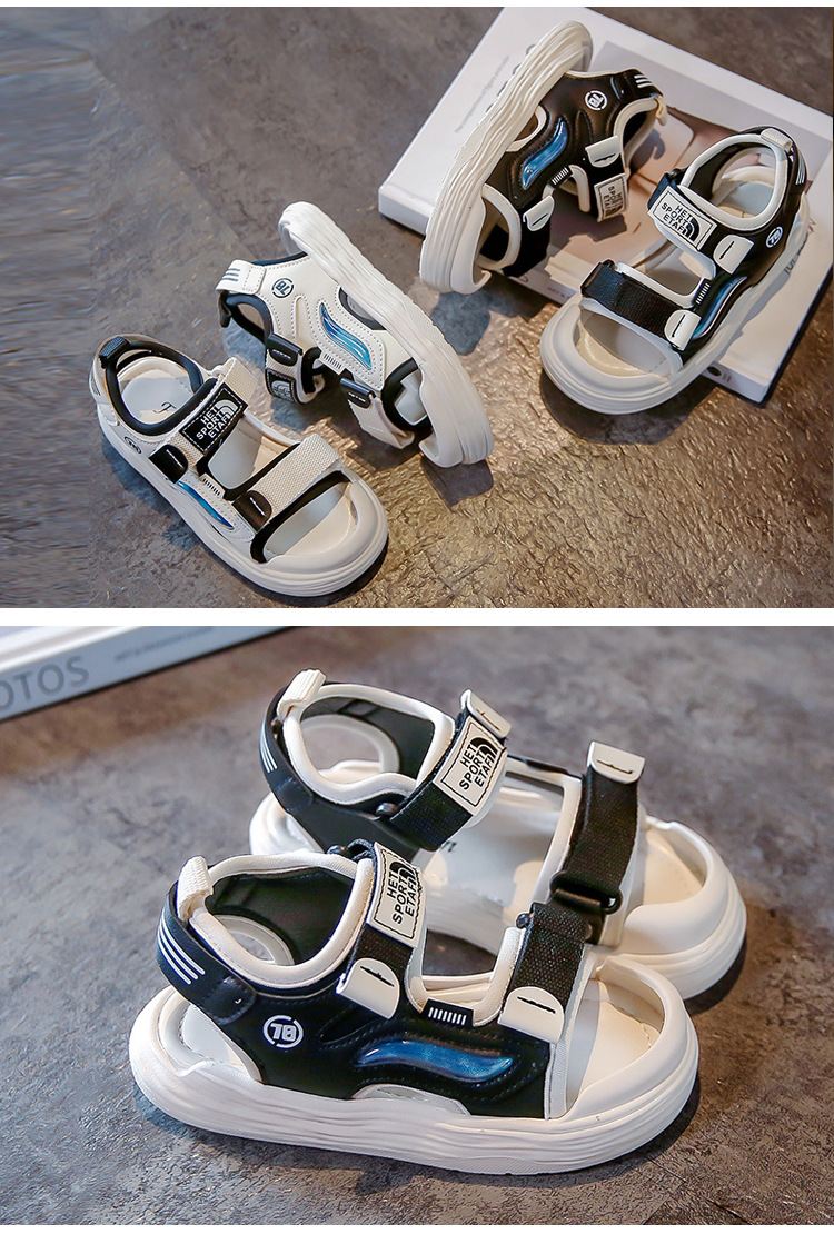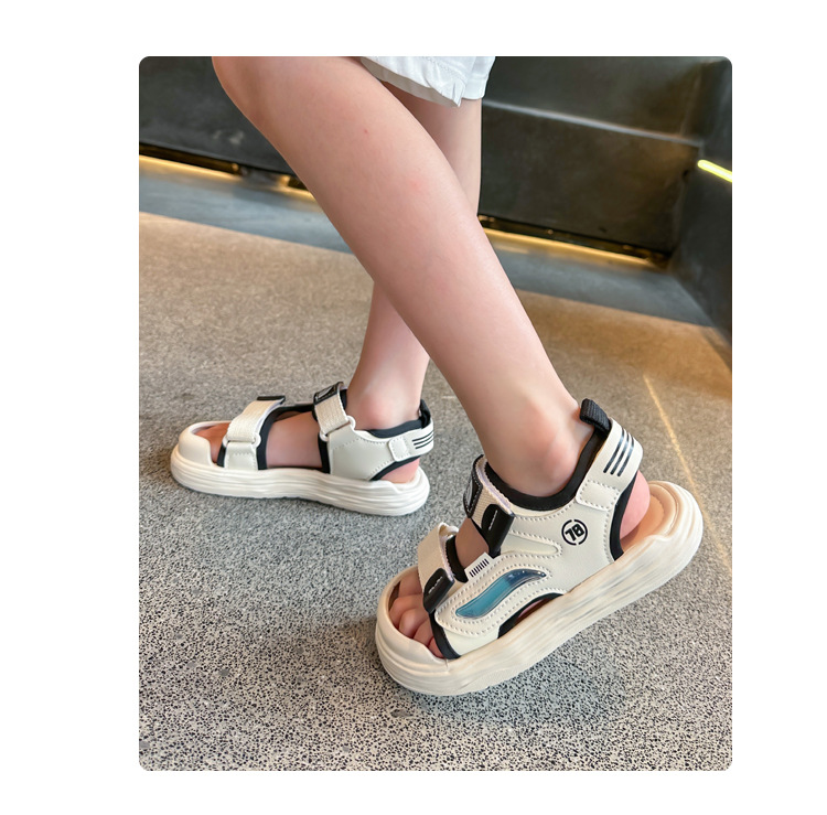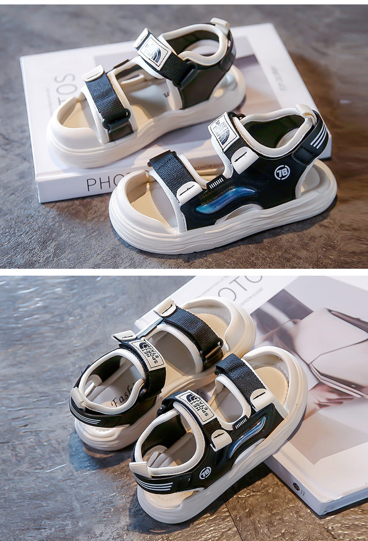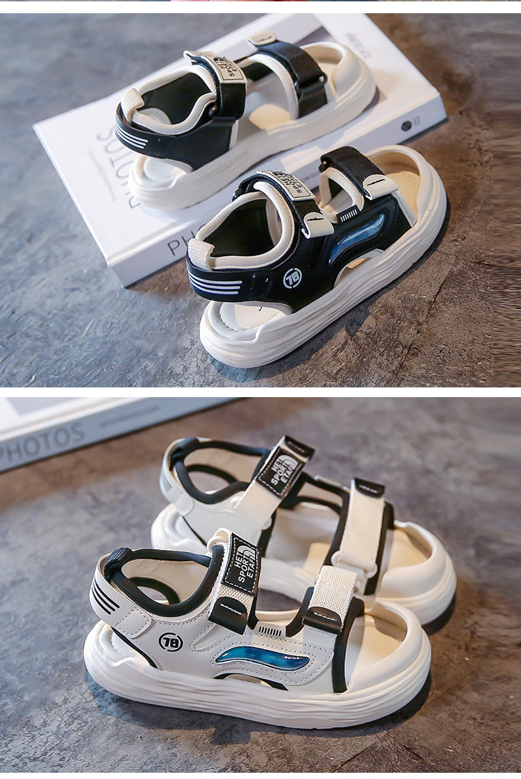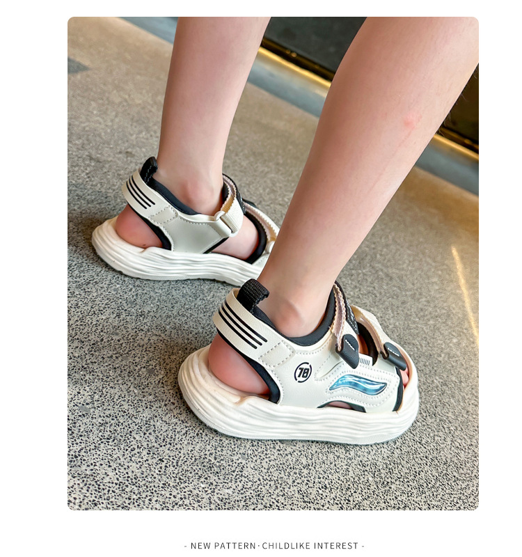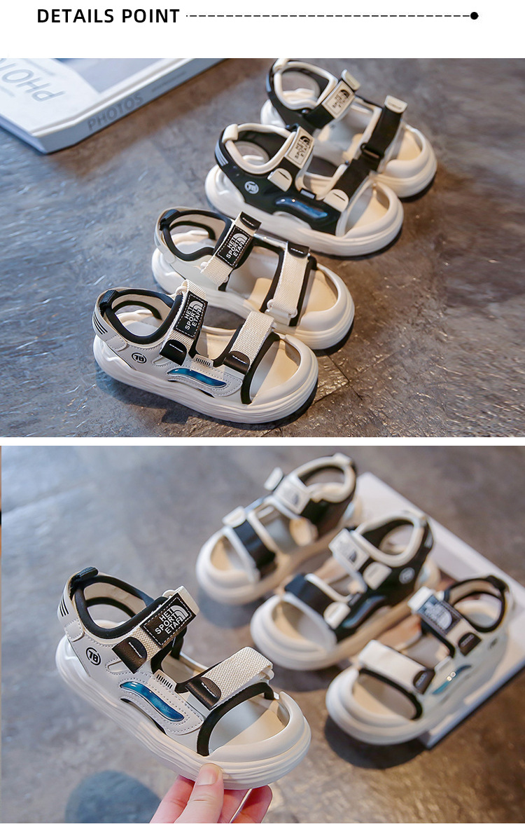 어린이 샌들 새로운 2025 여름 편안한 Baotou 패션 통기성 패션 중대형 어린이 해변 신발 어린이 신발