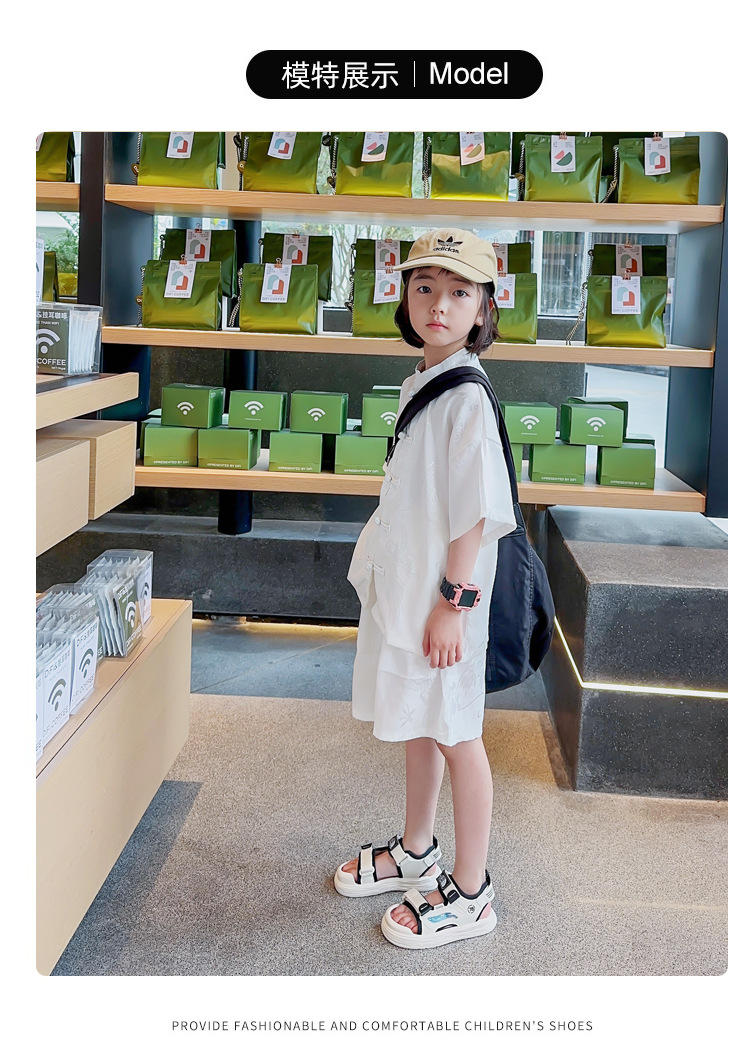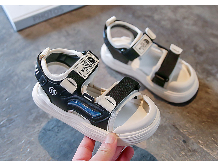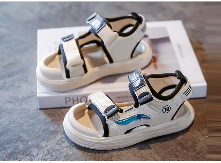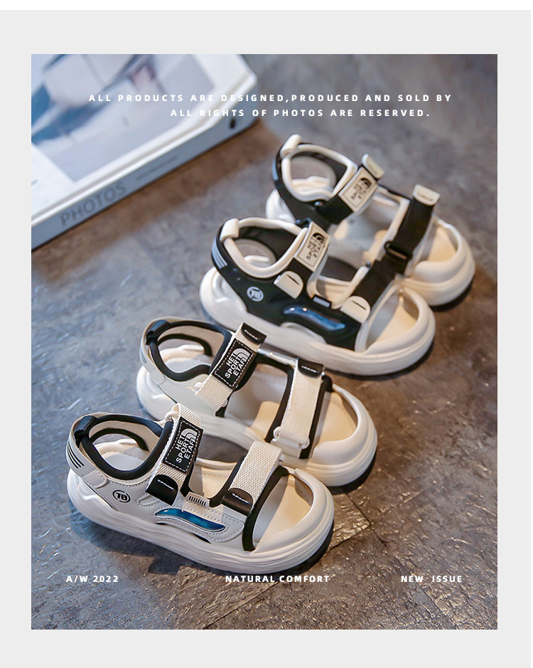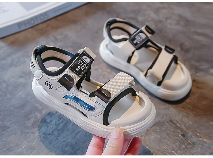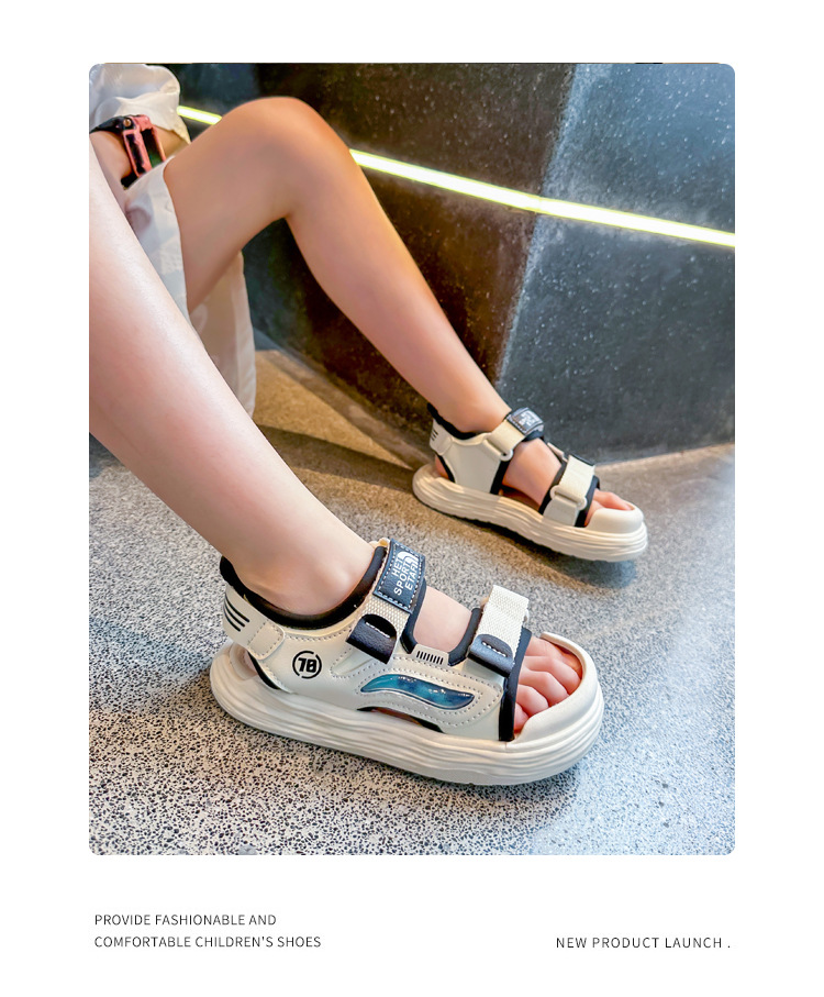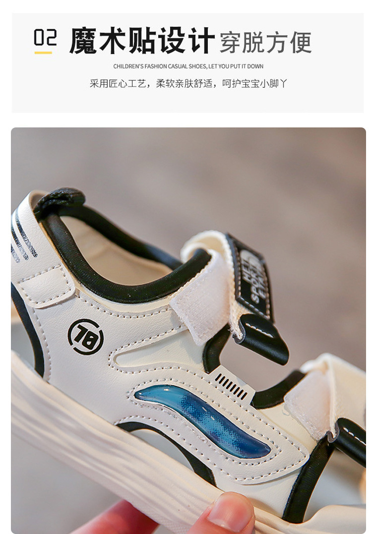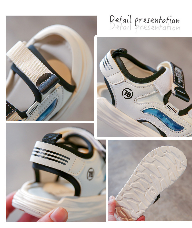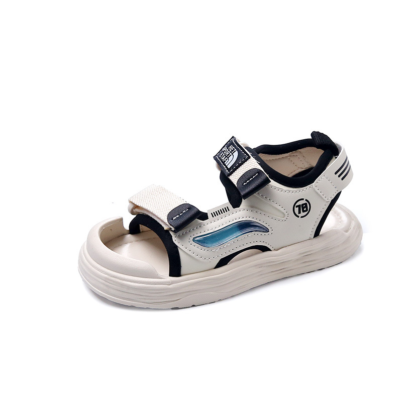 어린이 샌들 새로운 2025 여름 편안한 Baotou 패션 통기성 패션 중대형 어린이 해변 신발 어린이 신발