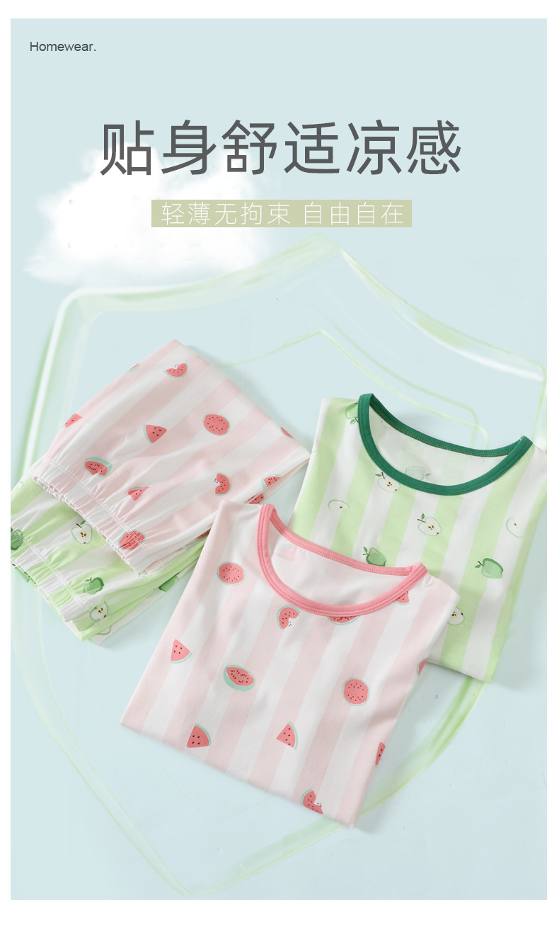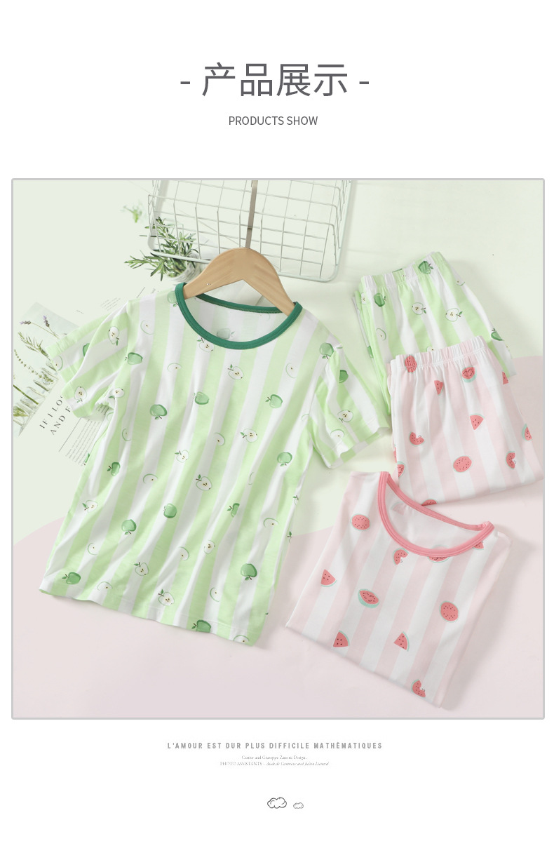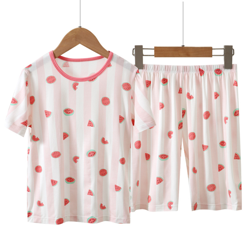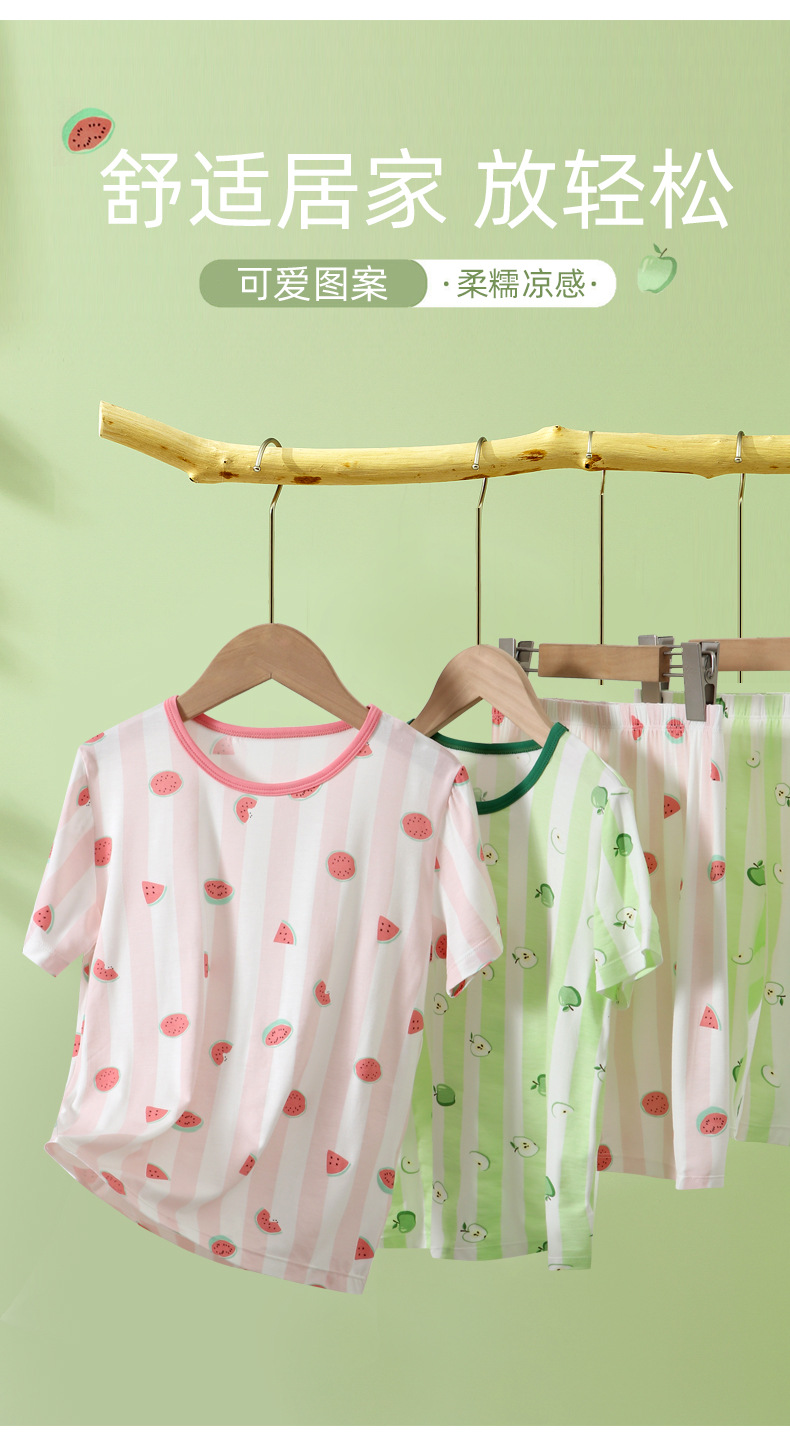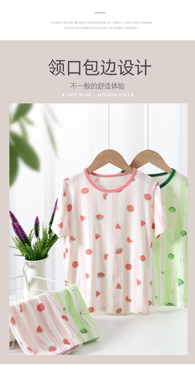 어린이 반팔 홈 의류 세트 여름 얇은 유스 소년 소녀 잠옷 세트 모달 뉴와 비슷스토어 가기