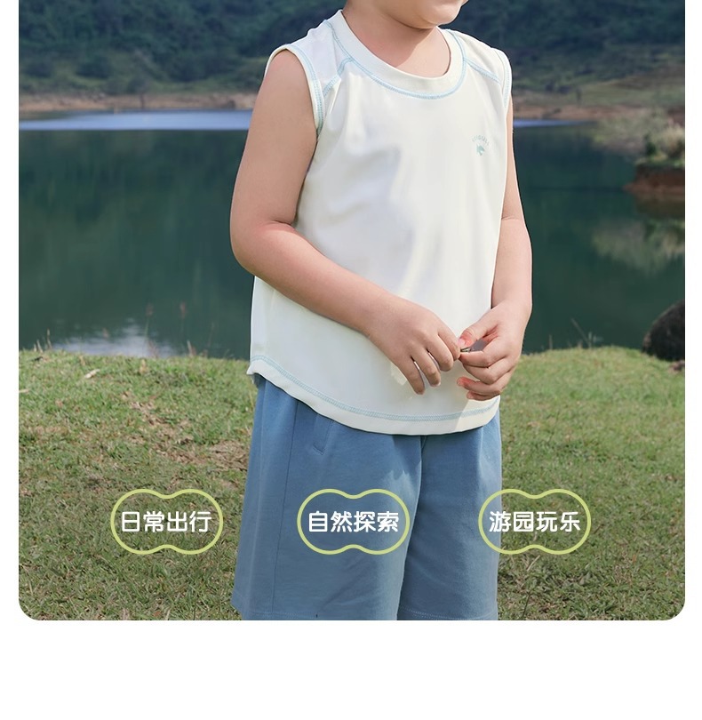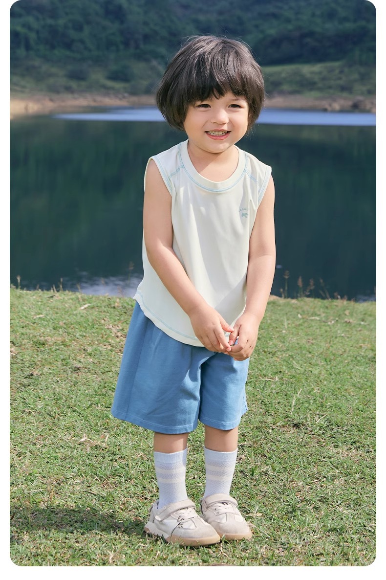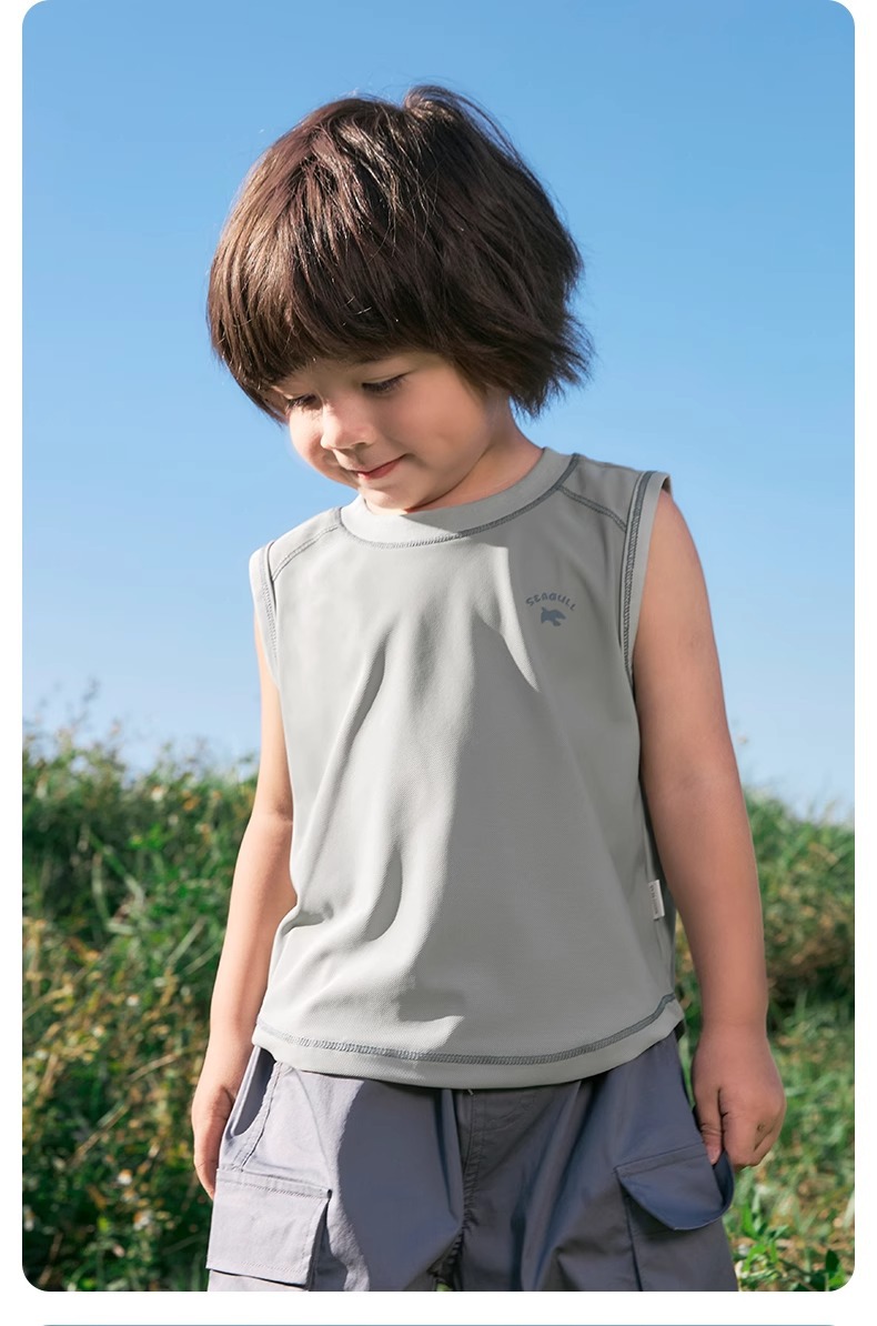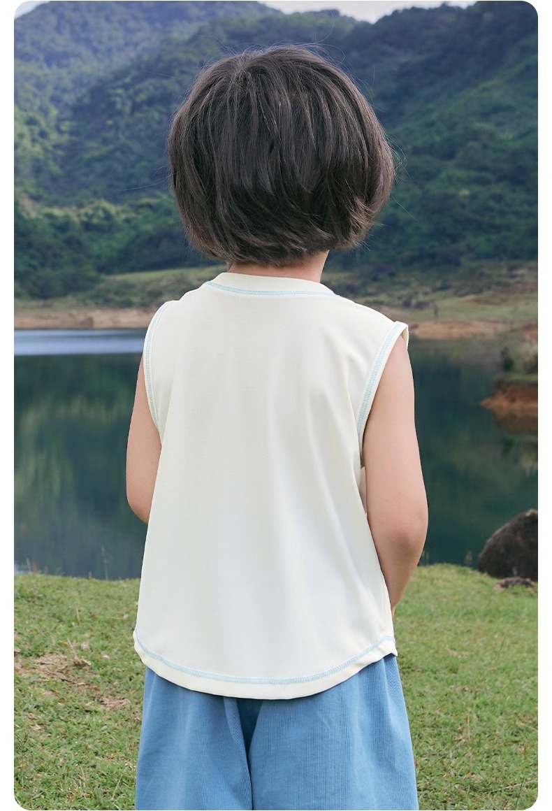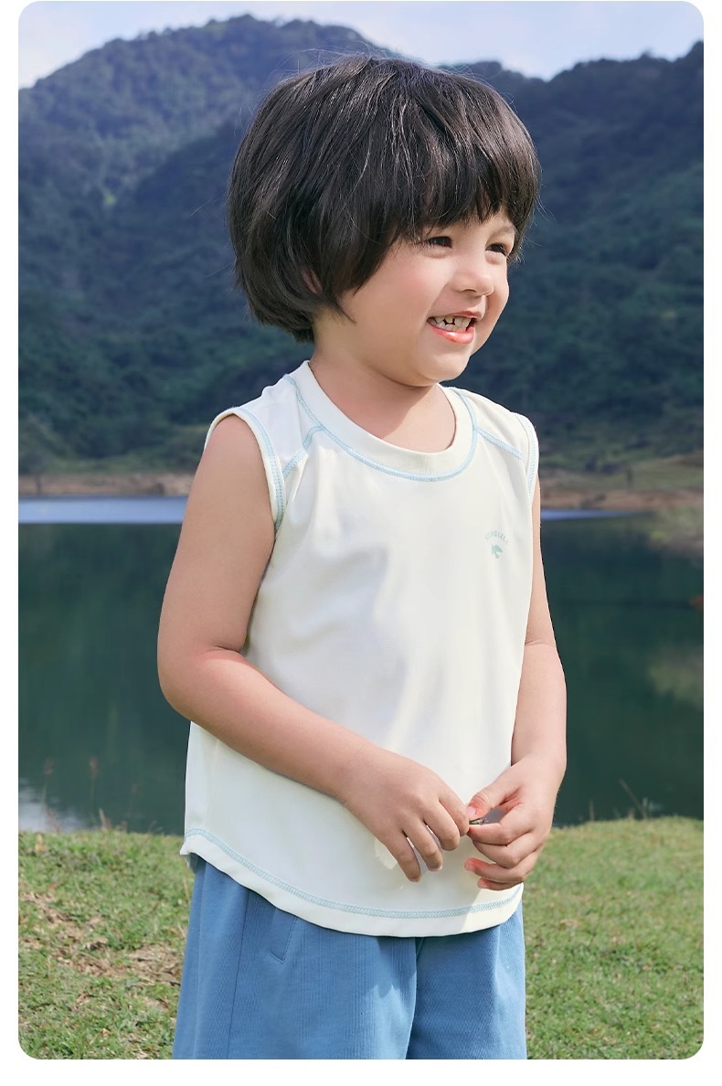 [빠른 건조 통기성] 니도베어 2024 년 여름 새 소년 조끼 아기 명암 컬러 라인 스포츠 민소매 얇은