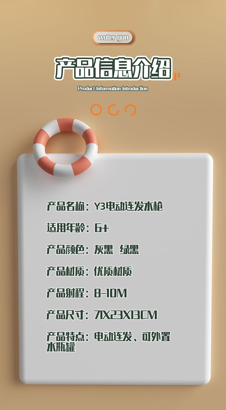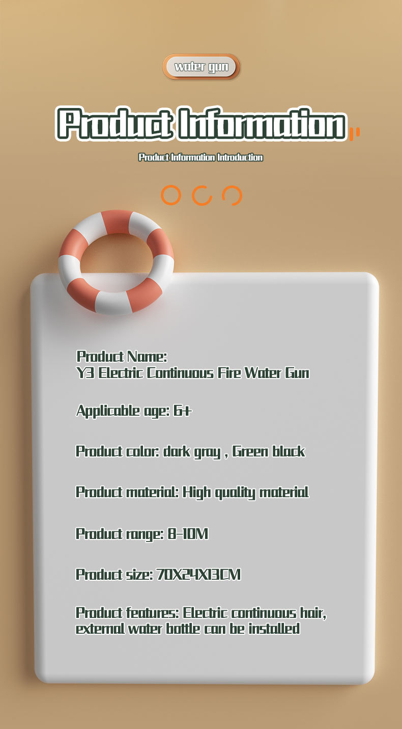 Y3 국경 여름 새로운 자동 연속 머리 전기 물 총 물 드럼 대용량 어린이 및 소년 물 장난감스토어 가기