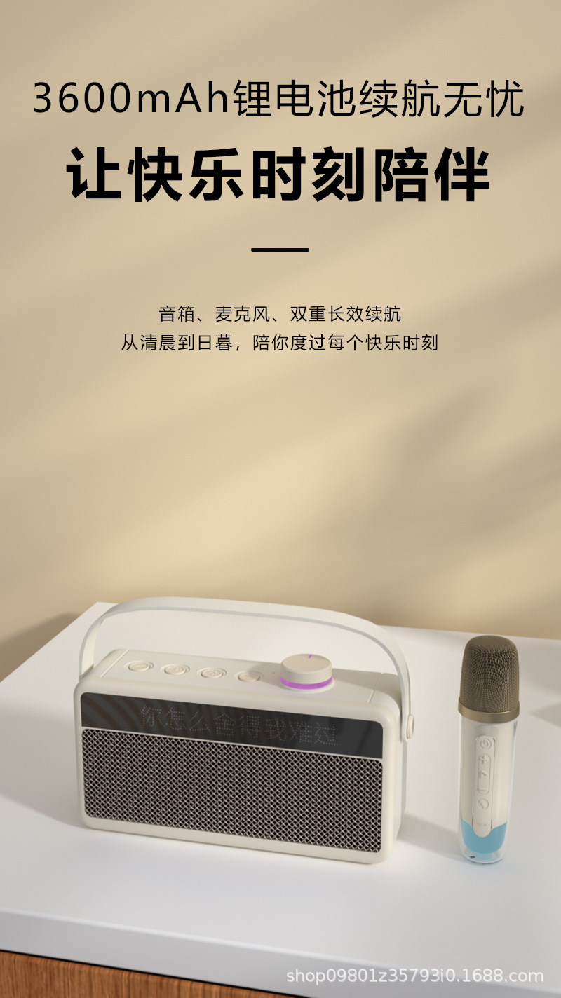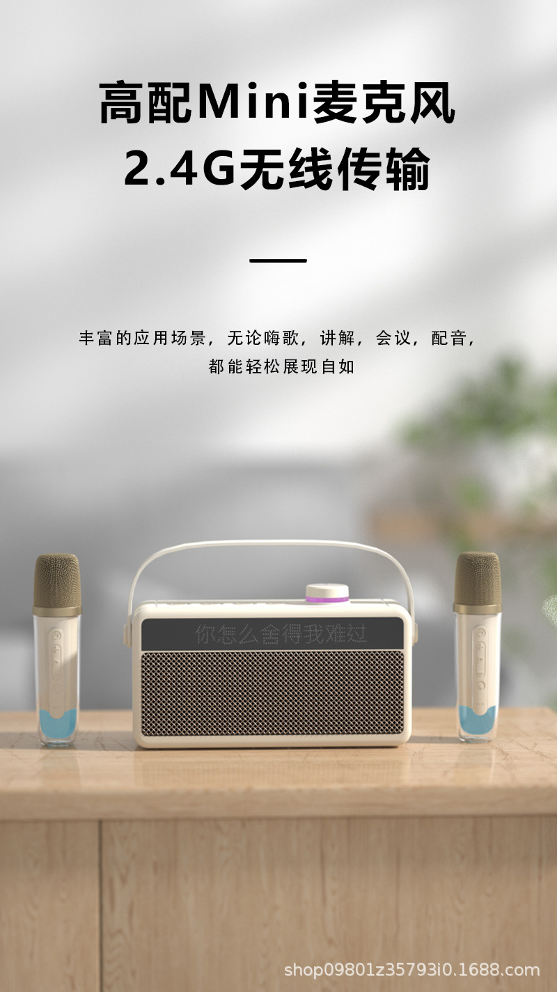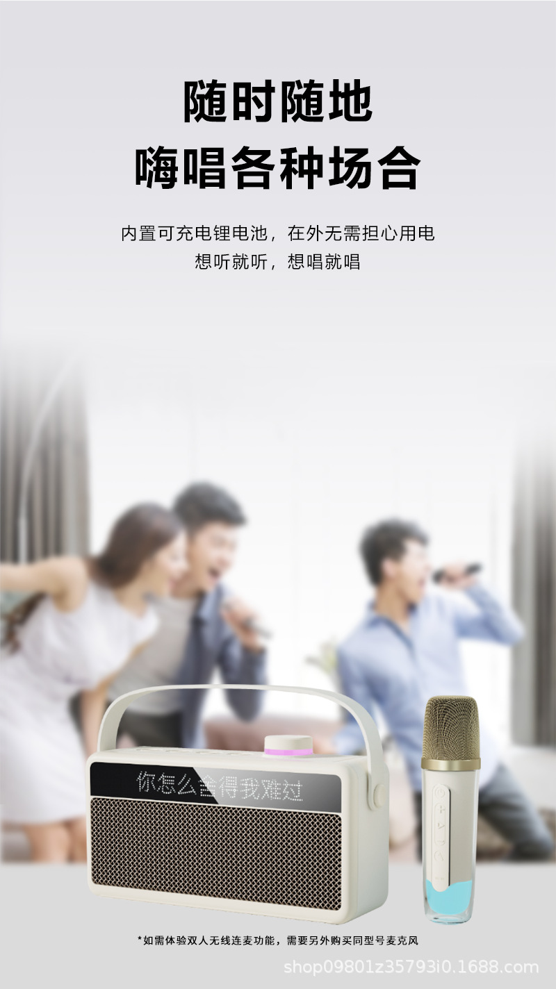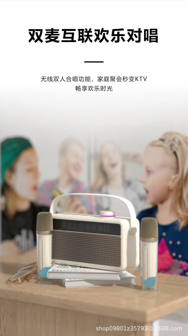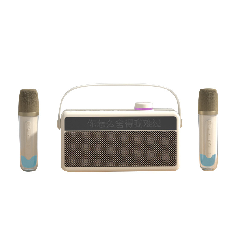 가정용 노래방 휴대용 블루투스 스피커, 가사 표시 기능, 듀얼 마이크, 야외 노래방 스테레오 사운드