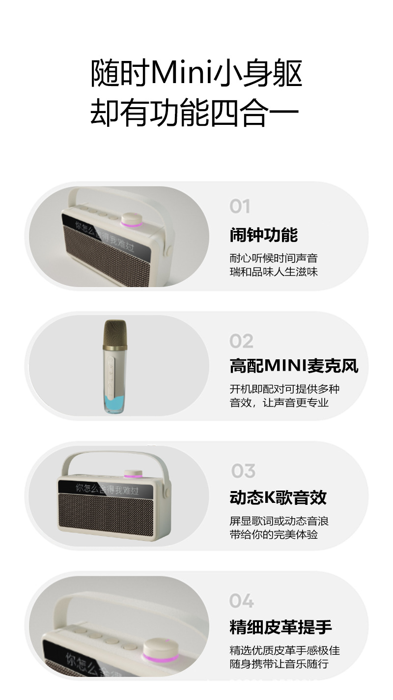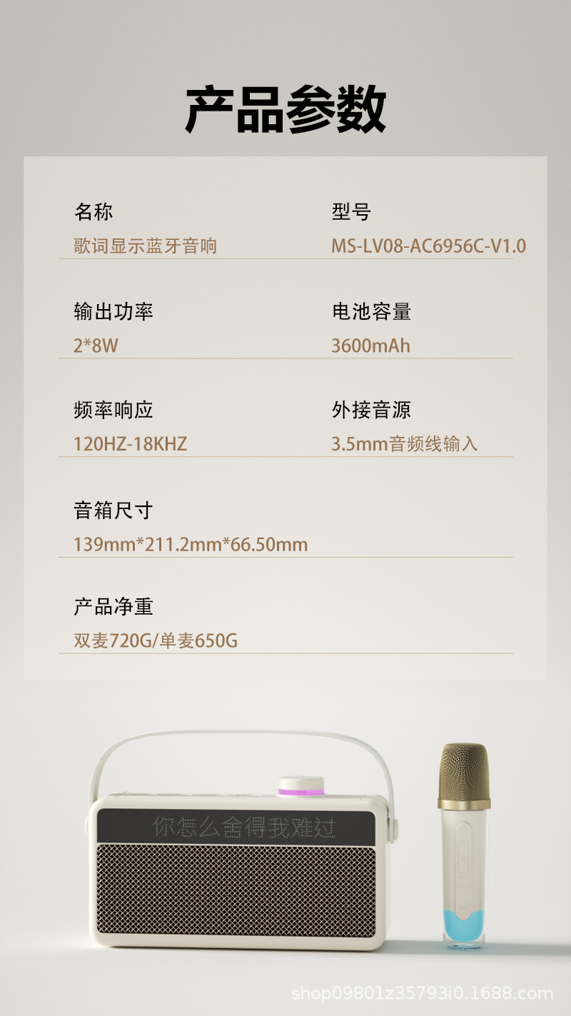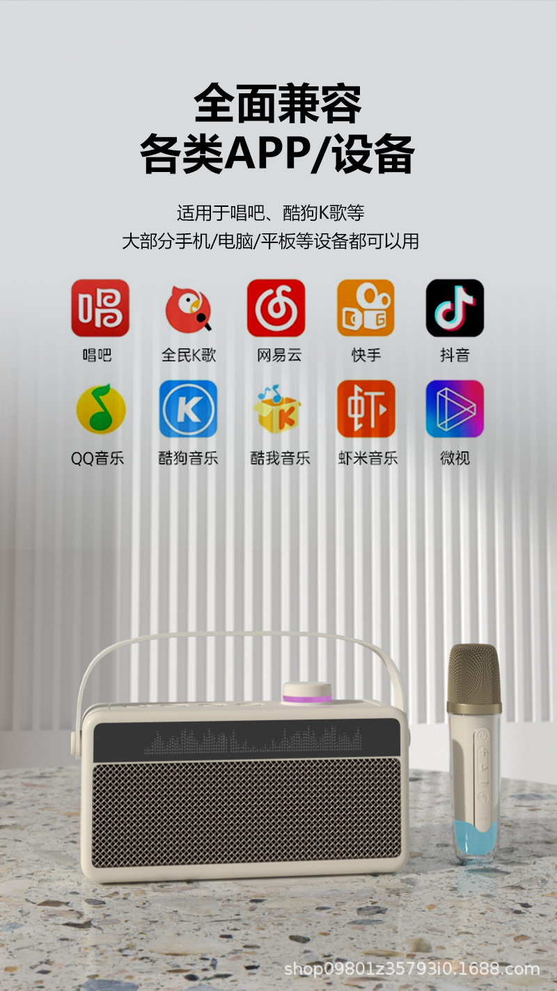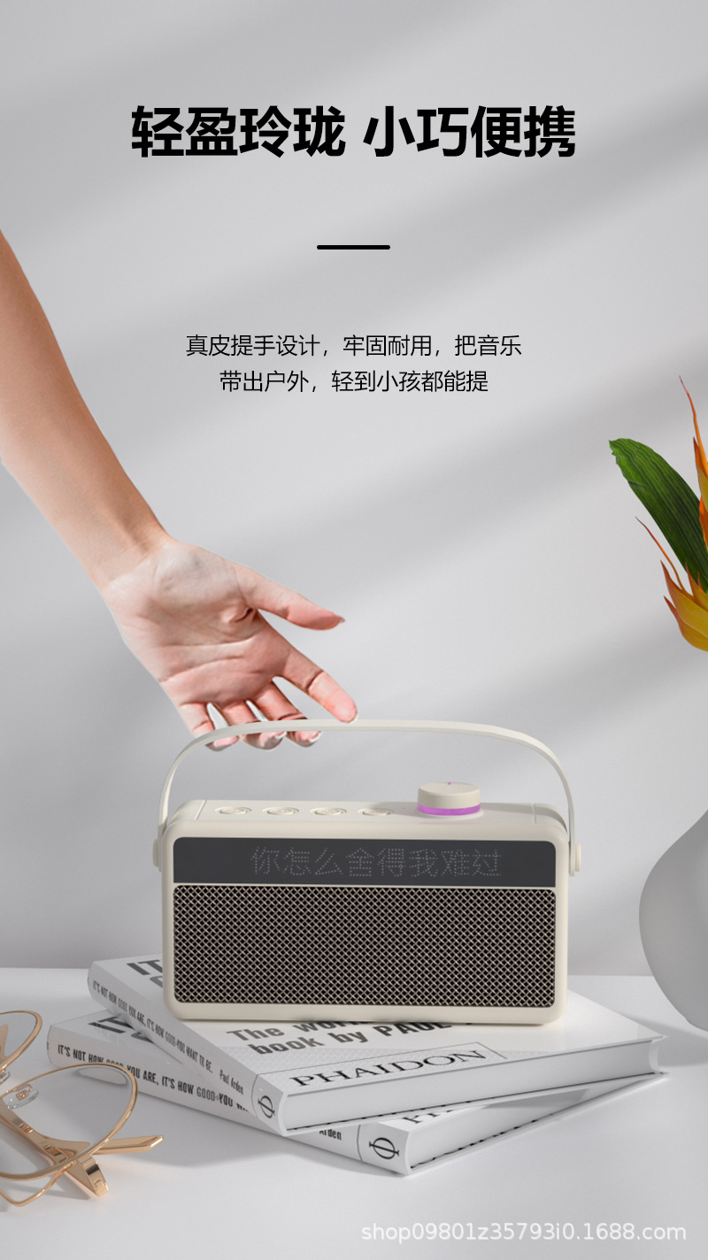 가정용 노래방 휴대용 블루투스 스피커, 가사 표시 기능, 듀얼 마이크, 야외 노래방 스테레오 사운드