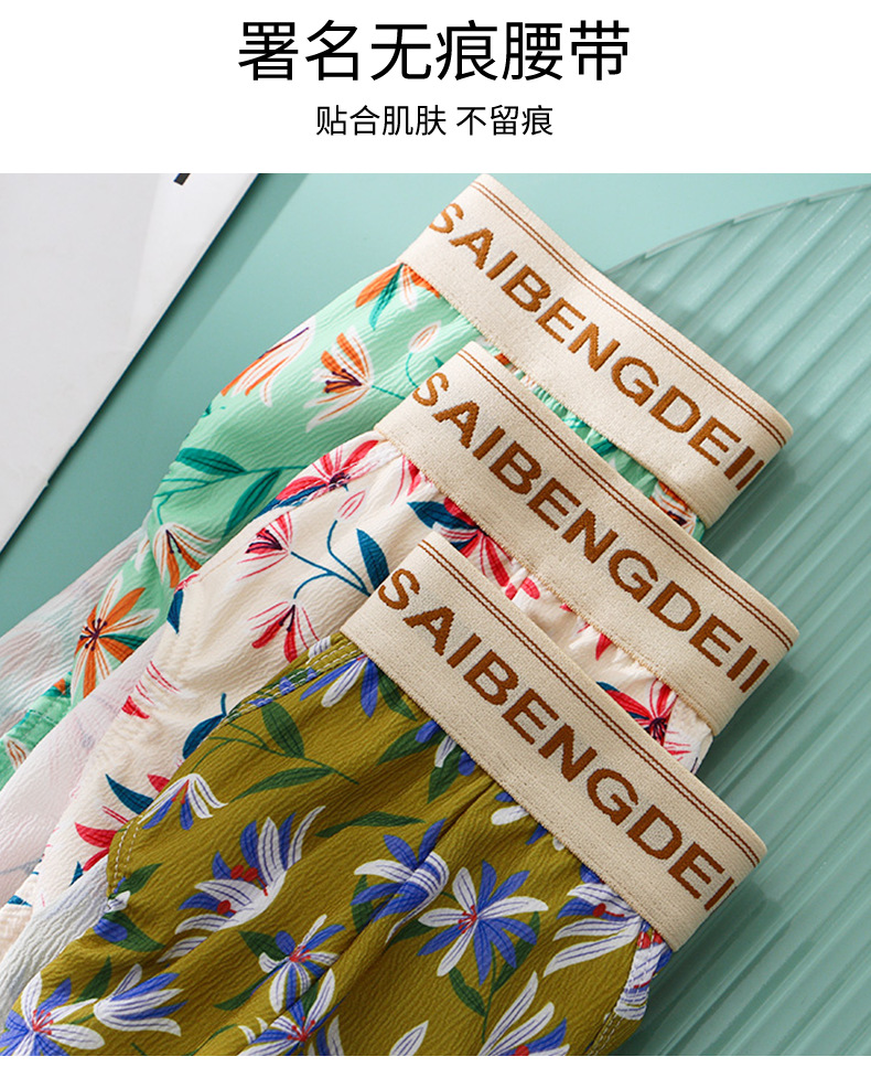 新款内裤男士冰丝薄款透气宽松阿罗裤男生高档运动家居四角短裤头
