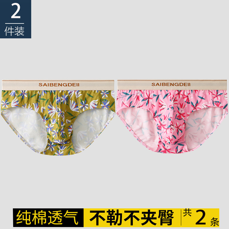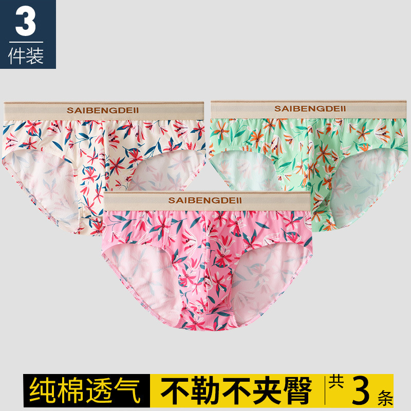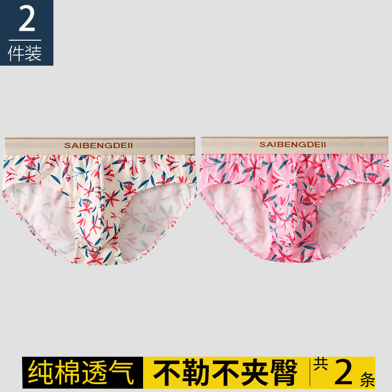 남자 속옷 코튼 통기성 트렌디 독특한 브리프 어린 소년 핑크 귀여운 꽃 섹시한 바지