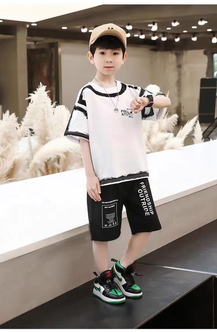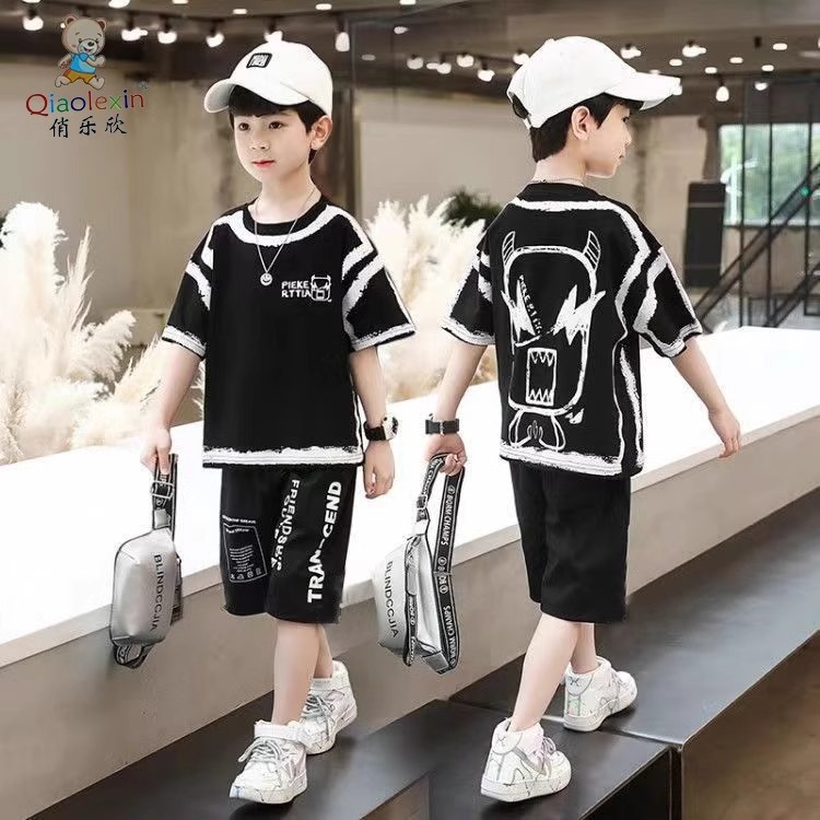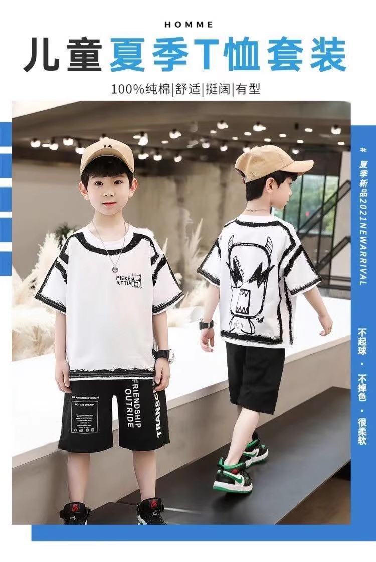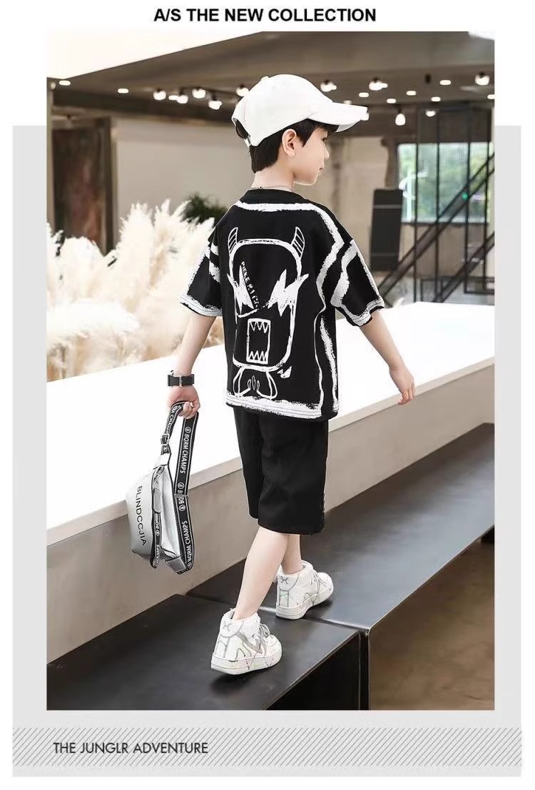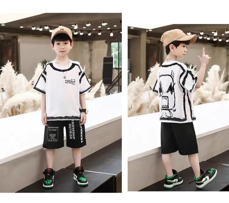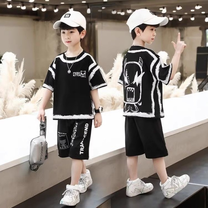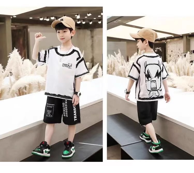 남학생 여름복 신입 세트 한국식 소년복 어린이 만화 반팔 반바지 스포츠 투피스 세트
