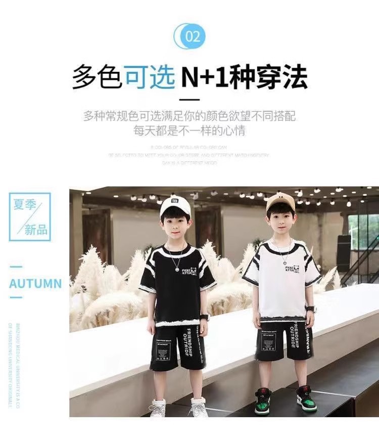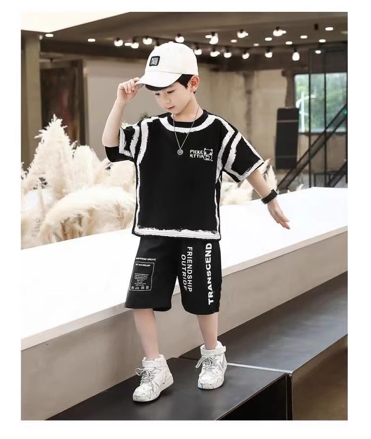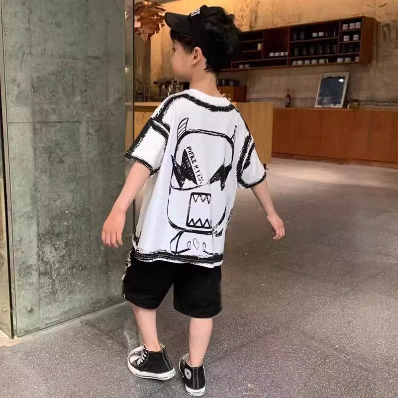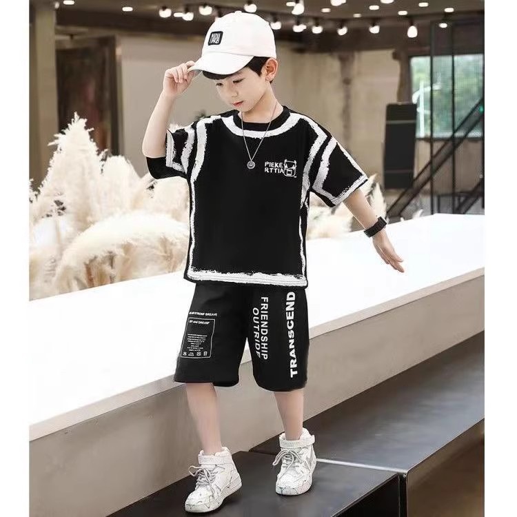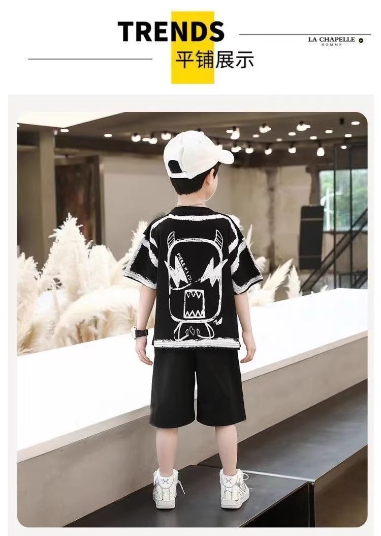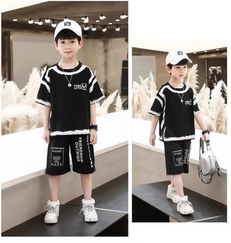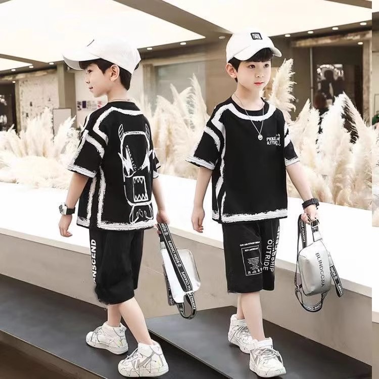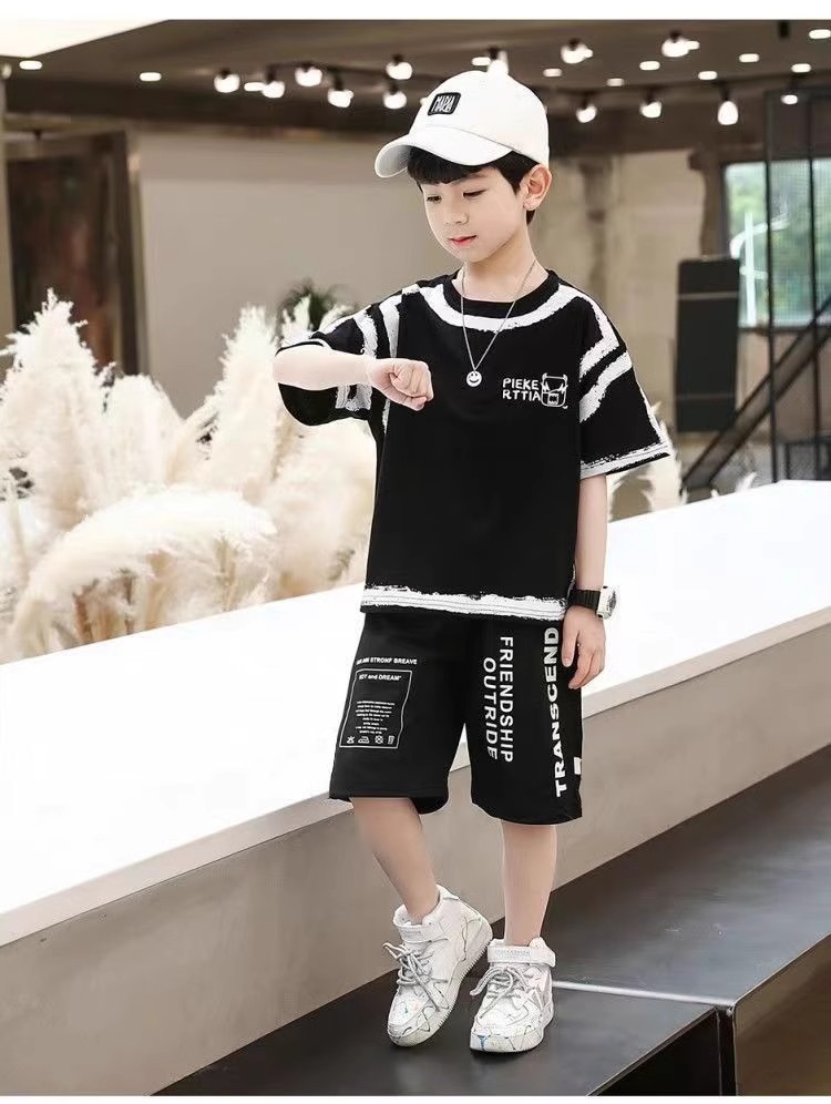 남학생 여름복 신입 세트 한국식 소년복 어린이 만화 반팔 반바지 스포츠 투피스 세트