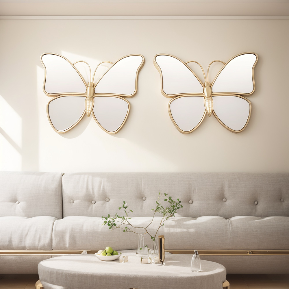 창조적 인 거실 나비 배경 벽 장식 벽 장착 거울 빛 럭셔리 레트로 나비 장식품