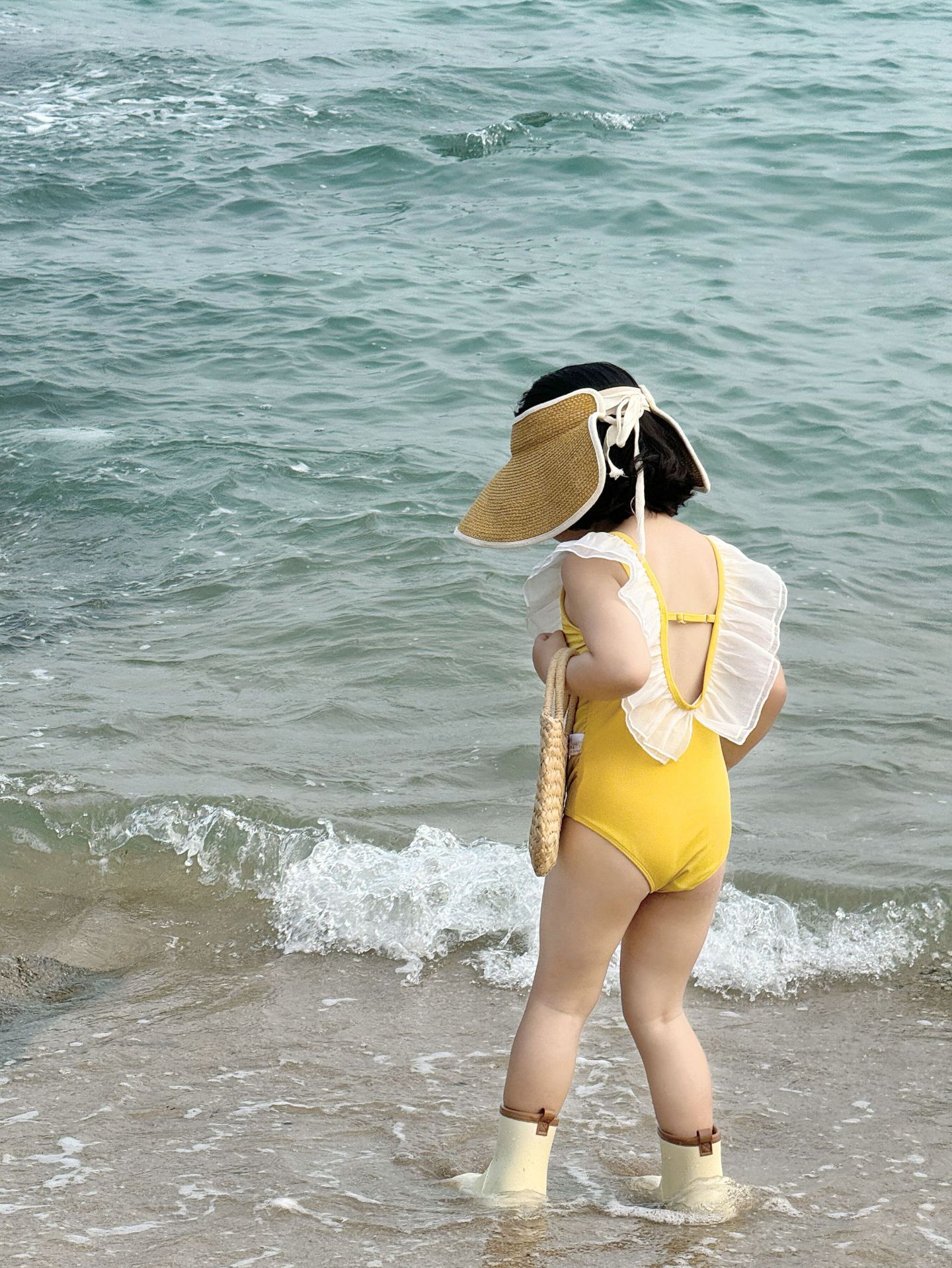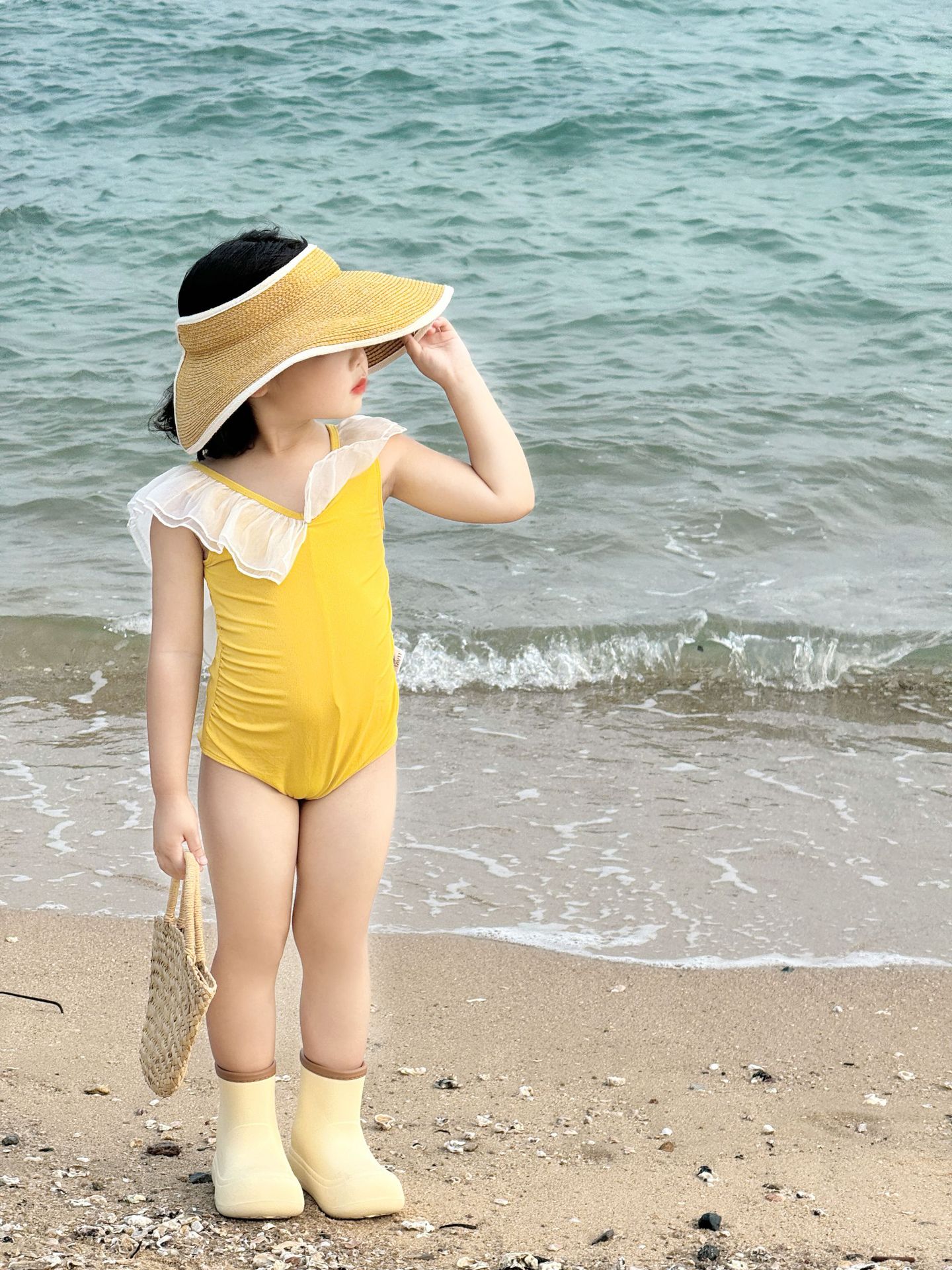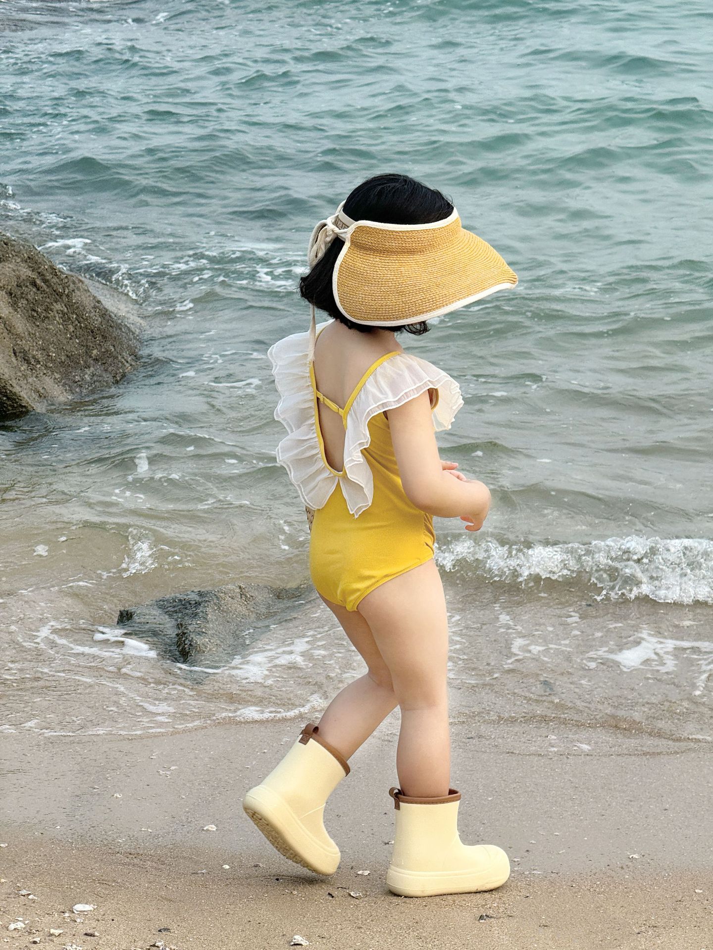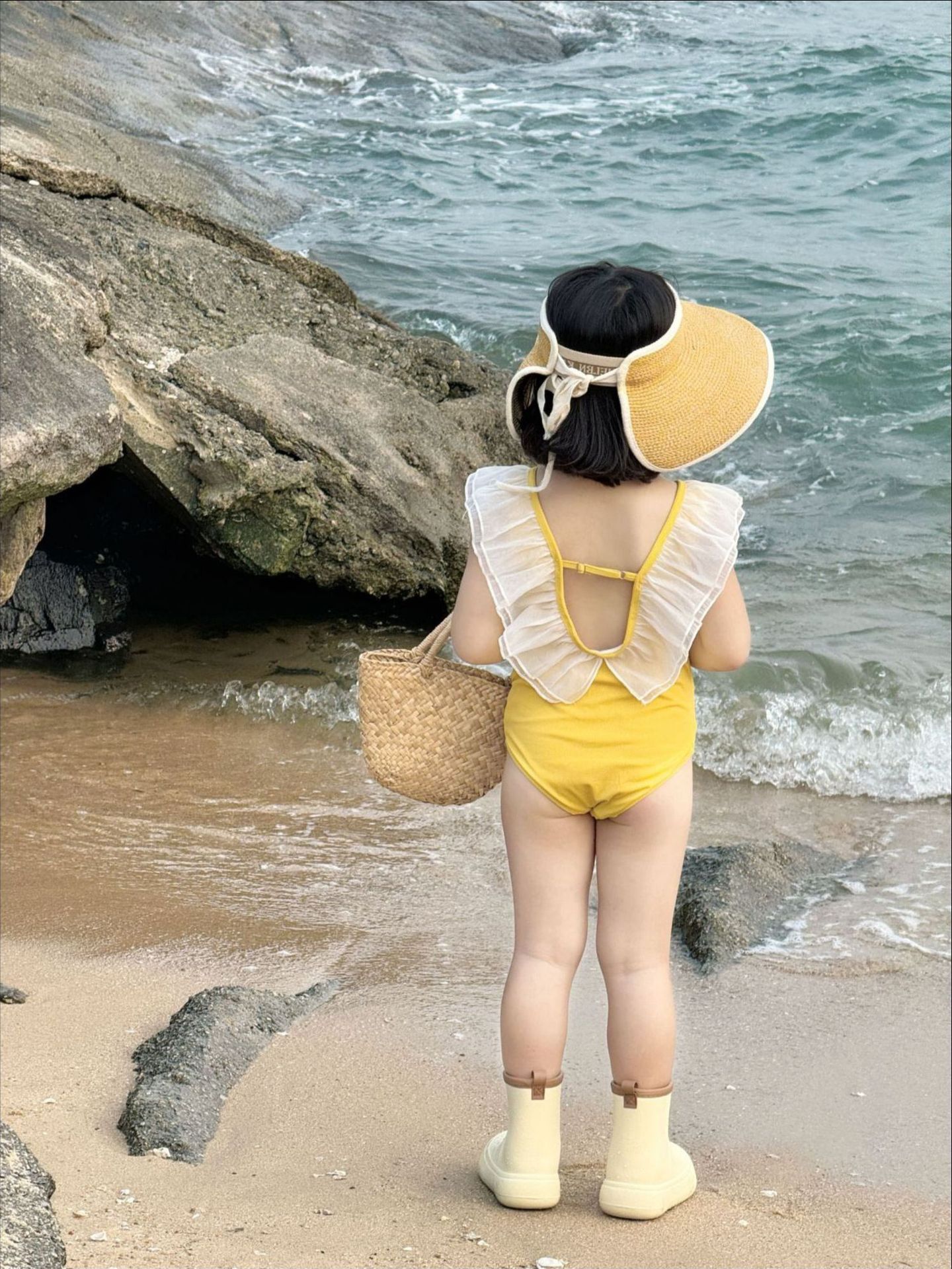 새로운 귀여운 프릴 빠른 건조 수영복 어린이 원피스 수영복 아기 온천 의류 제조 업체의 세대 도매스토어 가기