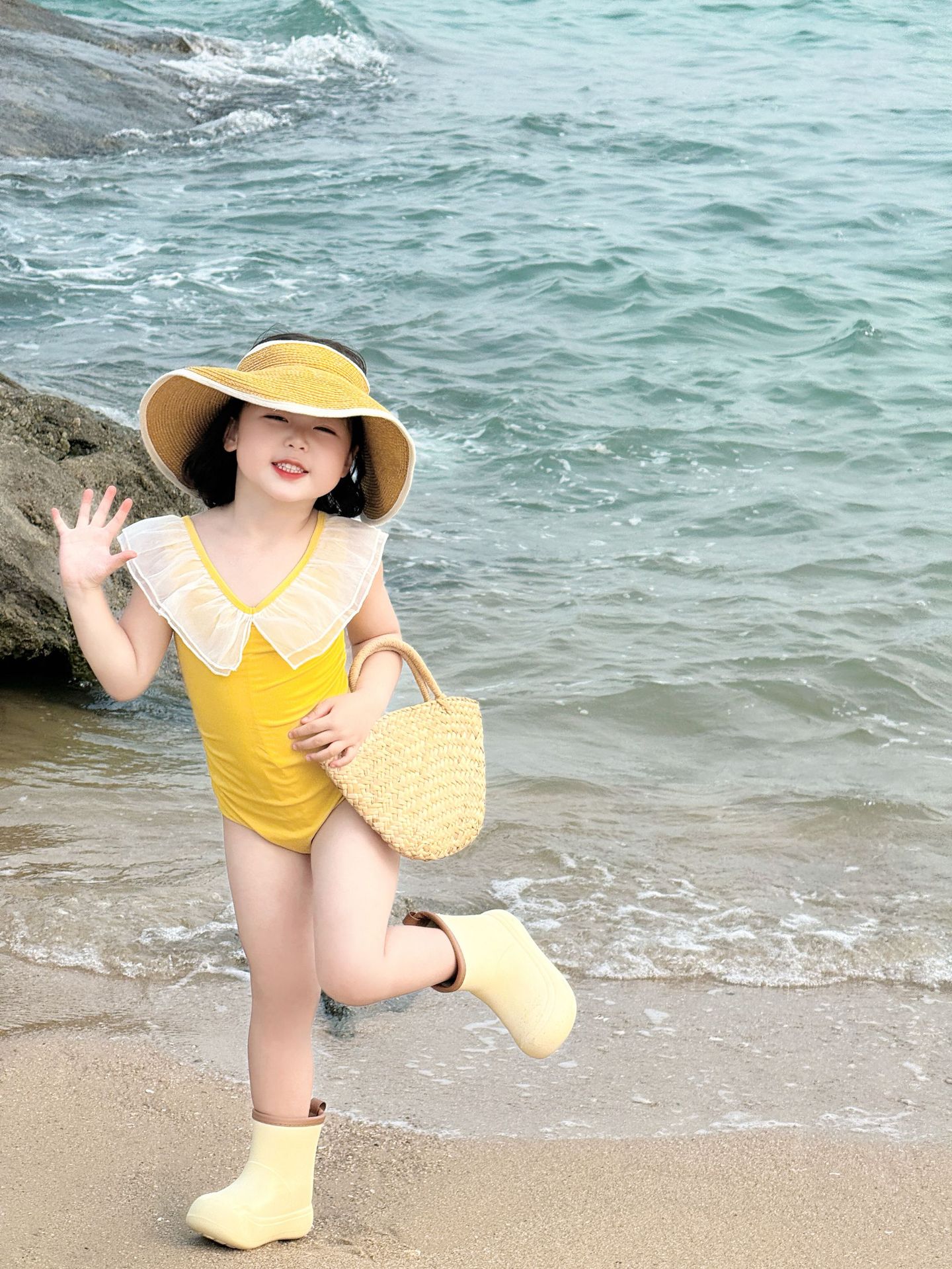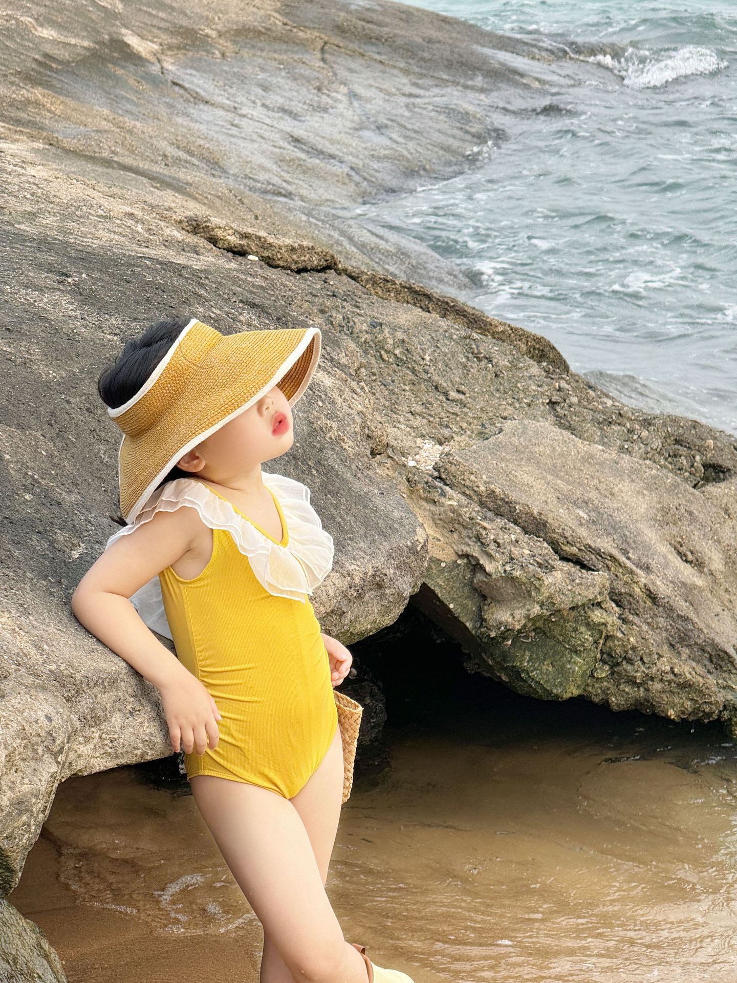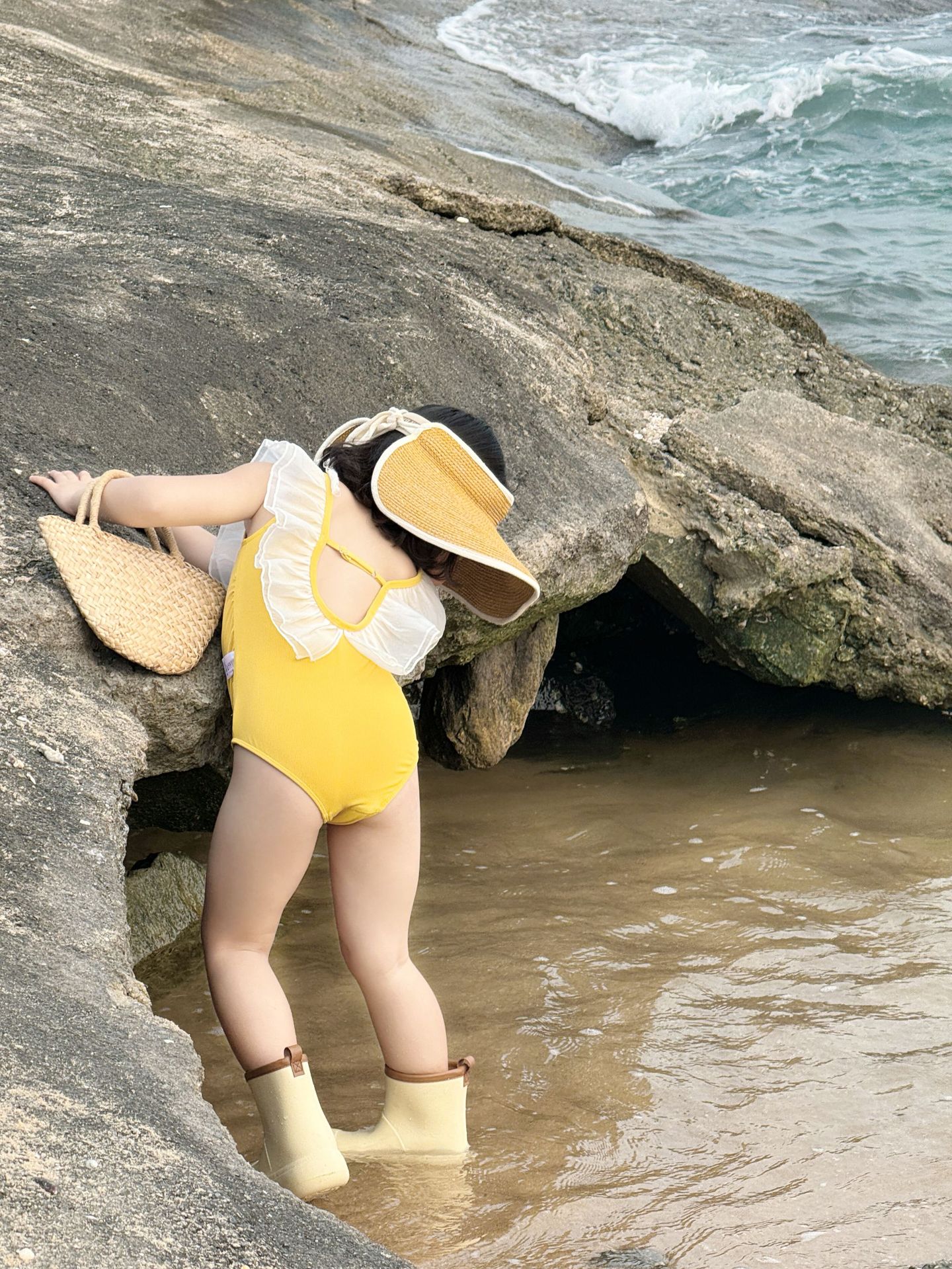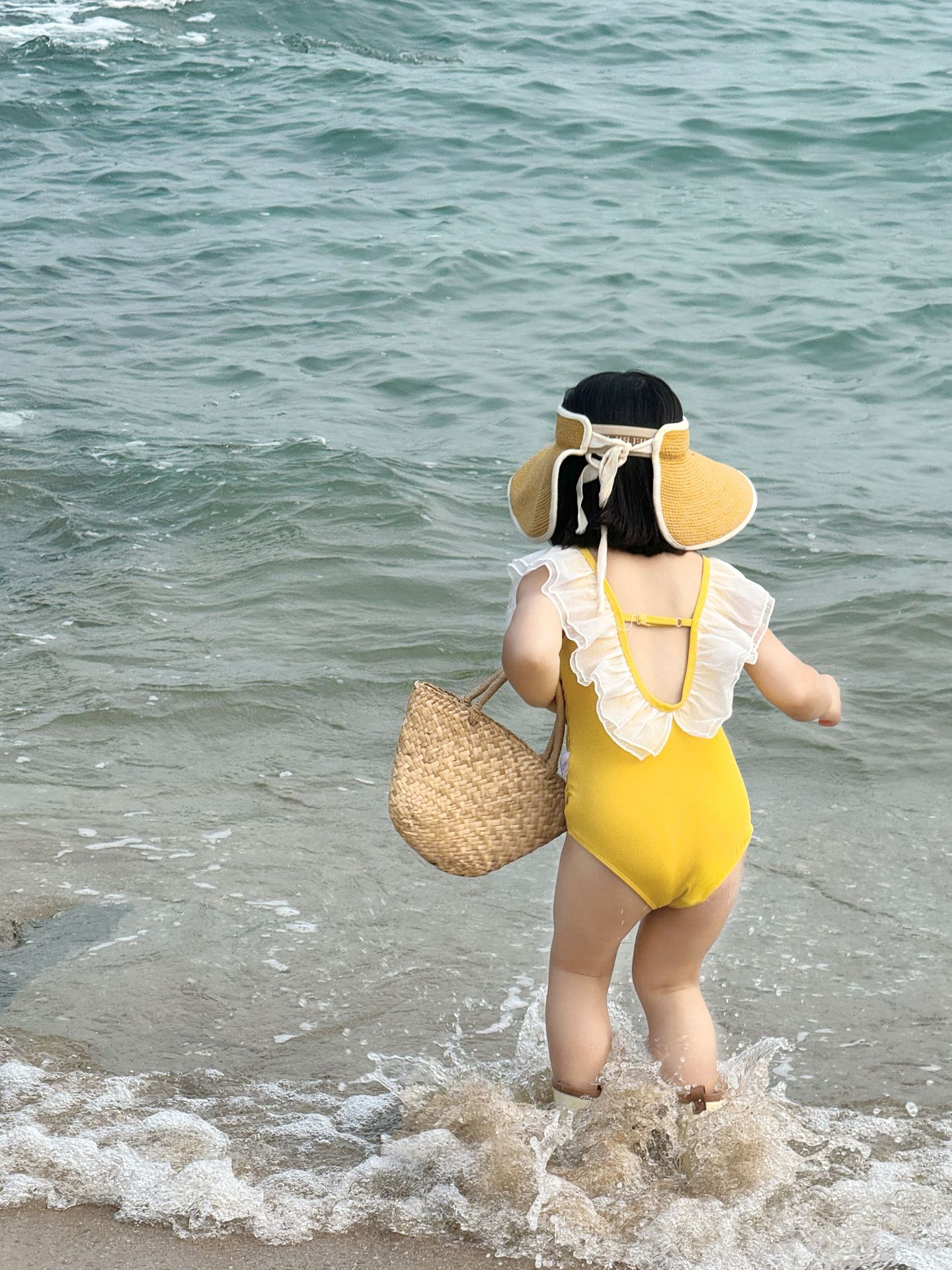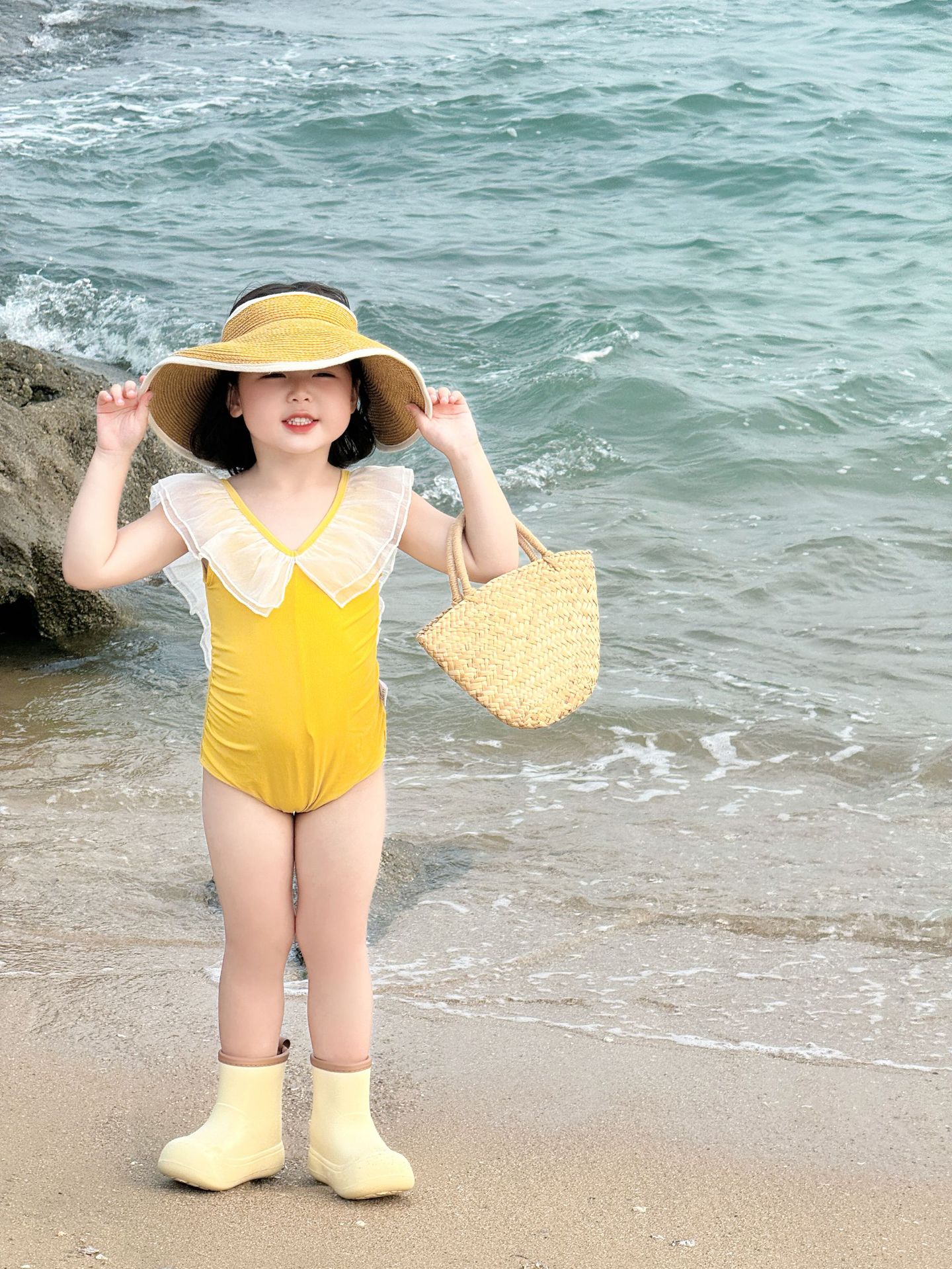 새로운 귀여운 프릴 빠른 건조 수영복 어린이 원피스 수영복 아기 온천 의류 제조 업체의 세대 도매스토어 가기