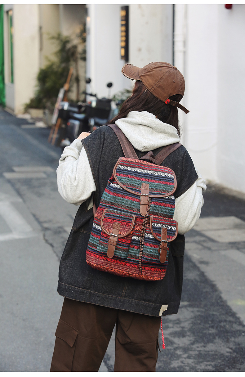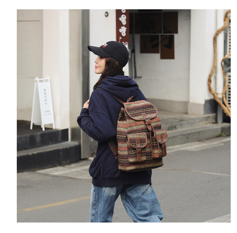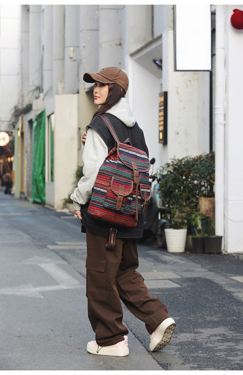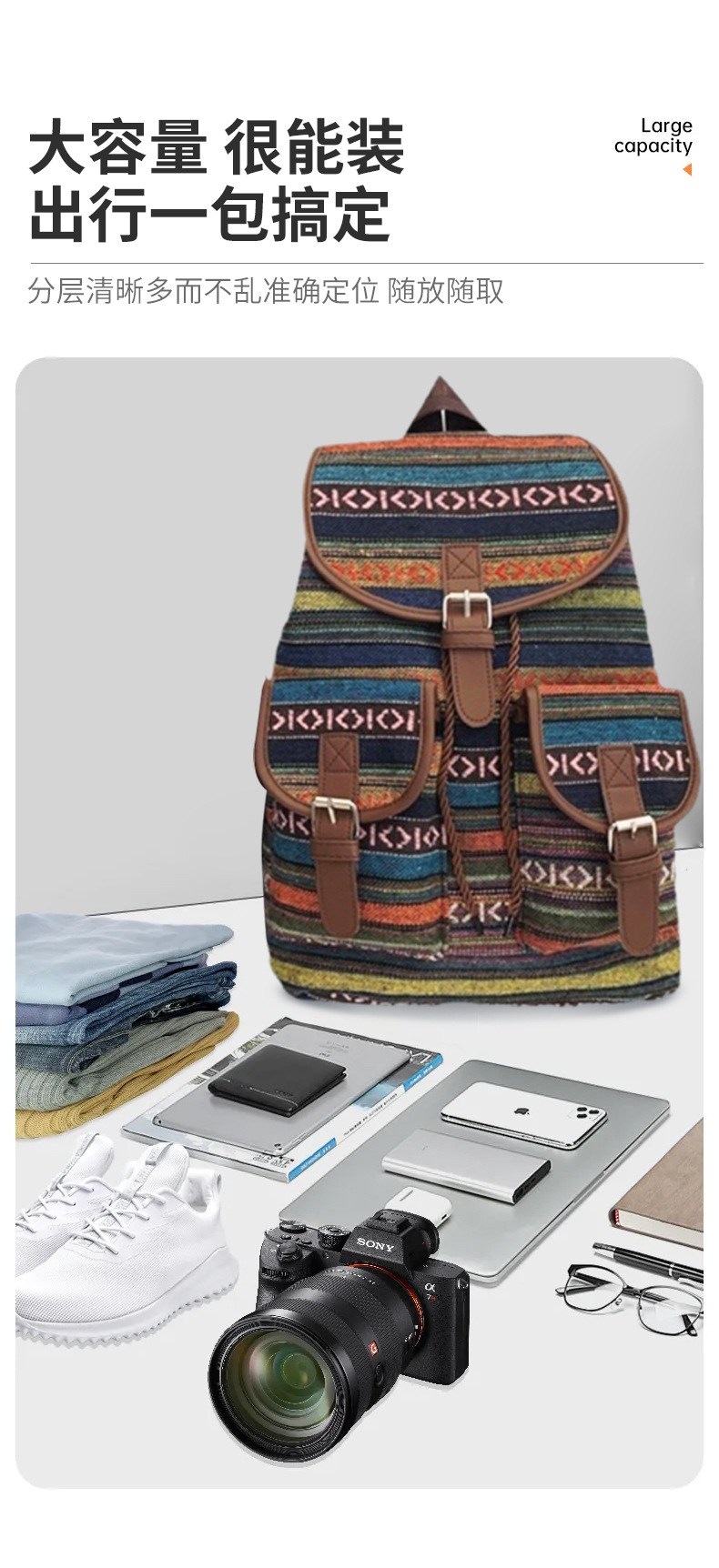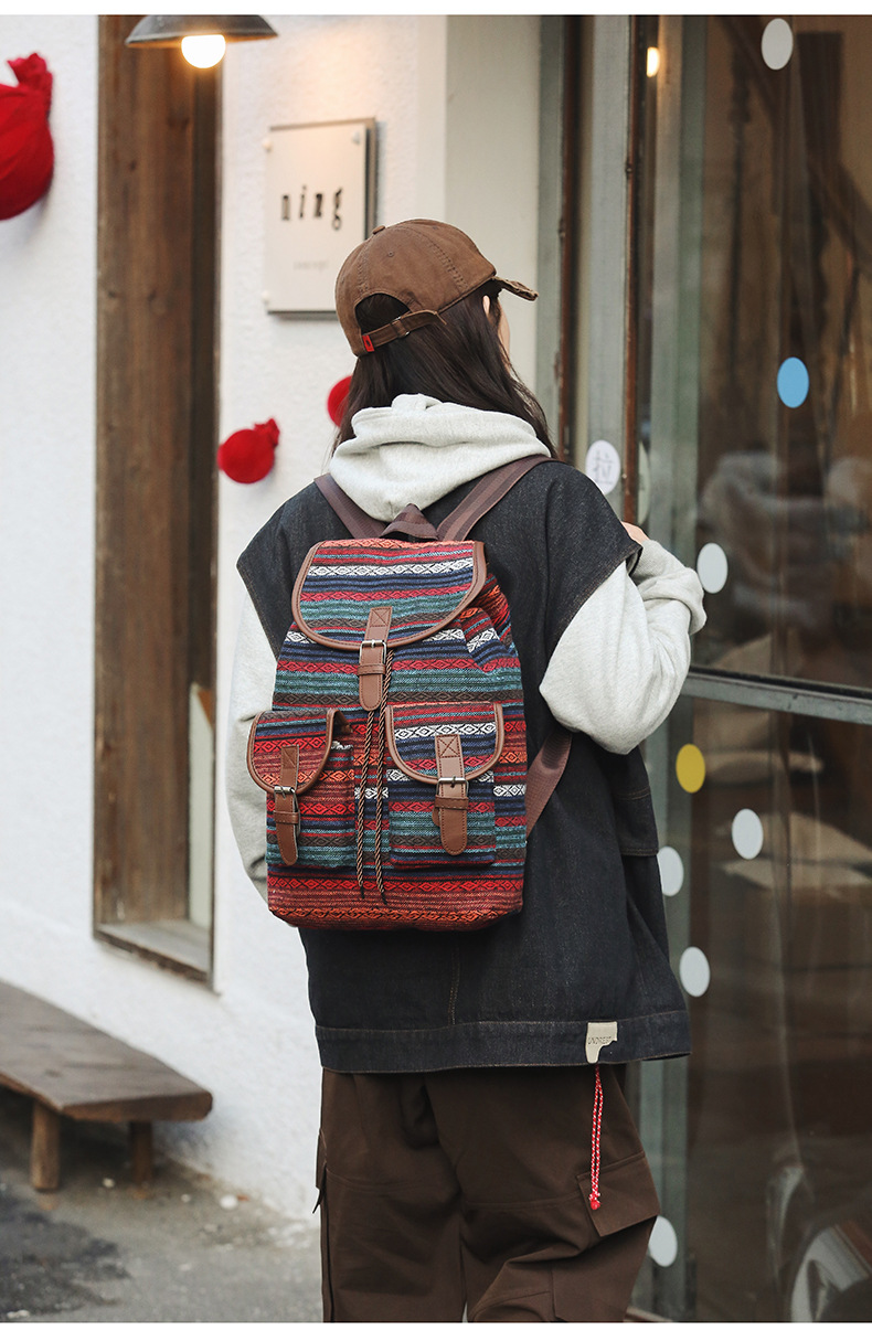 개인화 된 민족 스타일 배낭 여성의 내구성 캔버스 가방 2025 새로운 대용량 대조 색상 수 놓은 스타일스토어 가기