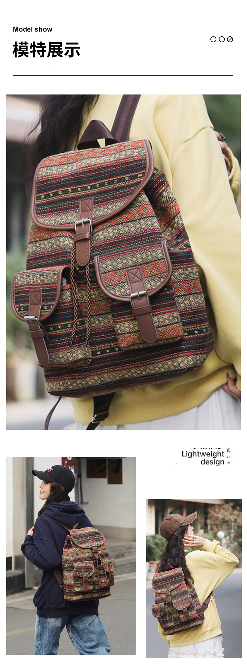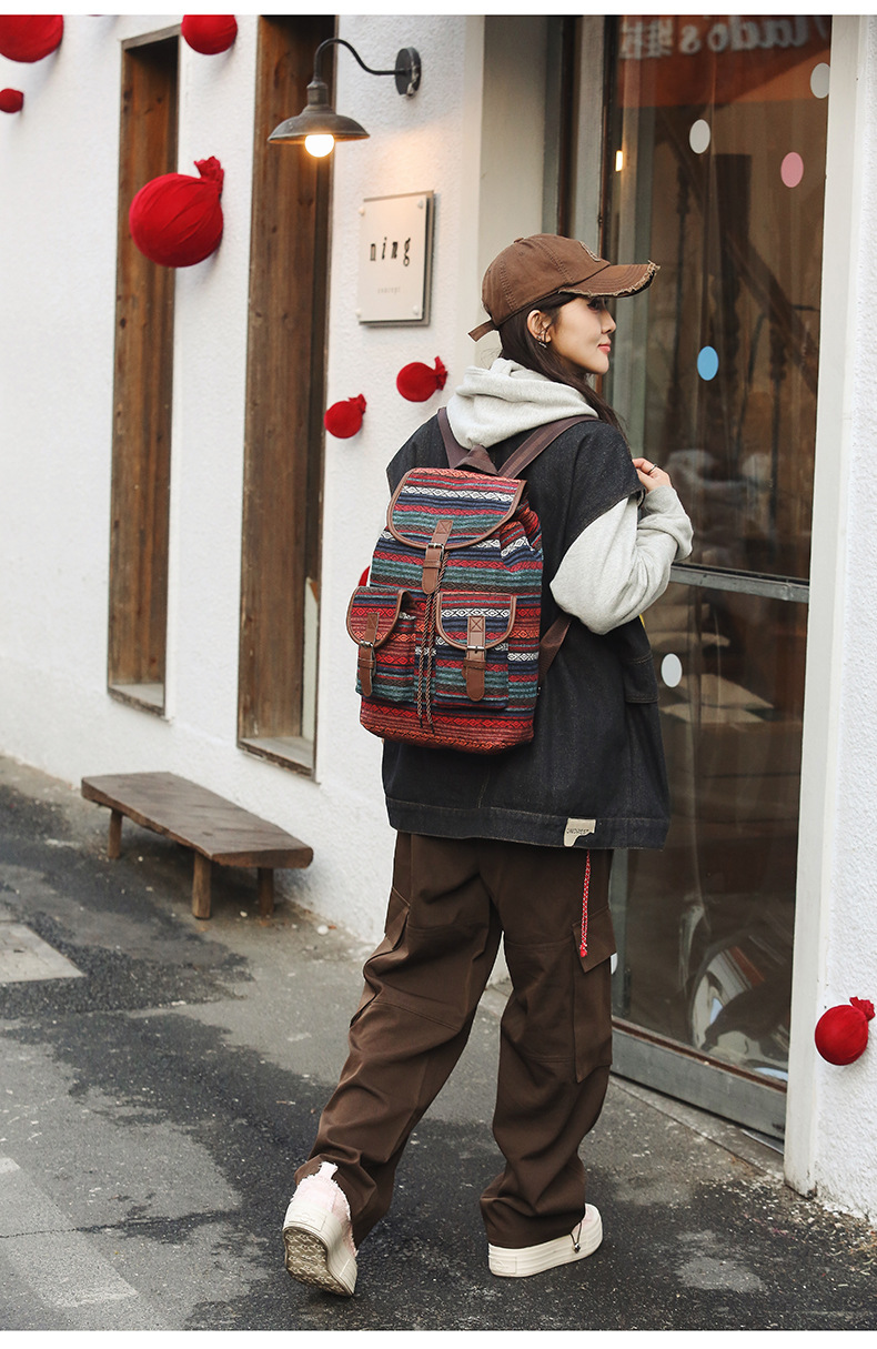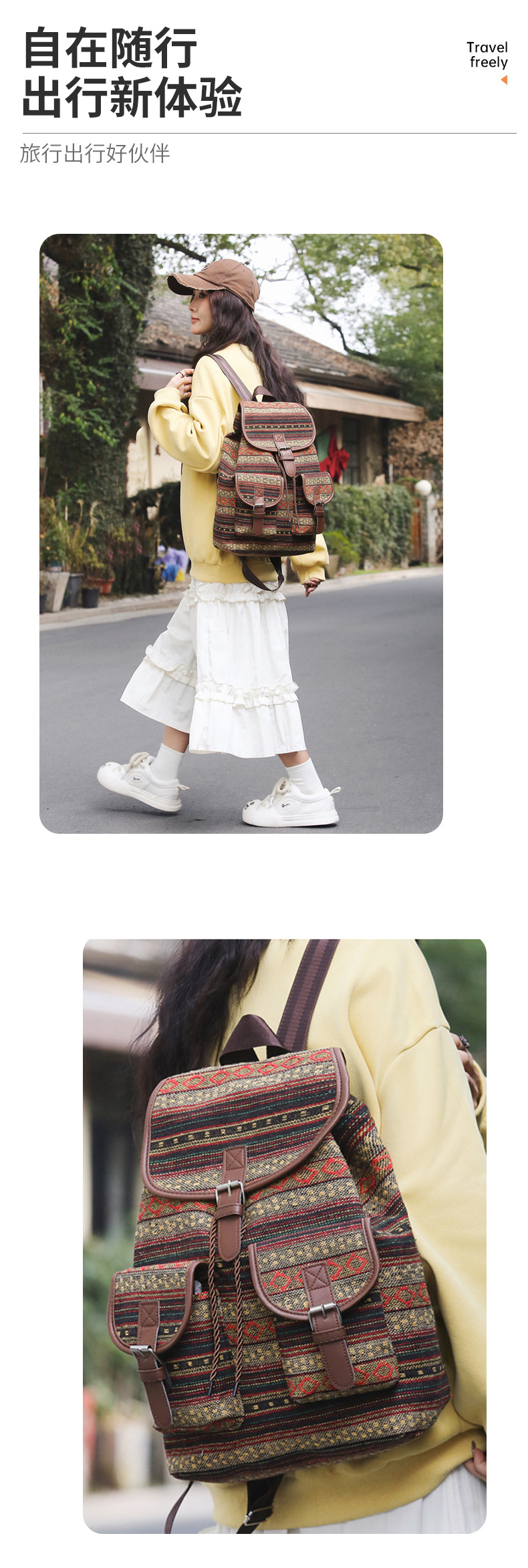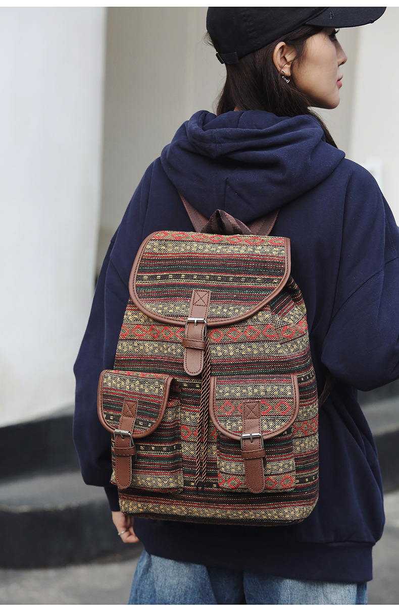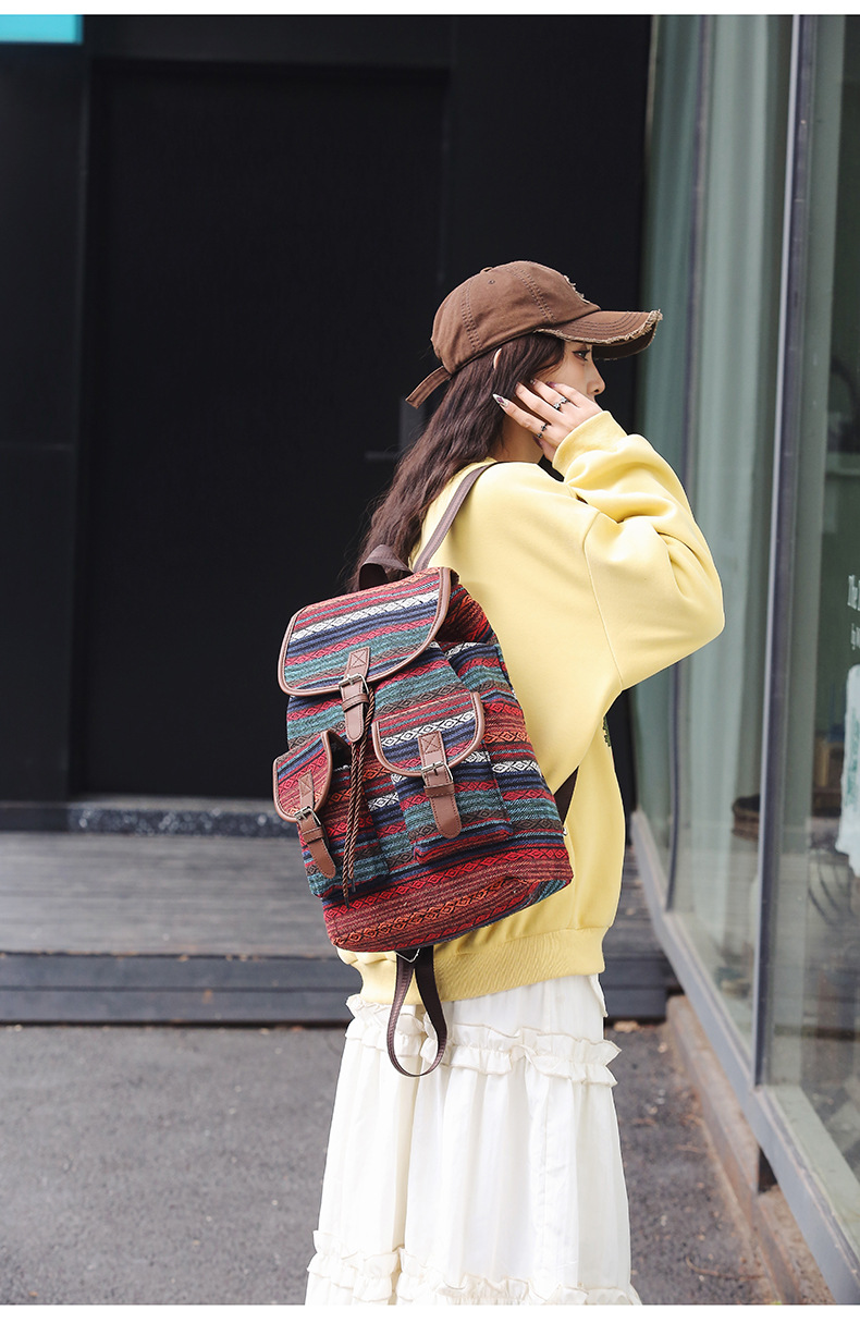 개인화 된 민족 스타일 배낭 여성의 내구성 캔버스 가방 2025 새로운 대용량 대조 색상 수 놓은 스타일스토어 가기