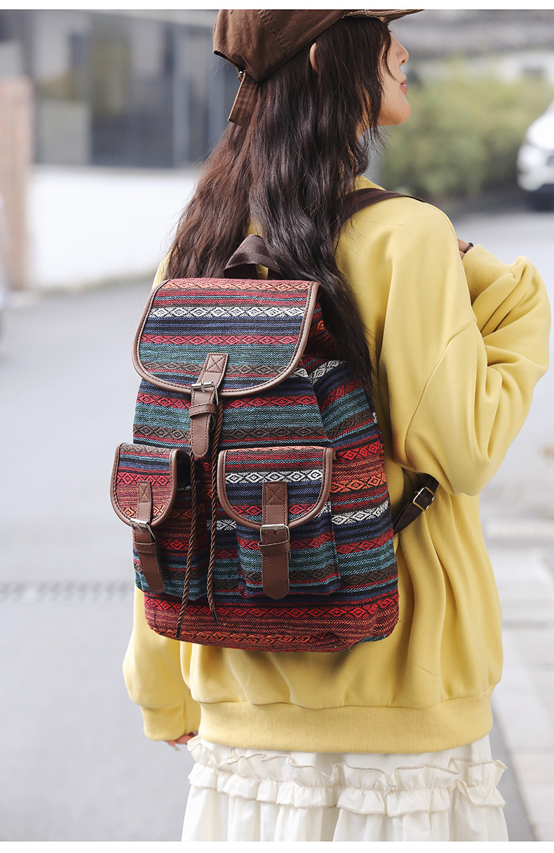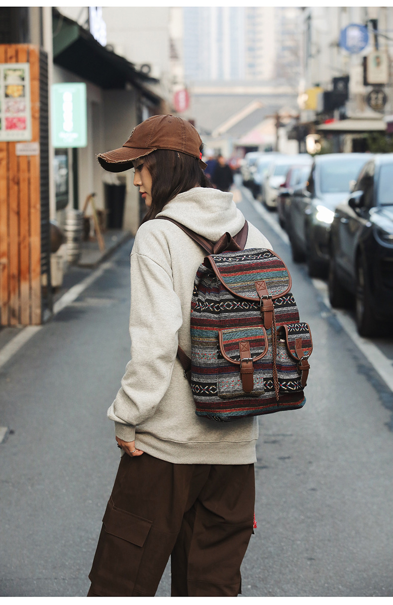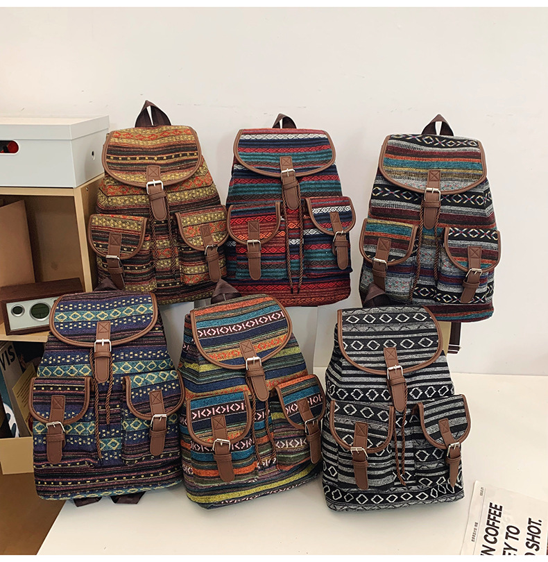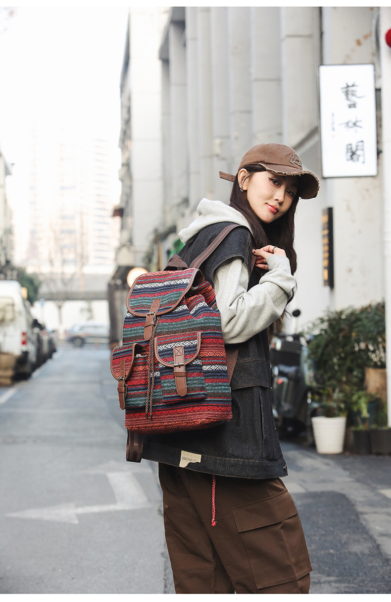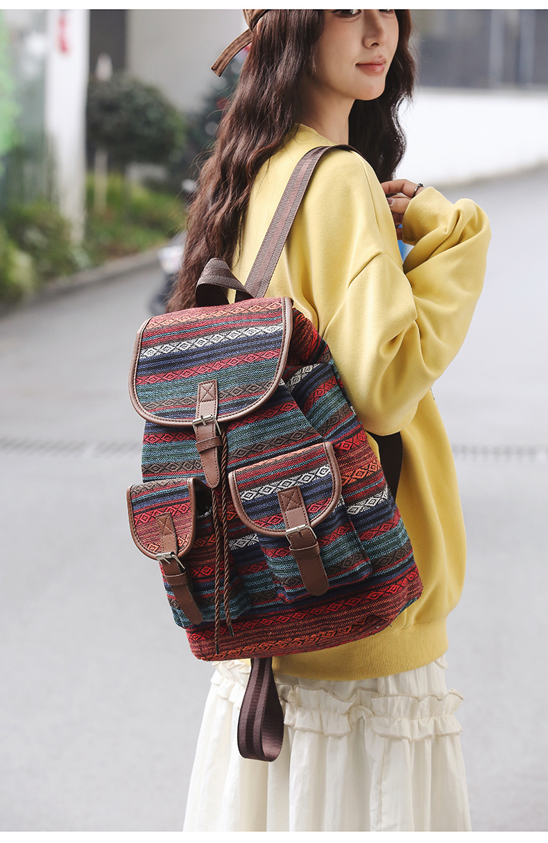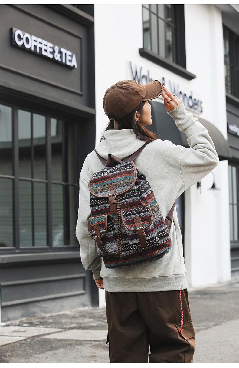 개인화 된 민족 스타일 배낭 여성의 내구성 캔버스 가방 2025 새로운 대용량 대조 색상 수 놓은 스타일스토어 가기