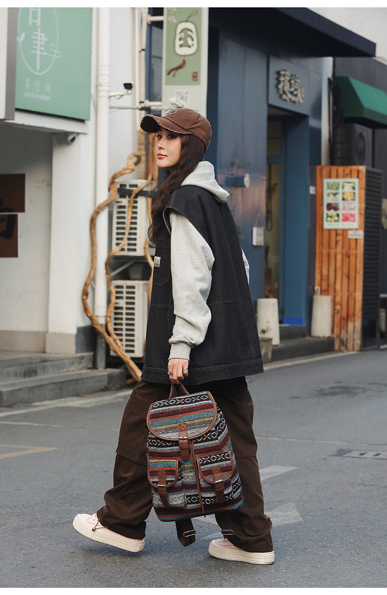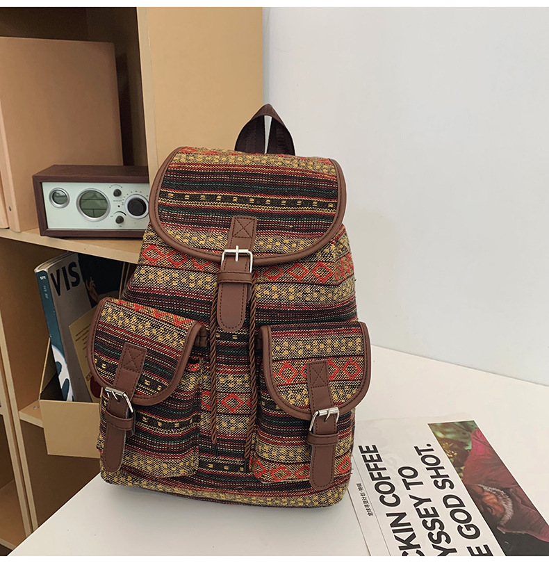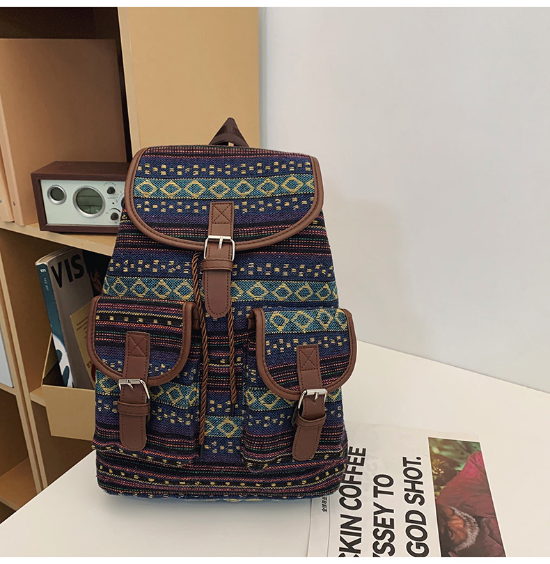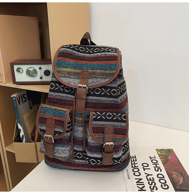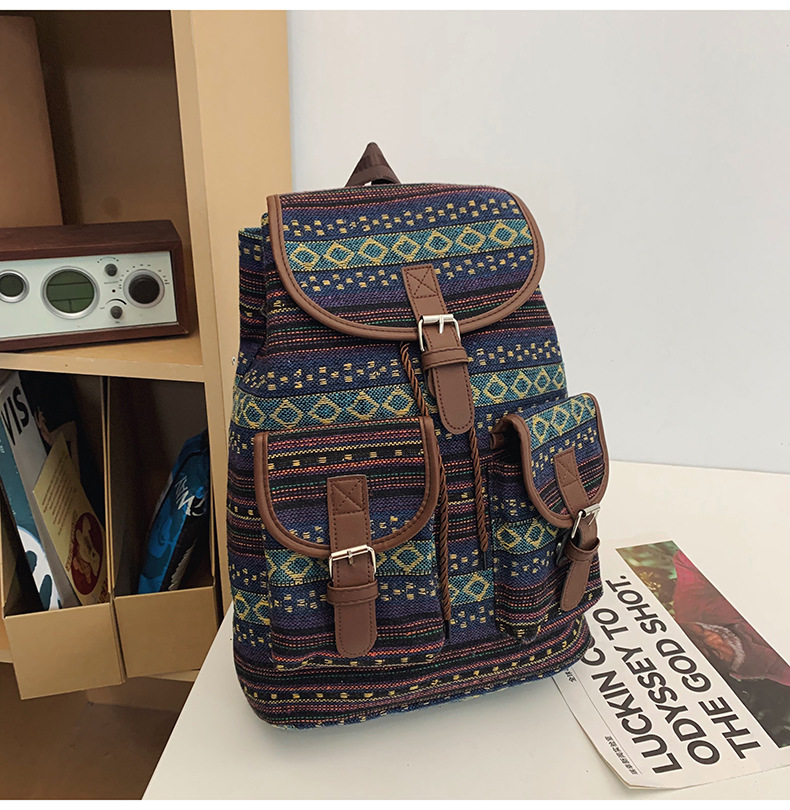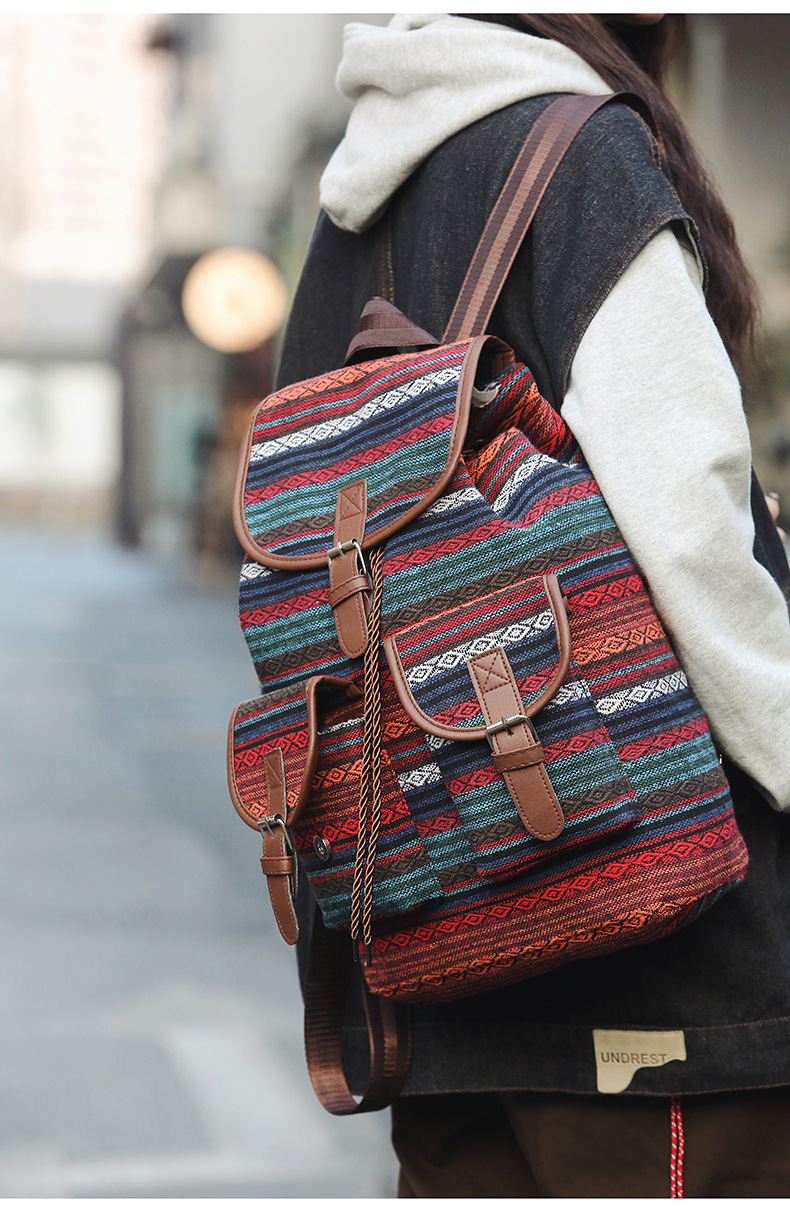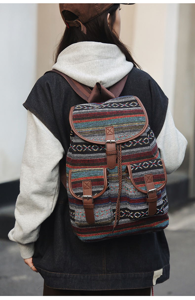 개인화 된 민족 스타일 배낭 여성의 내구성 캔버스 가방 2025 새로운 대용량 대조 색상 수 놓은 스타일스토어 가기