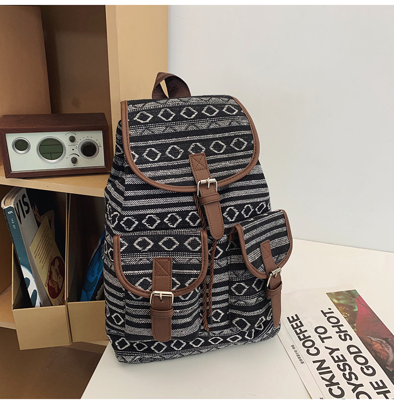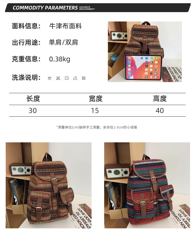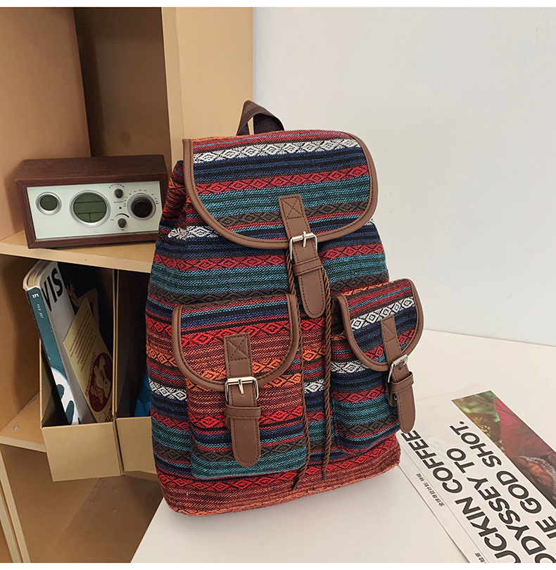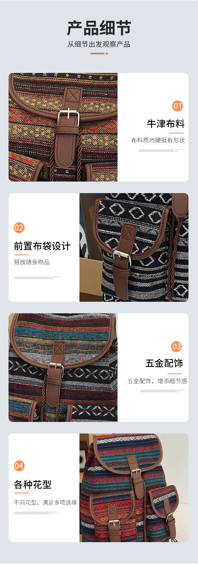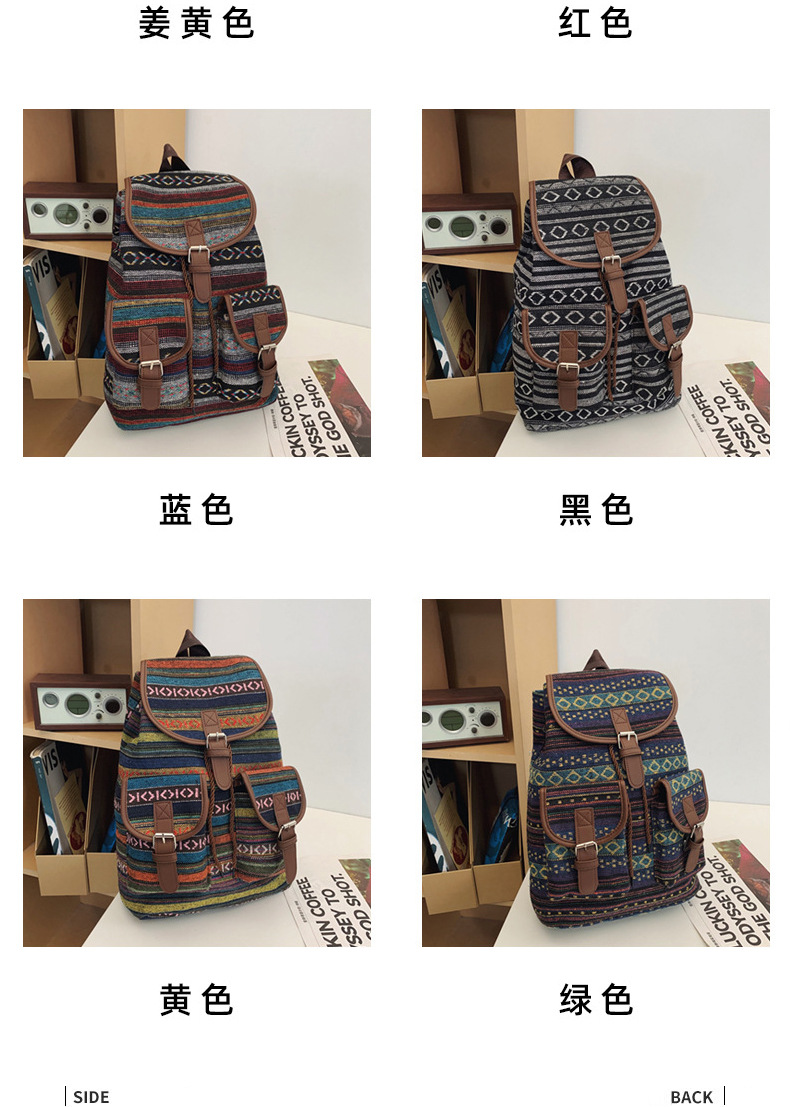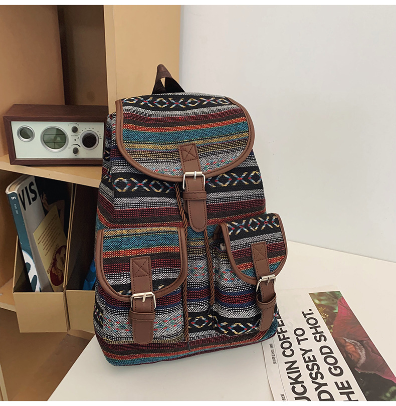 개인화 된 민족 스타일 배낭 여성의 내구성 캔버스 가방 2025 새로운 대용량 대조 색상 수 놓은 스타일스토어 가기