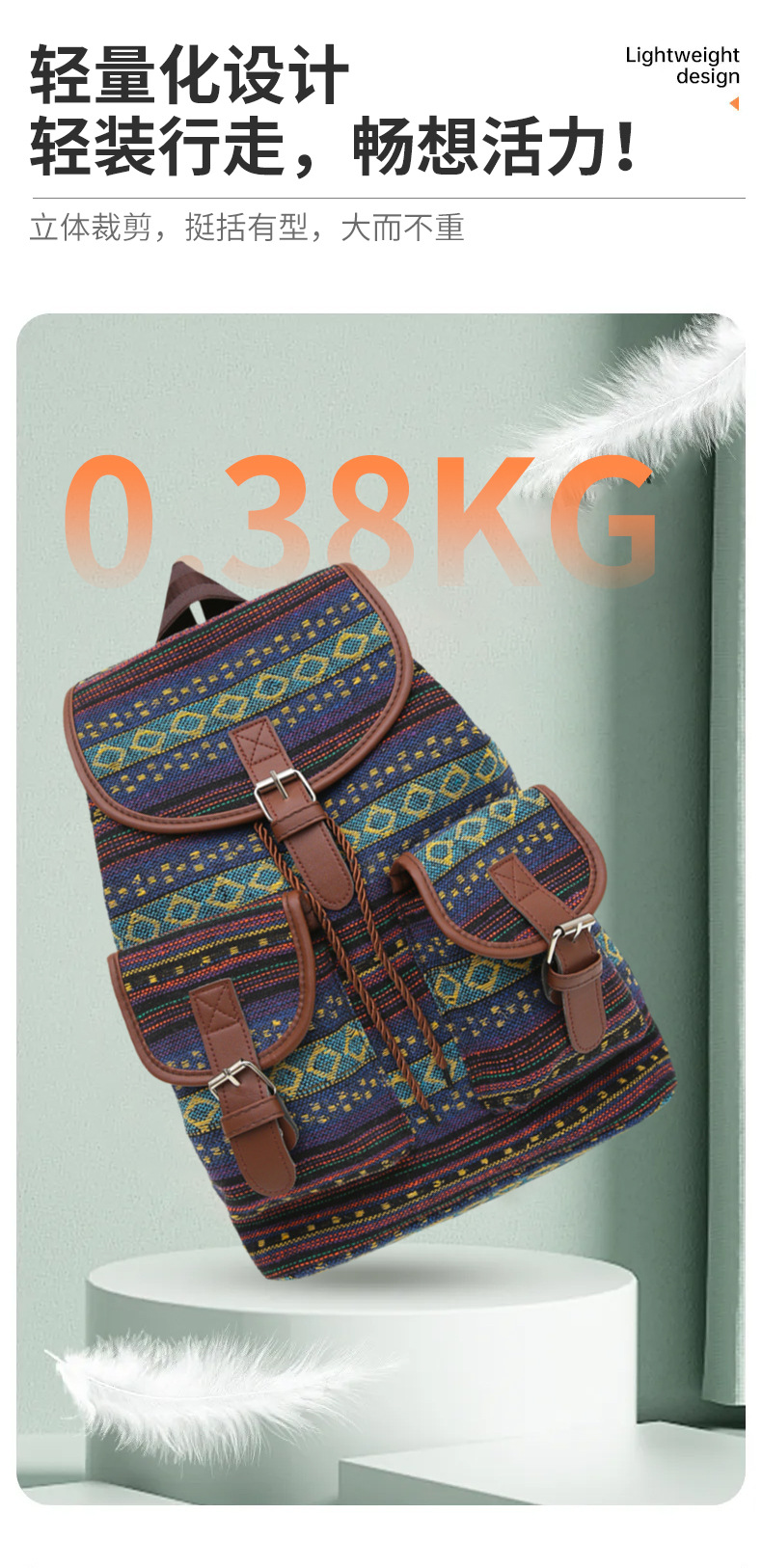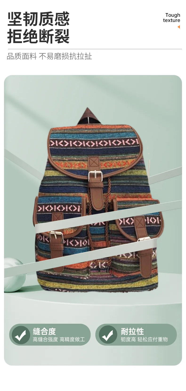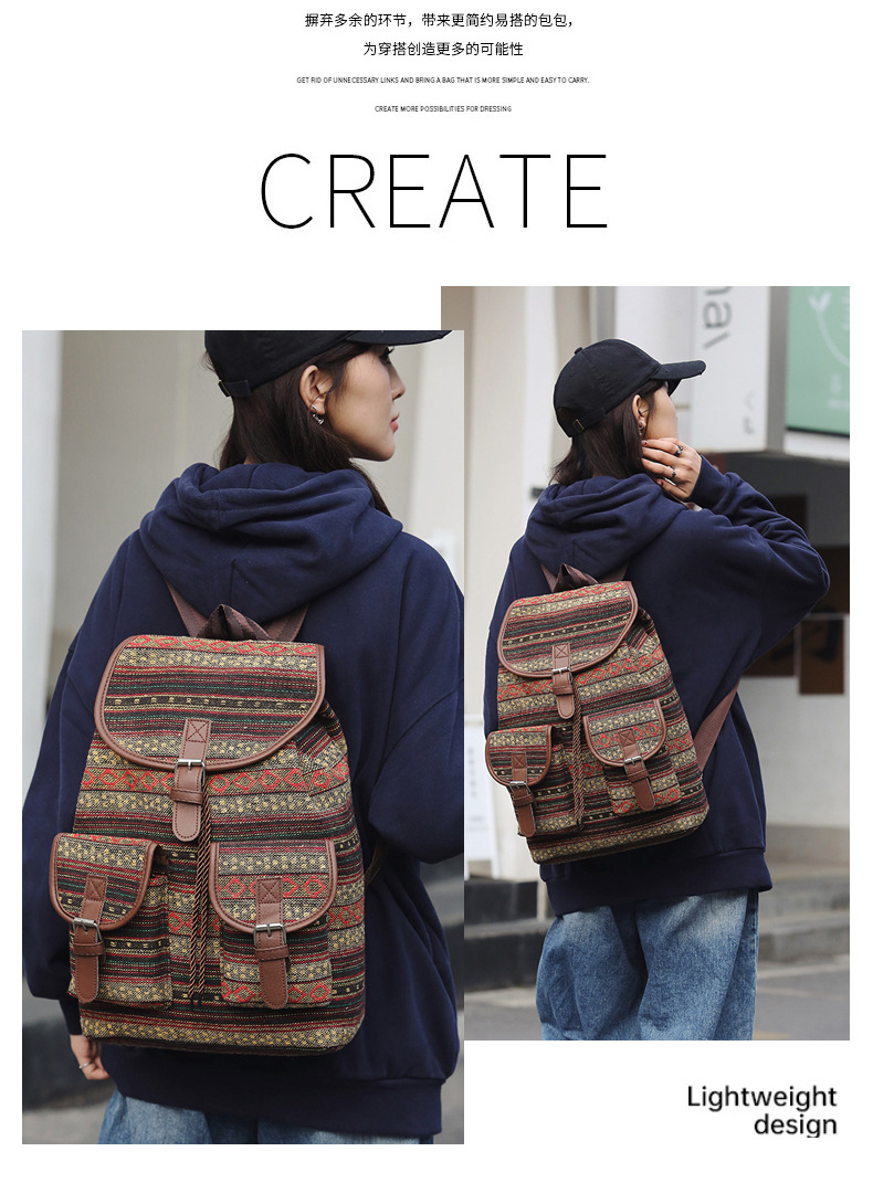 개인화 된 민족 스타일 배낭 여성의 내구성 캔버스 가방 2025 새로운 대용량 대조 색상 수 놓은 스타일
