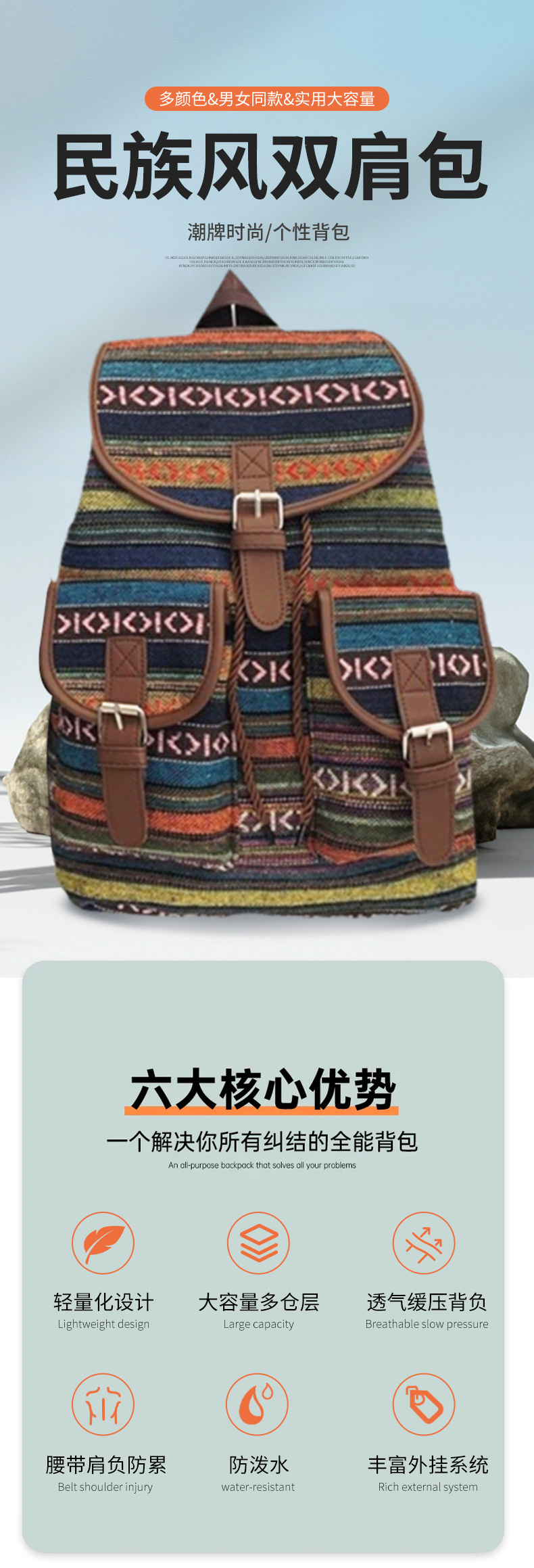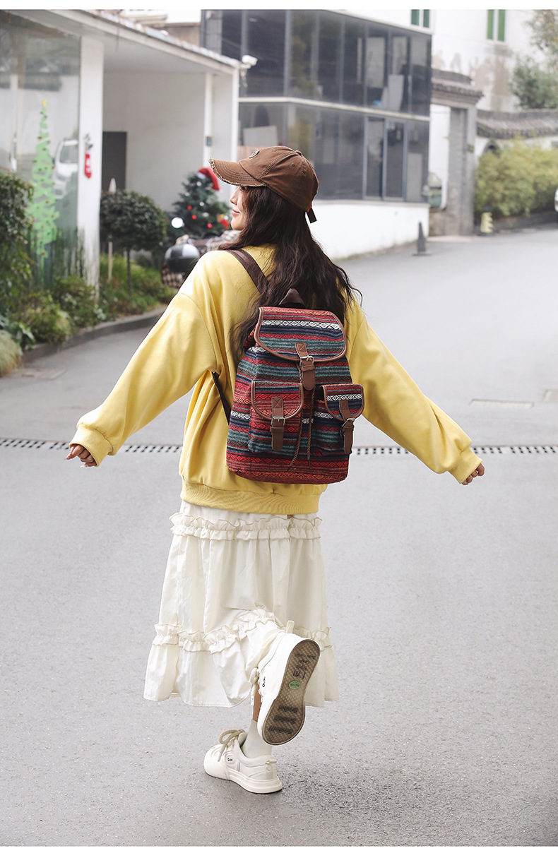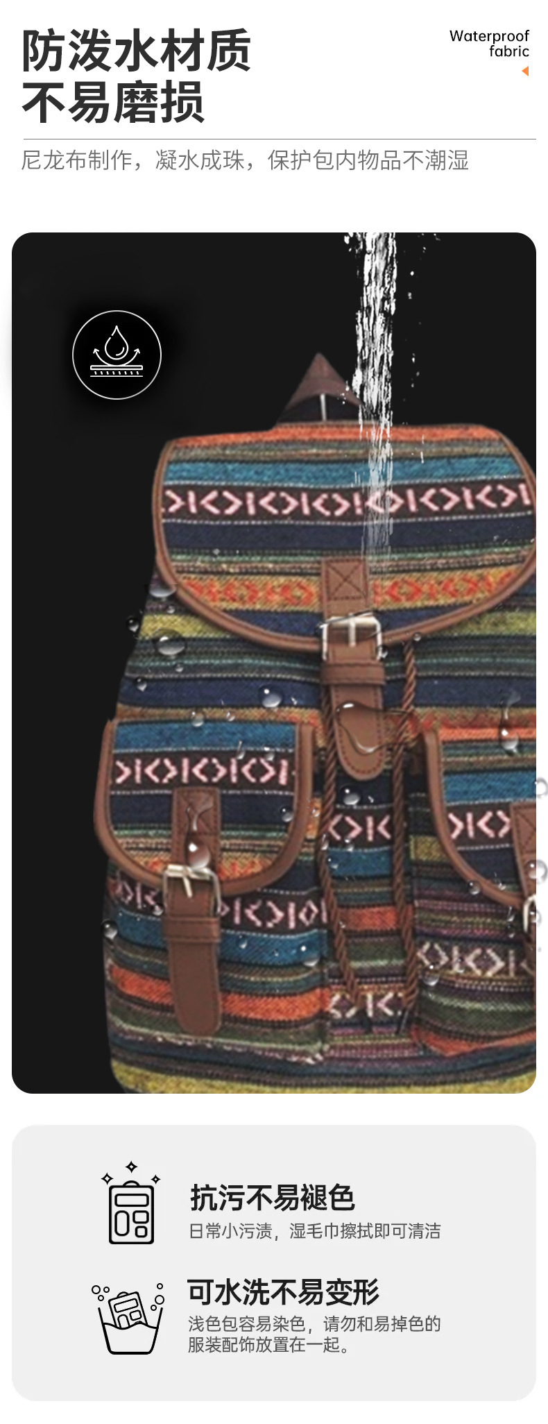 개인화 된 민족 스타일 배낭 여성의 내구성 캔버스 가방 2025 새로운 대용량 대조 색상 수 놓은 스타일