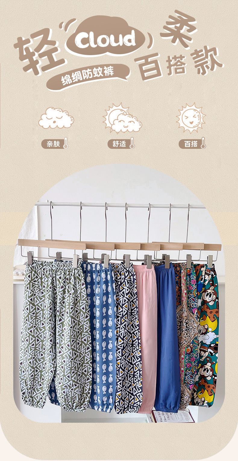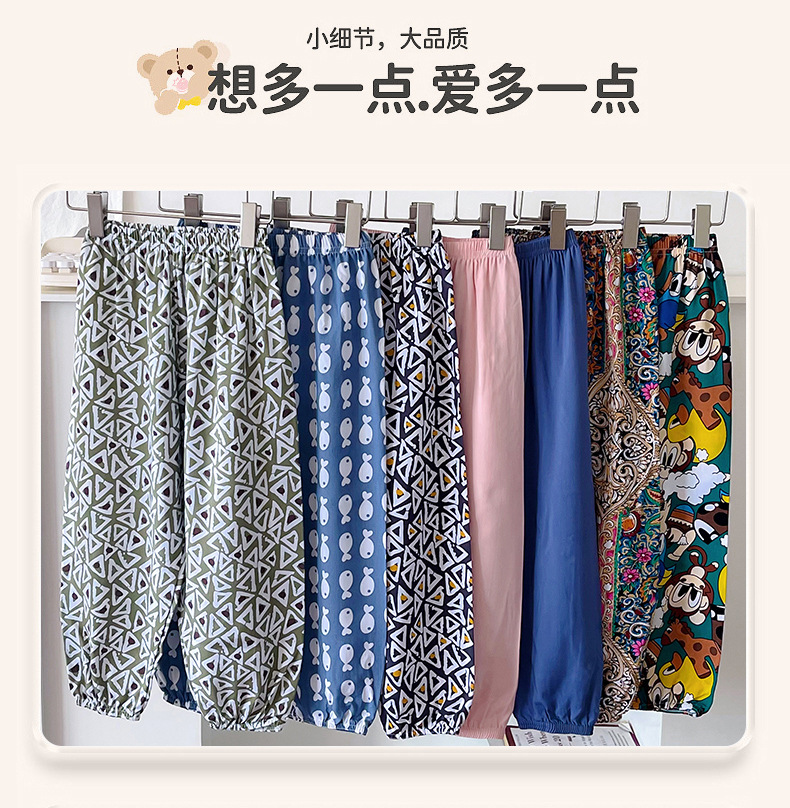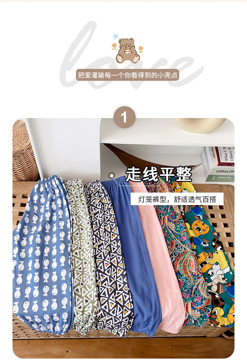 아기의 모기 방지 바지 어린이 실크 블루머 여름 캐주얼 소년 및 소녀 외부 착용 홈 에어컨 파자마 바지 얇은스토어 가기